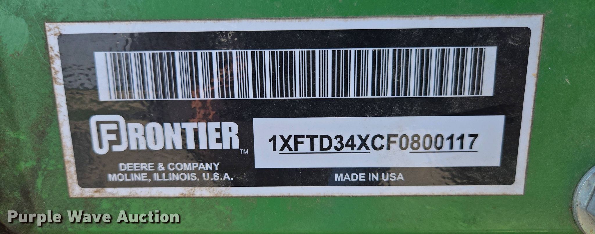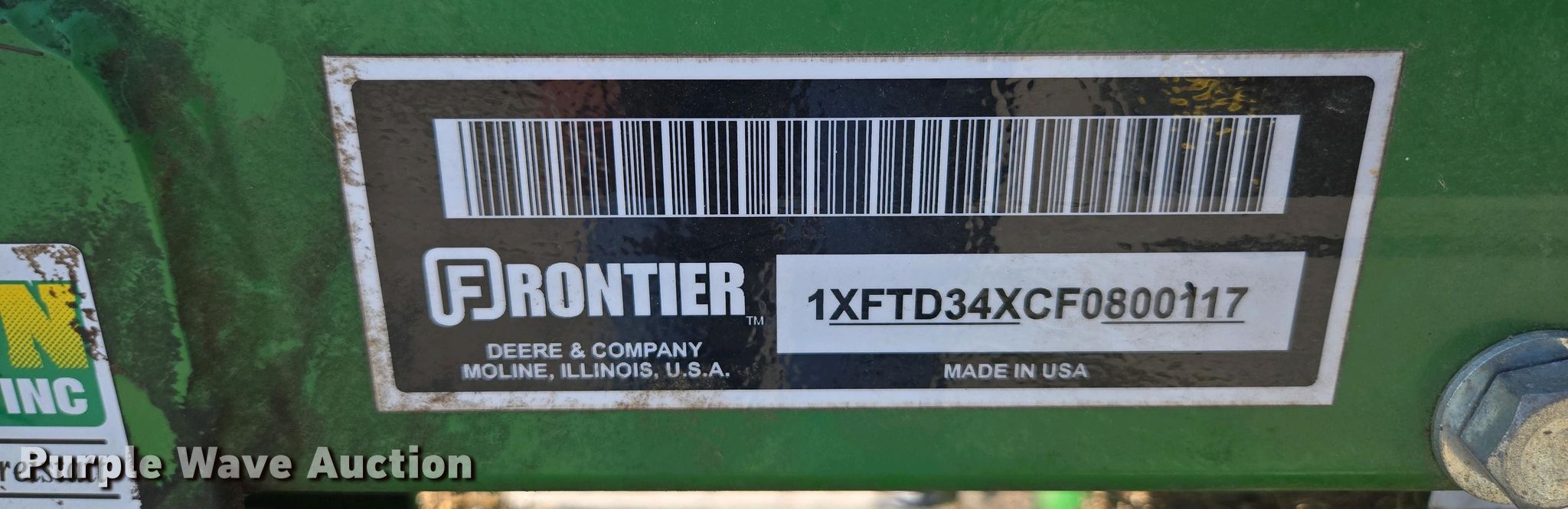 Purple Wave is selling a used Hay Handling in Missouri. This item is a 2015 Frontier TD3418 hay tedder with the following: Serial: 1XFTD34XCF0800117
