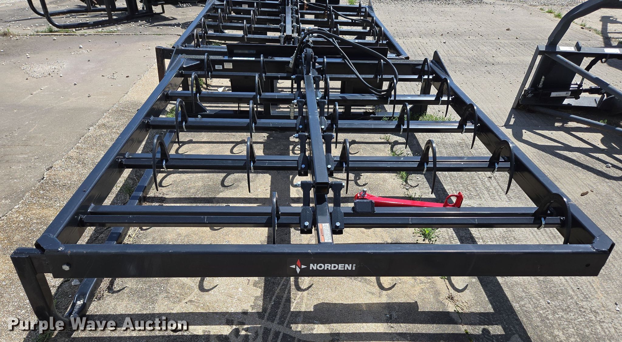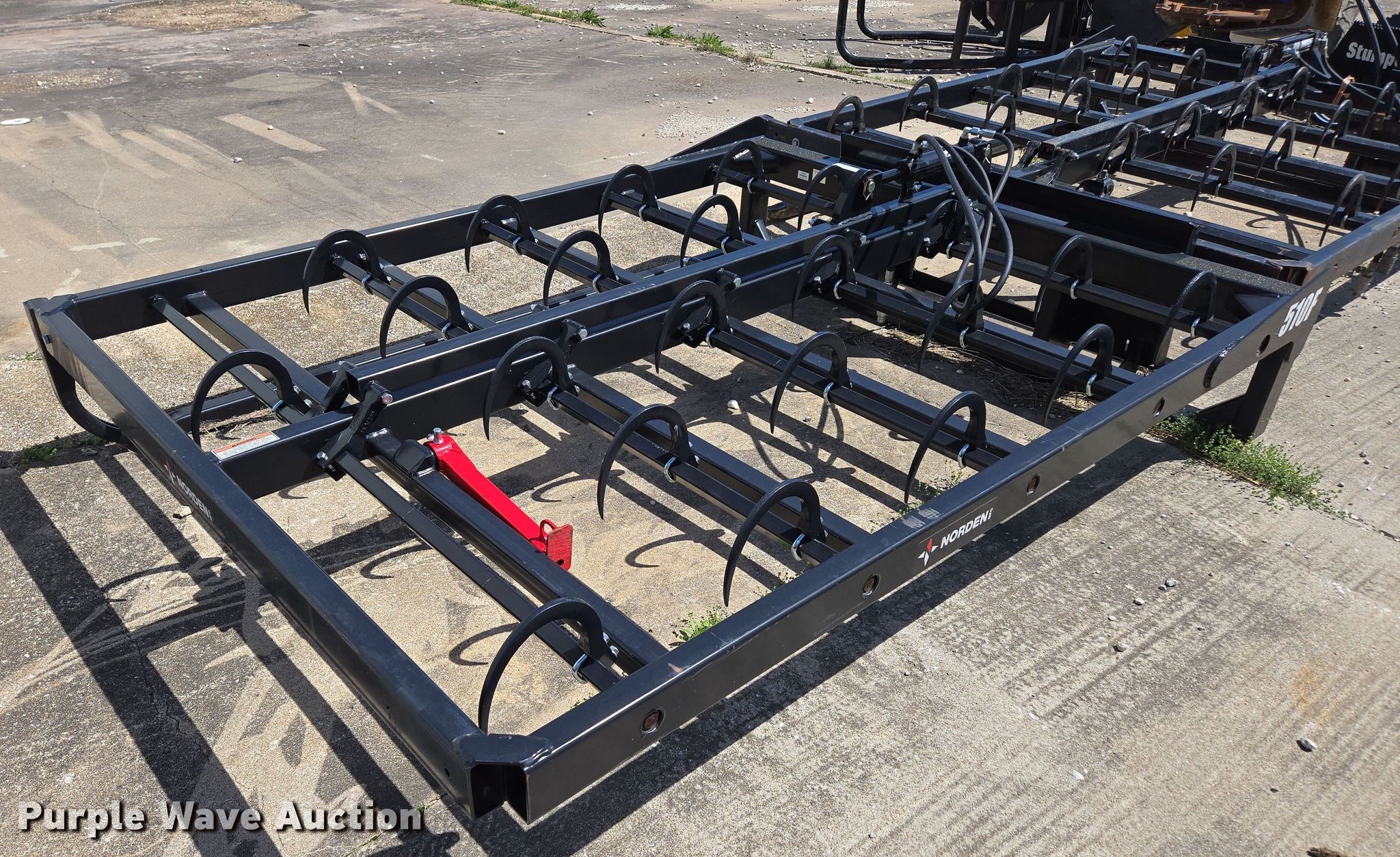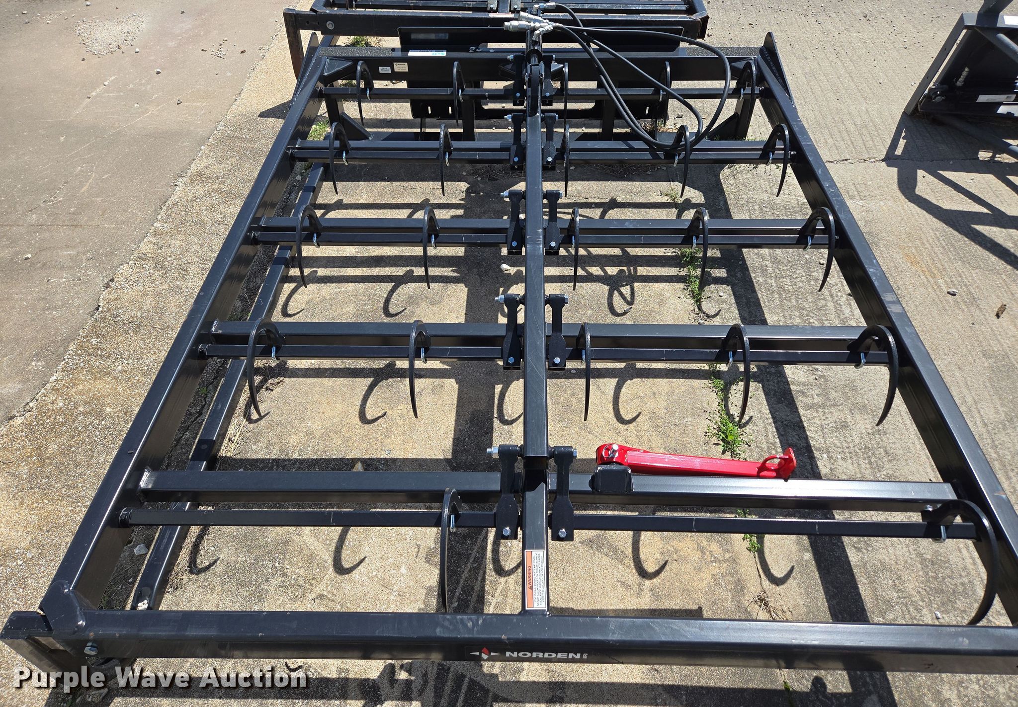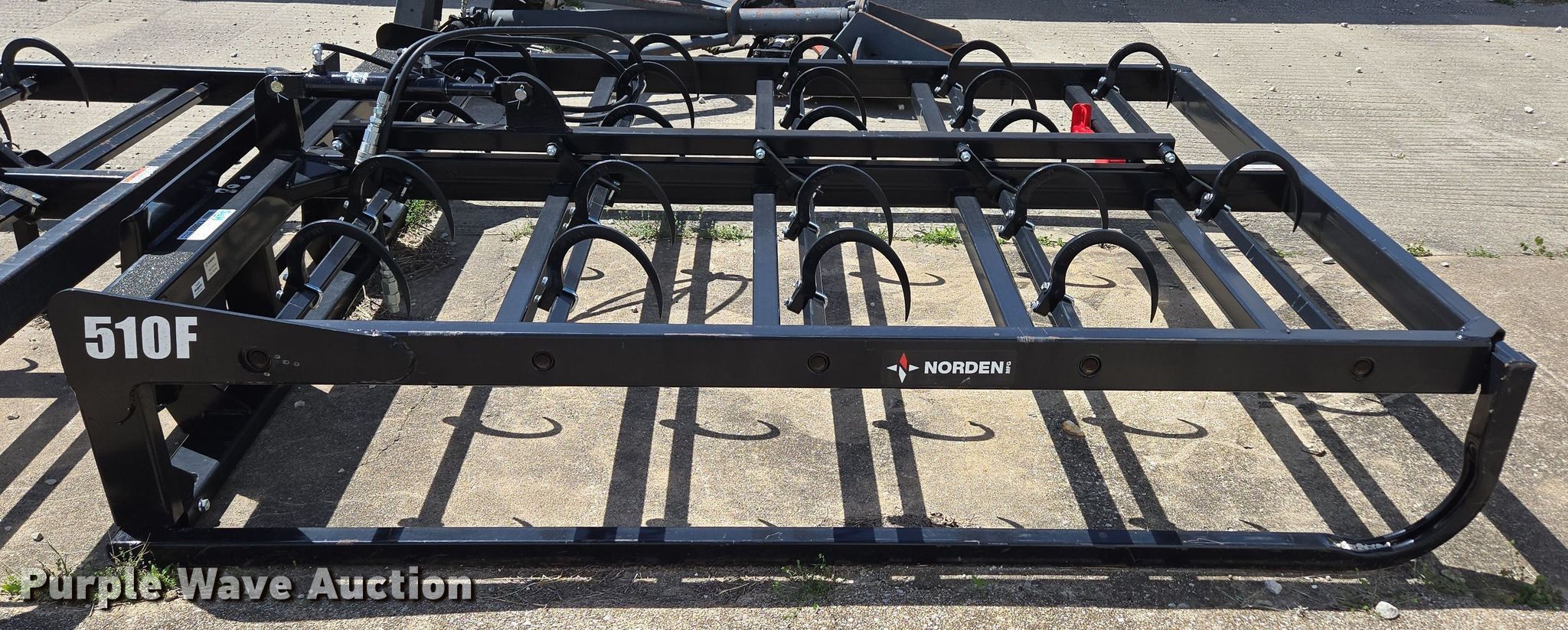 Purple Wave is selling a used Skid Steer Attach. in Missouri. This item is a Norden 510F 510F skid steer bale accumulator grapple with the following: Serial: G226488, Capacity: 10 bales, Adjustable bale fence/guide bar
