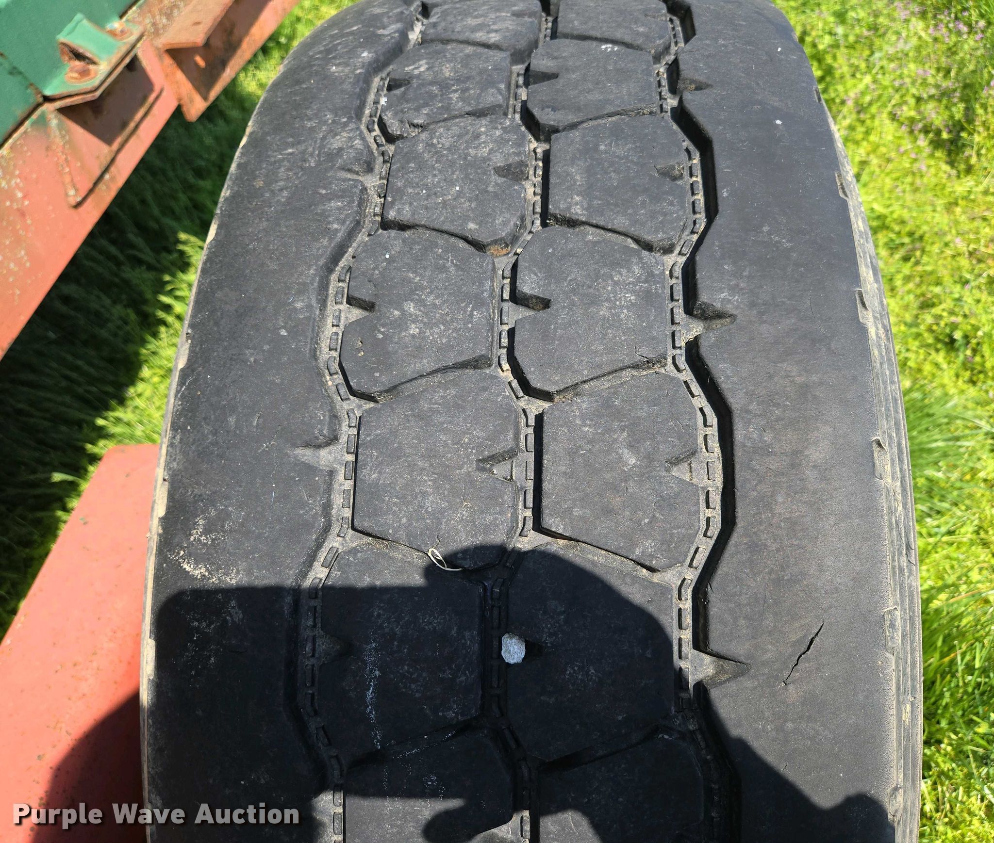 Honey wagon. Overall dimensions: 22' 2.5" L x 109" W. Features Tank type: Steel Capacity: 3,000 gallons, Pump, Top fill, PTO: 1000. Chassis Landing gear: Single, Suspension: Walking beam, Axles: Tandem. Tires Steel wheels, Size: 425/65R22.5. Mast Excavating. Sarcoxie, MO 64862