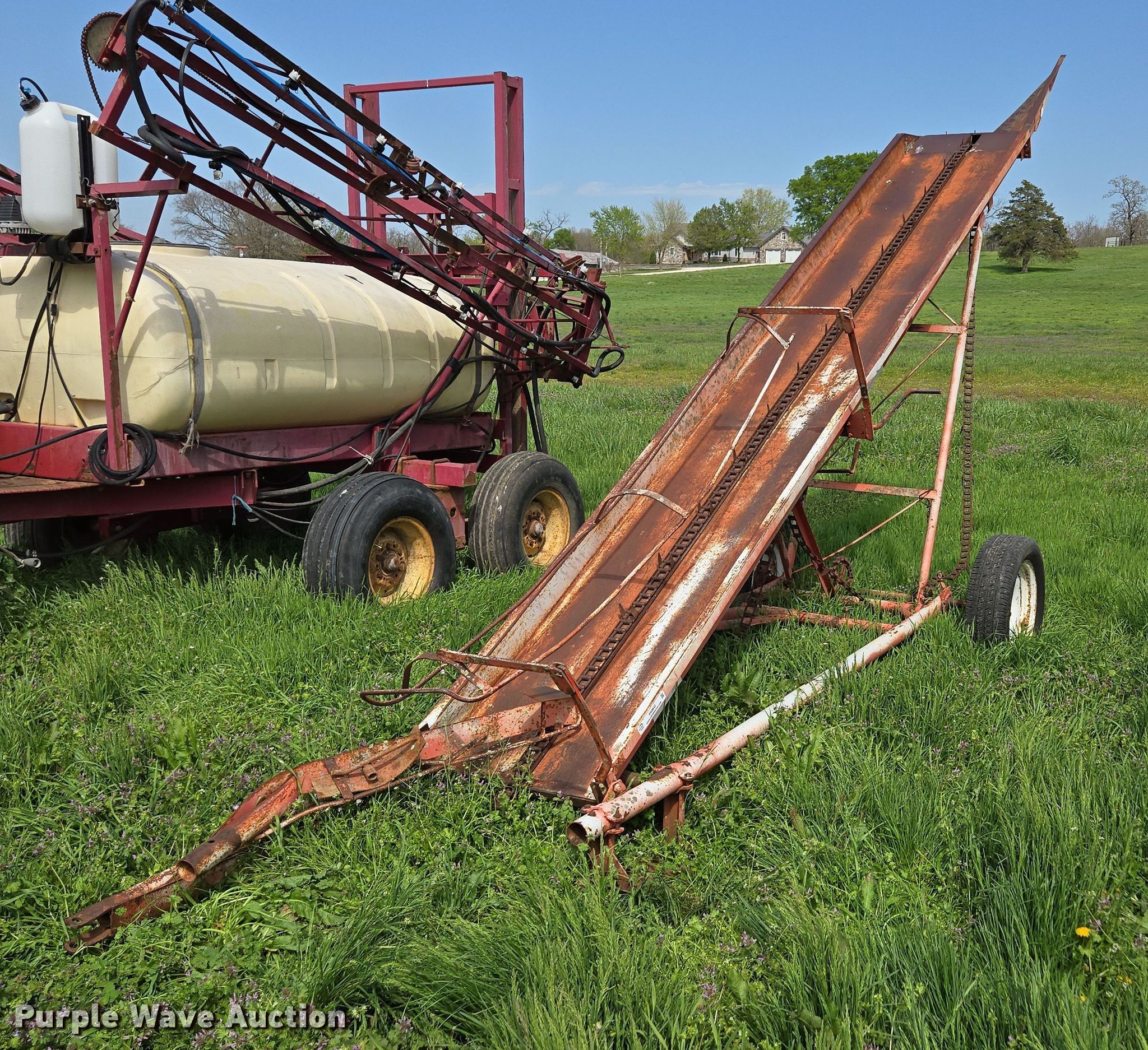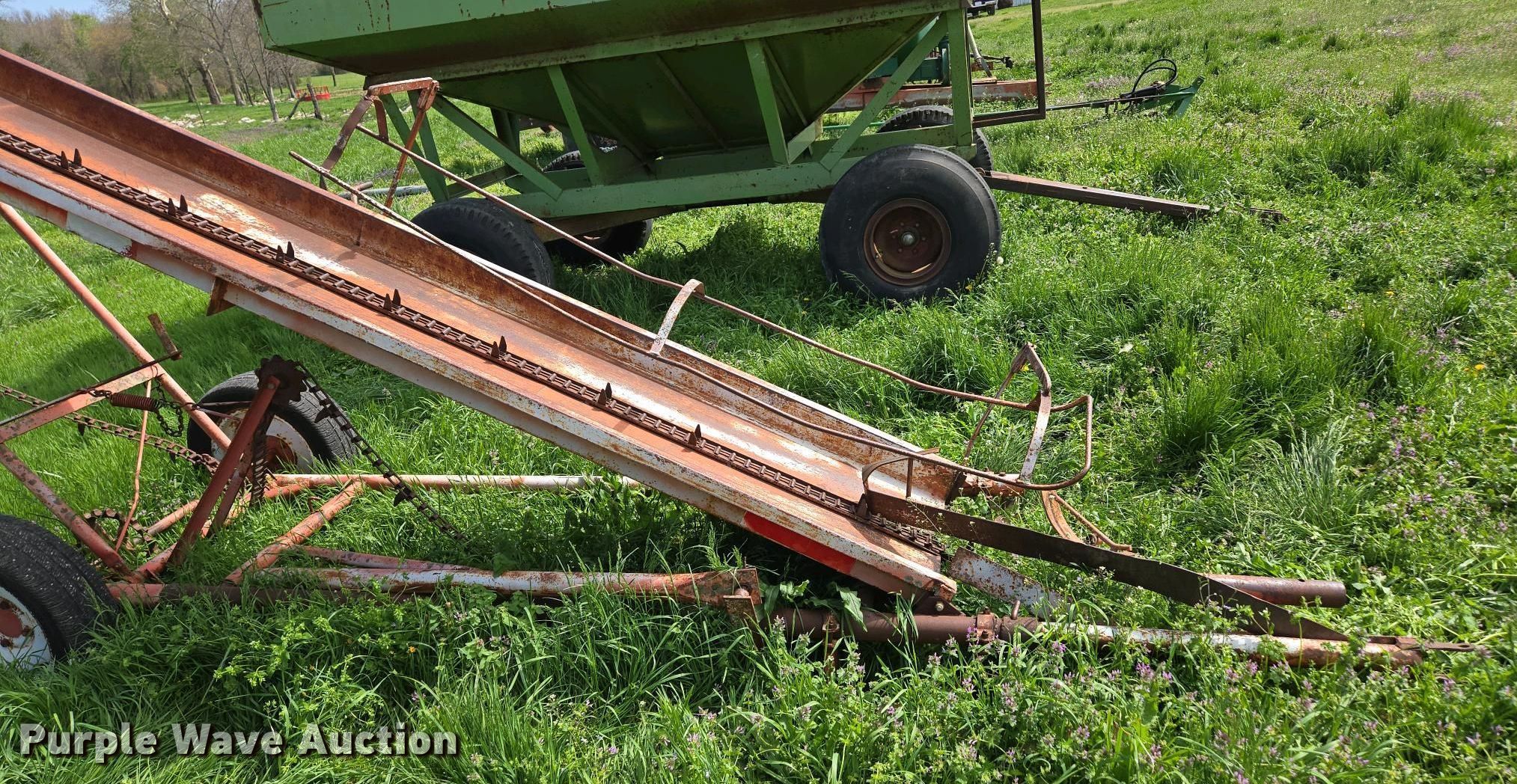 Purple Wave is selling a used Hay Handling in Missouri. This item is a Graves hay bale elevator with the following: 20' L x 52" W, Ground driven, Tire size: P185/65R15