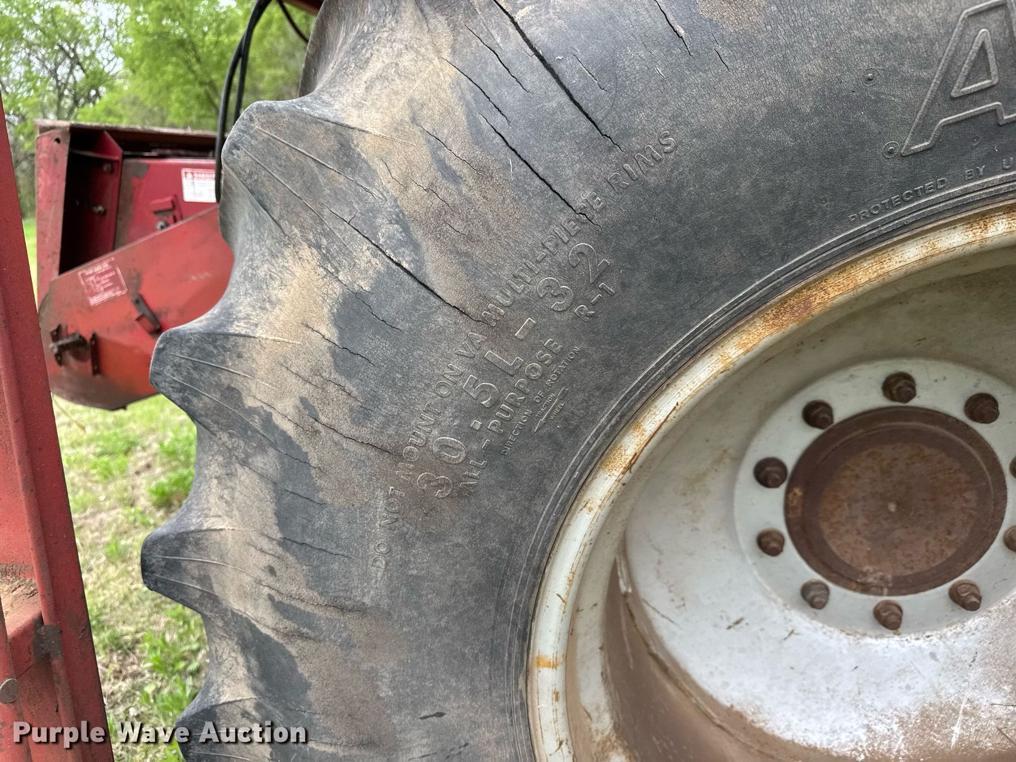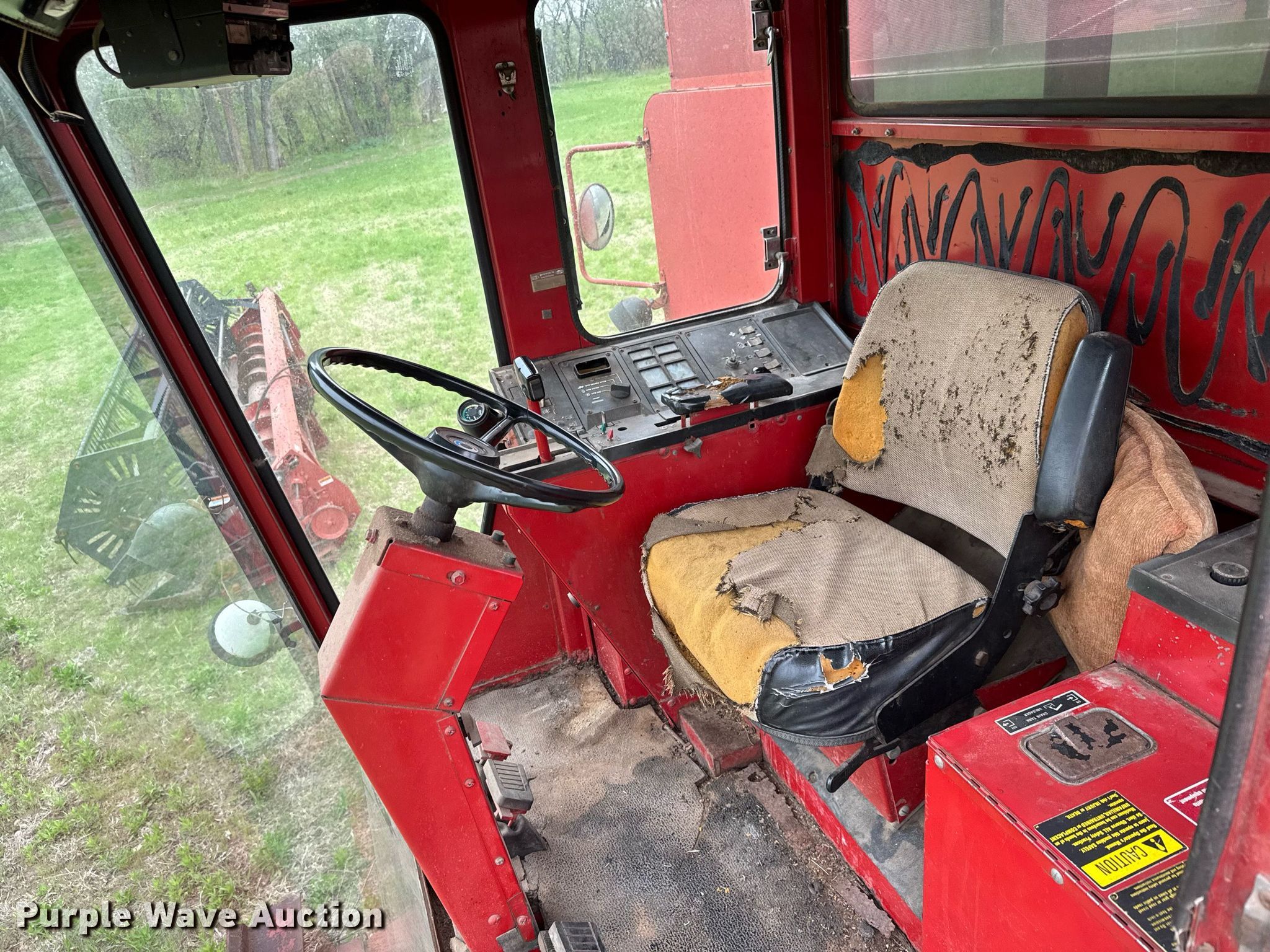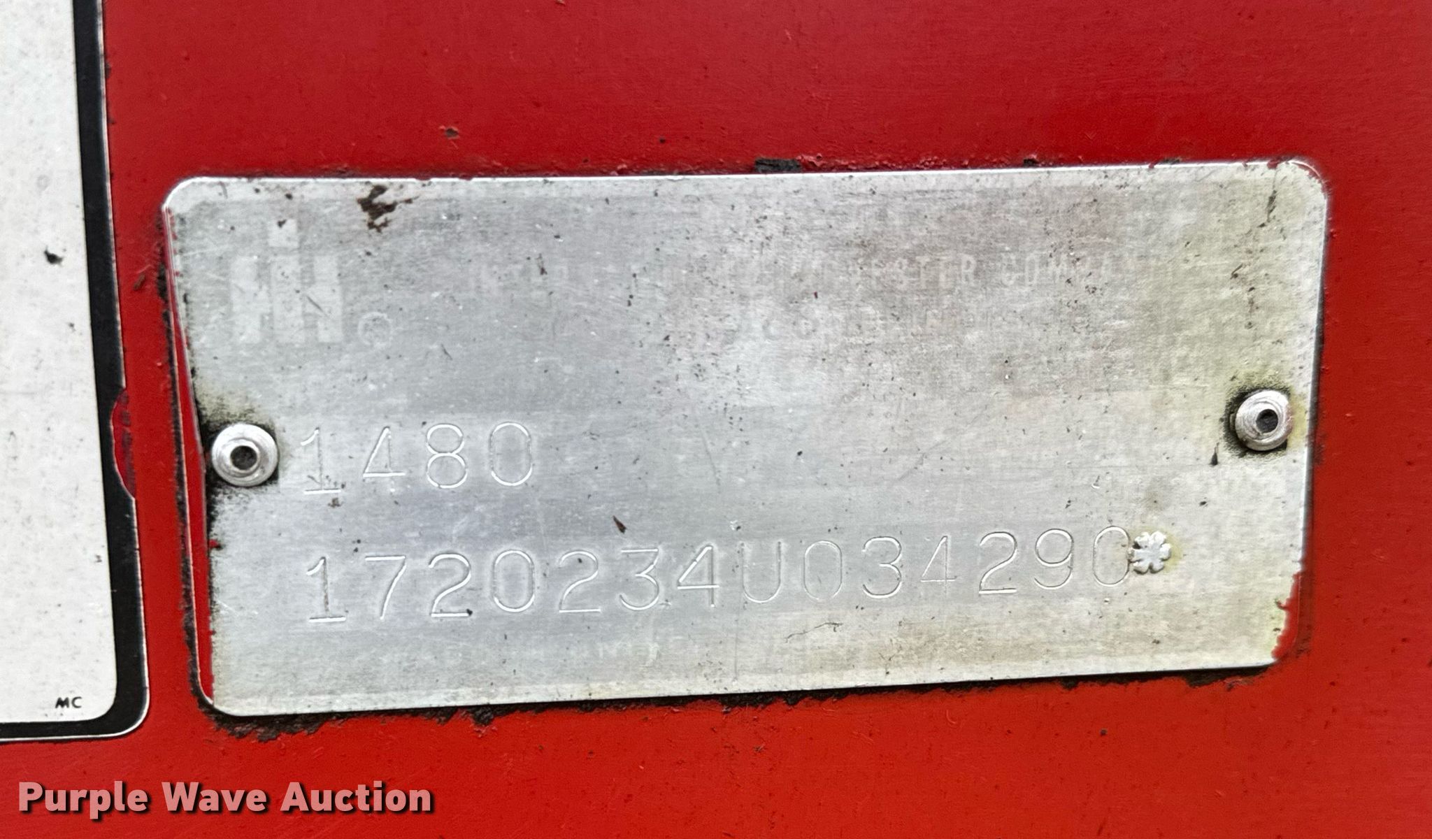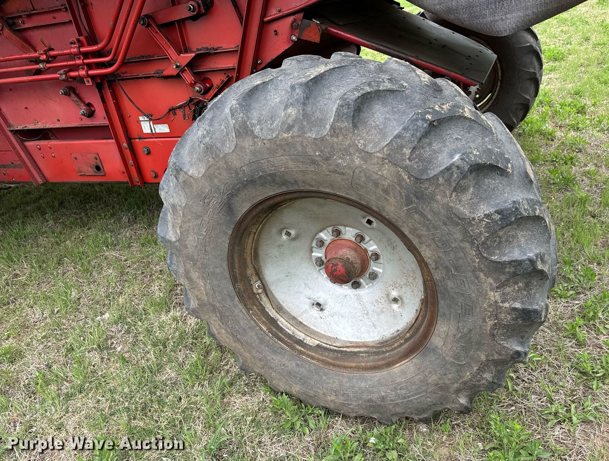 1982 International Harvester 1480 combine. Engine hours: 3,613 on meter, Serial: 1720234U034290. Engine International Harvester, Cylinders: 6, Fuel type: Diesel. Transmission Hydrostatic, 3F - 3R. Operators station AC, Heat. Features Feederhouse: Variable speed, Concaves: Small wire, Large wire, Chaff spreader, Unloading auger length: 15'. Tires Front: 30.5L-32, Rear: 14.9-24. Notes Possible AC issues, may need charged, Header not included. QP Distribution. Mulvane, KS 67110