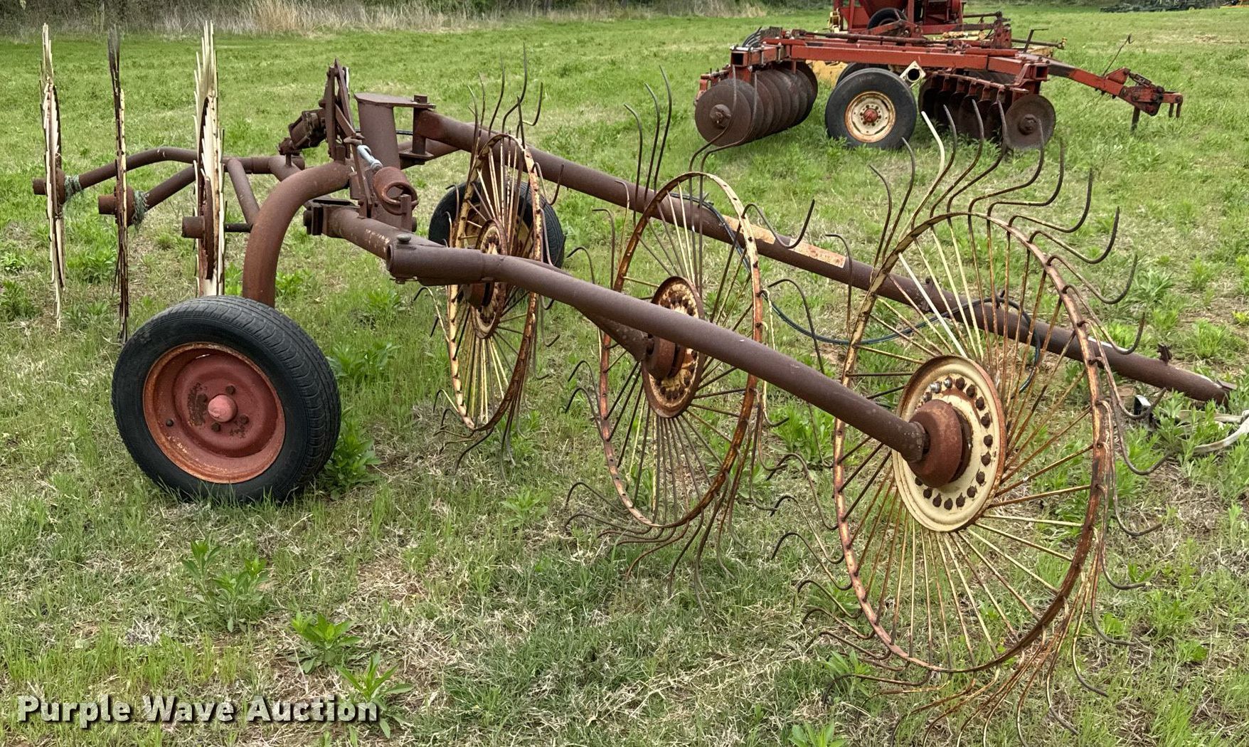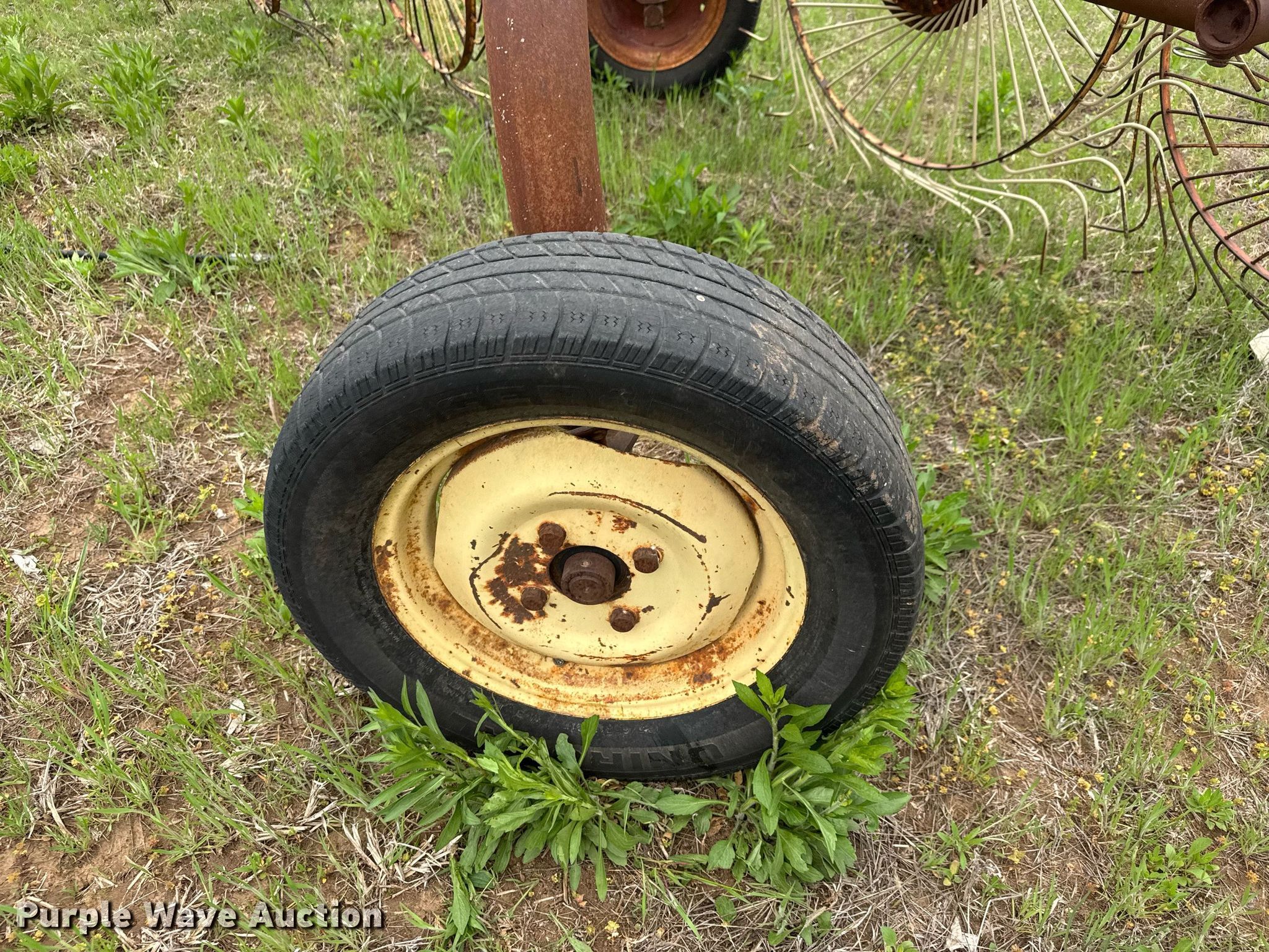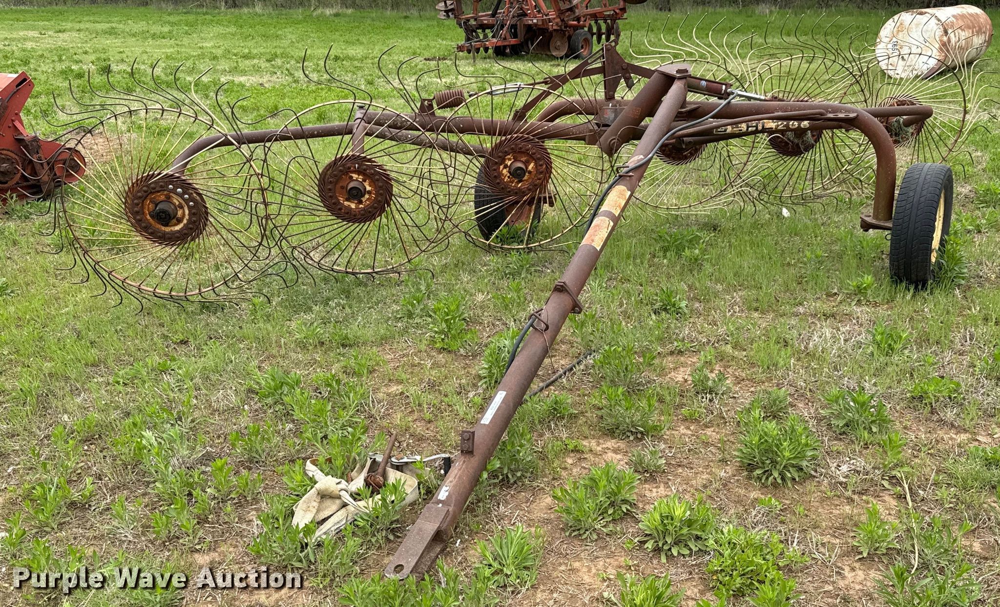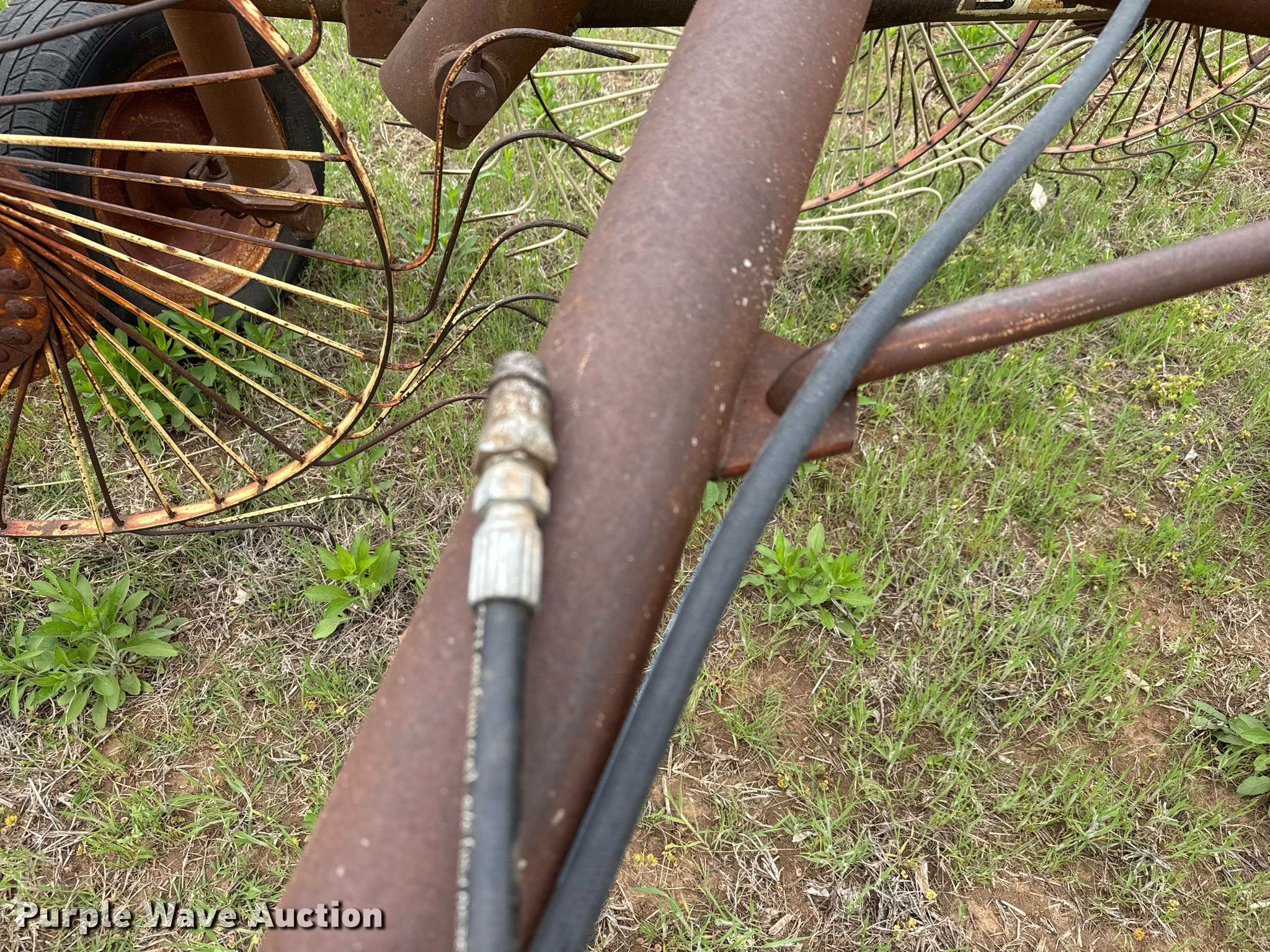 Purple Wave is selling a used Hay Rake in Kansas. This item is a Gehl 206 hay rake with the following: Width: 10', Wheels: 6, Diameter: 52"