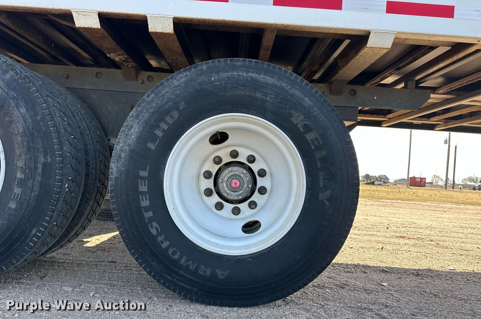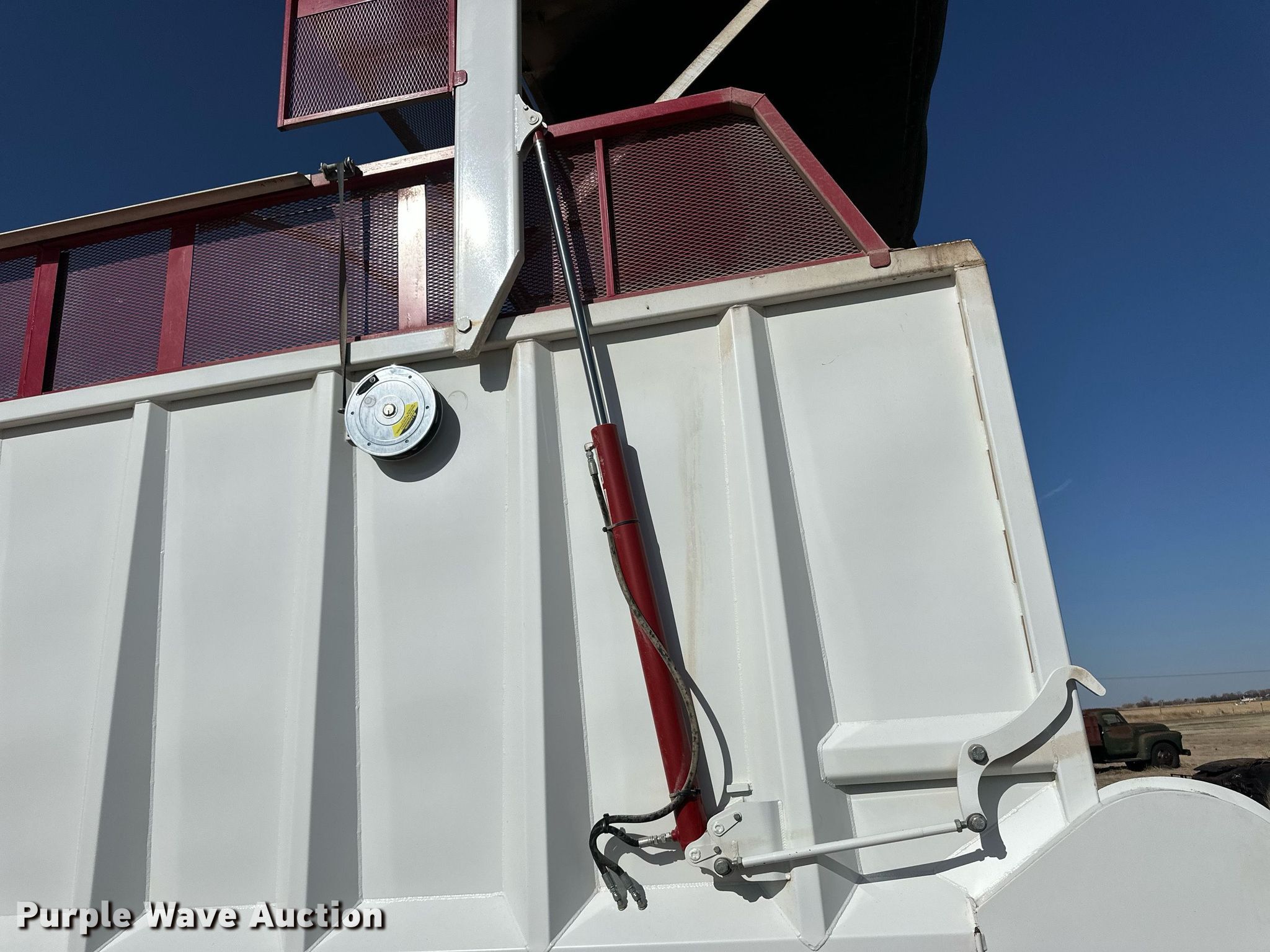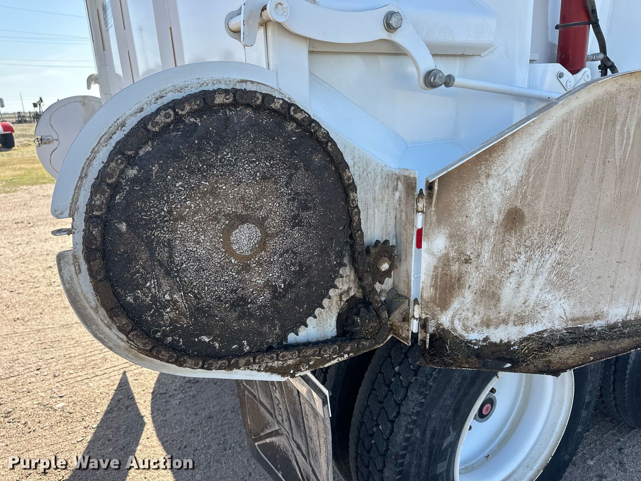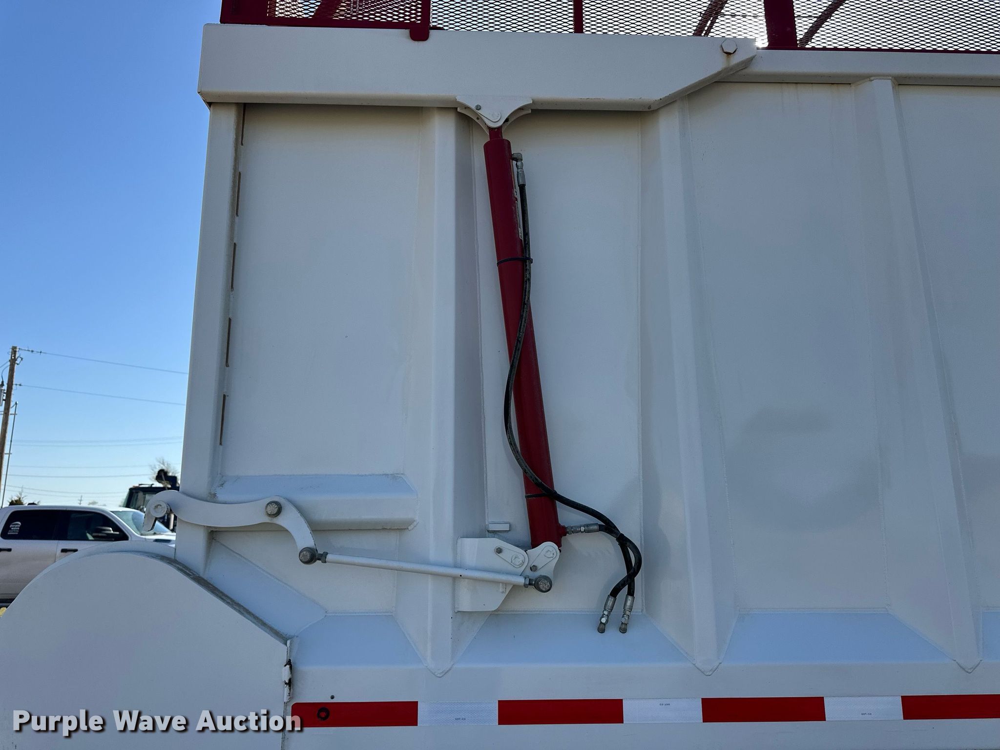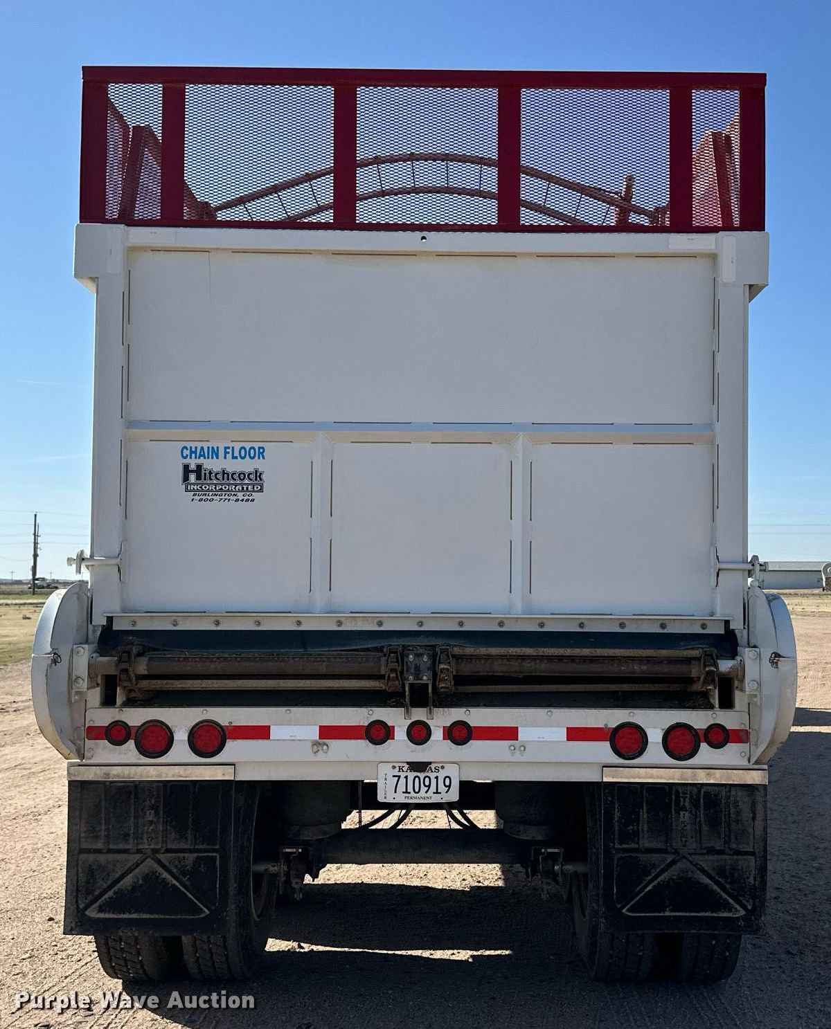 2023 Hitchcock APL36 silage trailer. VIN: 1H9NL3629PB302840. Dimensions Overall: 36' L x 102" W, Side height: 60", Sideboard height: 24". Features Body type: Steel, Trap gates: Hydraulic, Floor: Slat and chain Belt/ chain width: 84", Roll tarp. Chassis Landing gear: Dual, Suspension: Air, Brakes: Air, Axles: Tandem, GVWR: 83,280 lbs, GAWR: 22,500 lbs. Tires Steel wheels, Size: 11R22.5. Notes Semi not included. Kansas electronic title. Title has a lien that will be released following the close of the auction. A paper title will be printed once the lien is released. Title distribution may be delayed up to 30 days from verification of funds. Lakin, KS 67860