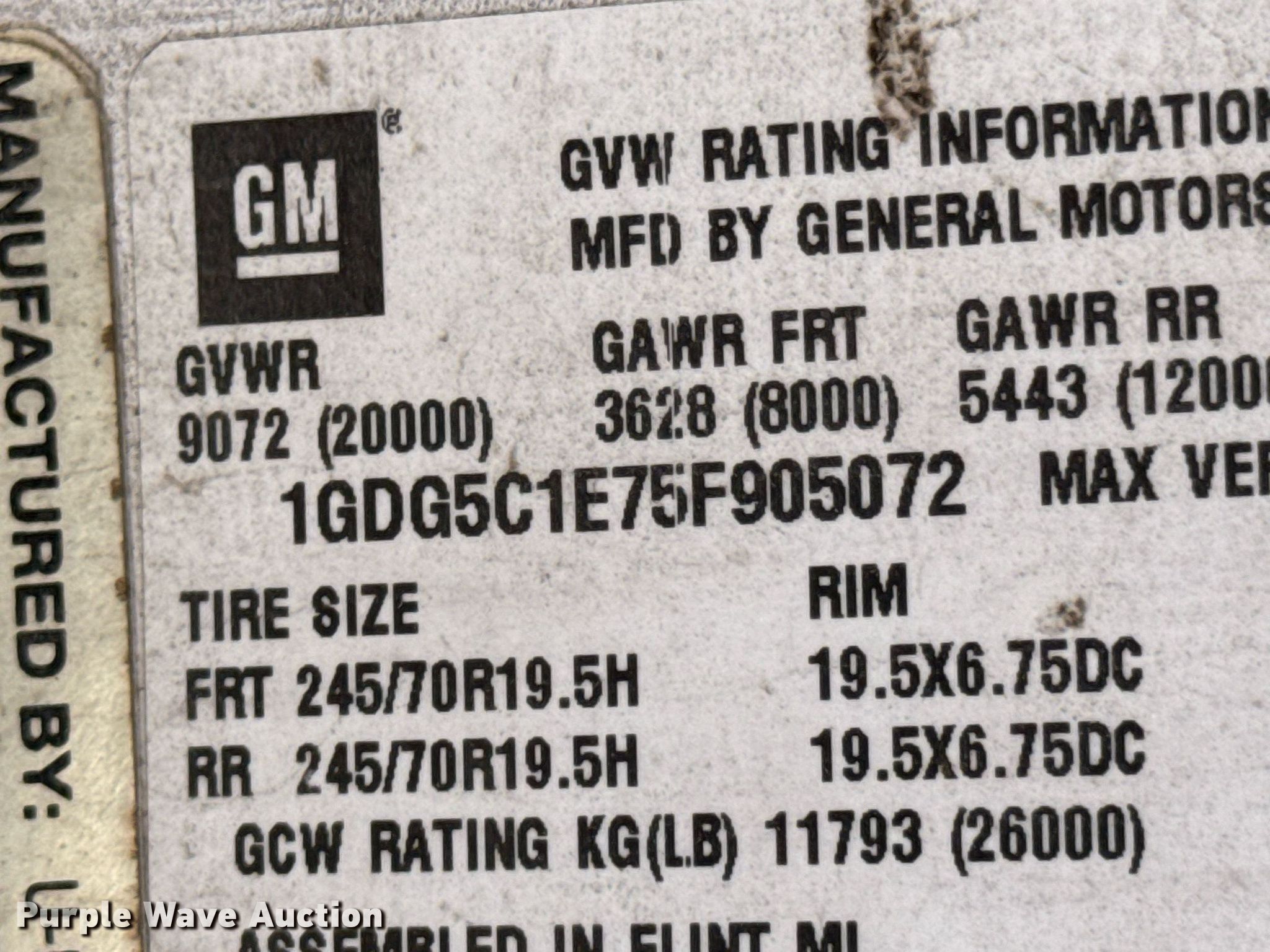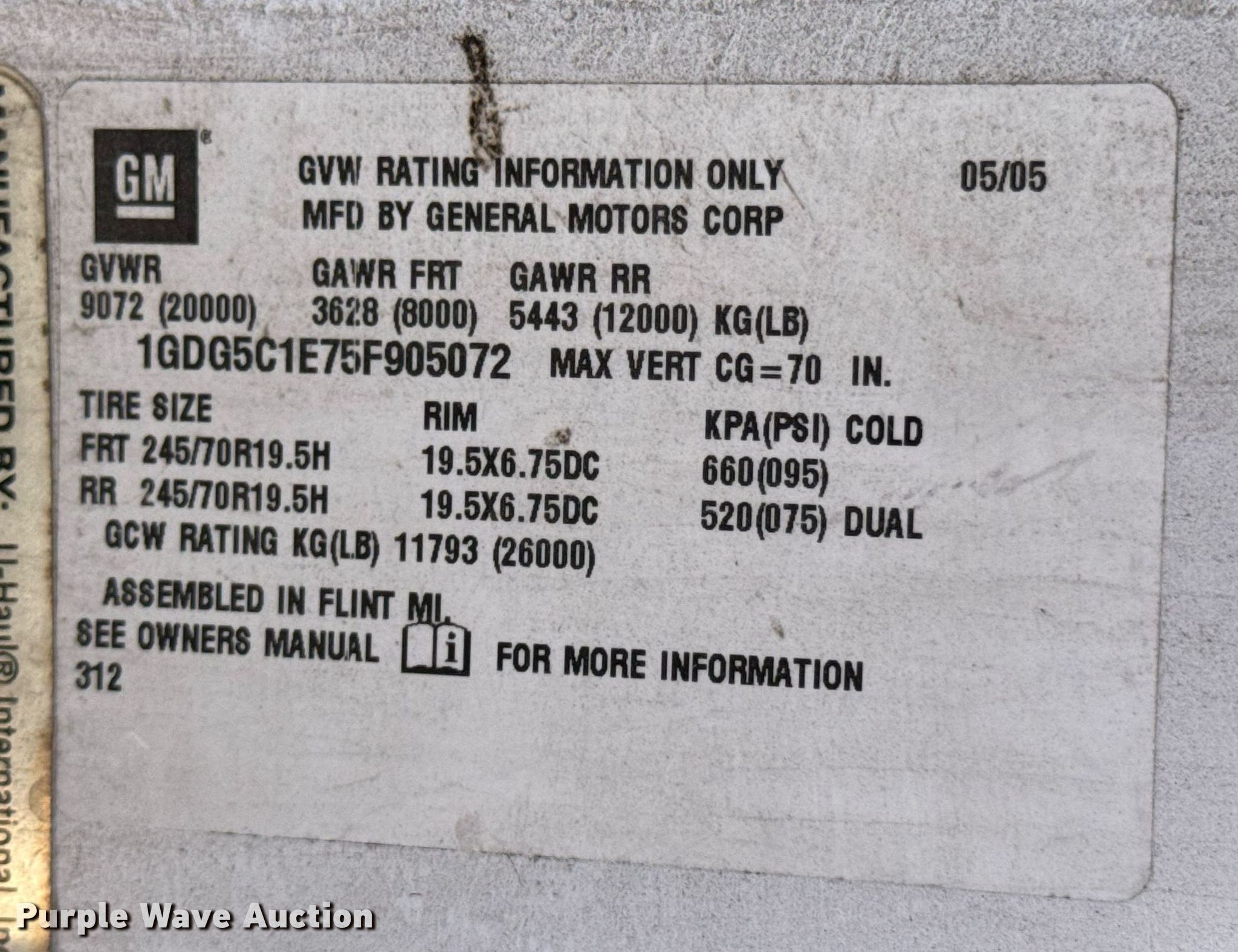 Purple Wave is selling a used Box Truck in Oklahoma. This item is a 2005 GMC C5500 box truck with the following: Miles: 256,459 on odometer, VIN: 1GDG5C1E75F905072