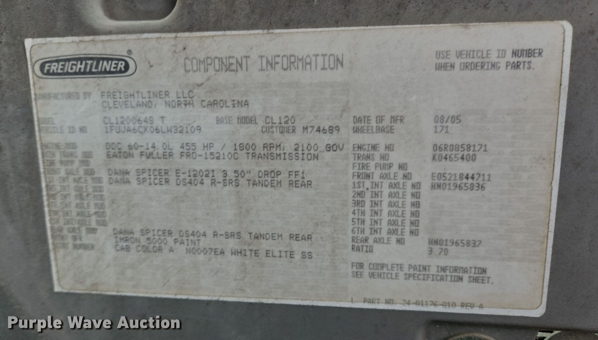 Purple Wave is selling a used Truck Tractor in Texas. This item is a 2006 Freightliner CL120 semi truck with the following: Miles: Unknown, VIN: 1FUJA6CK06LW32109