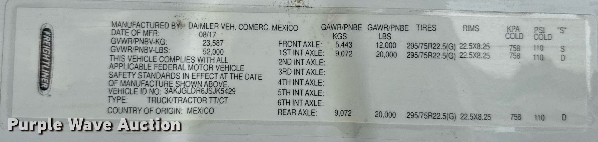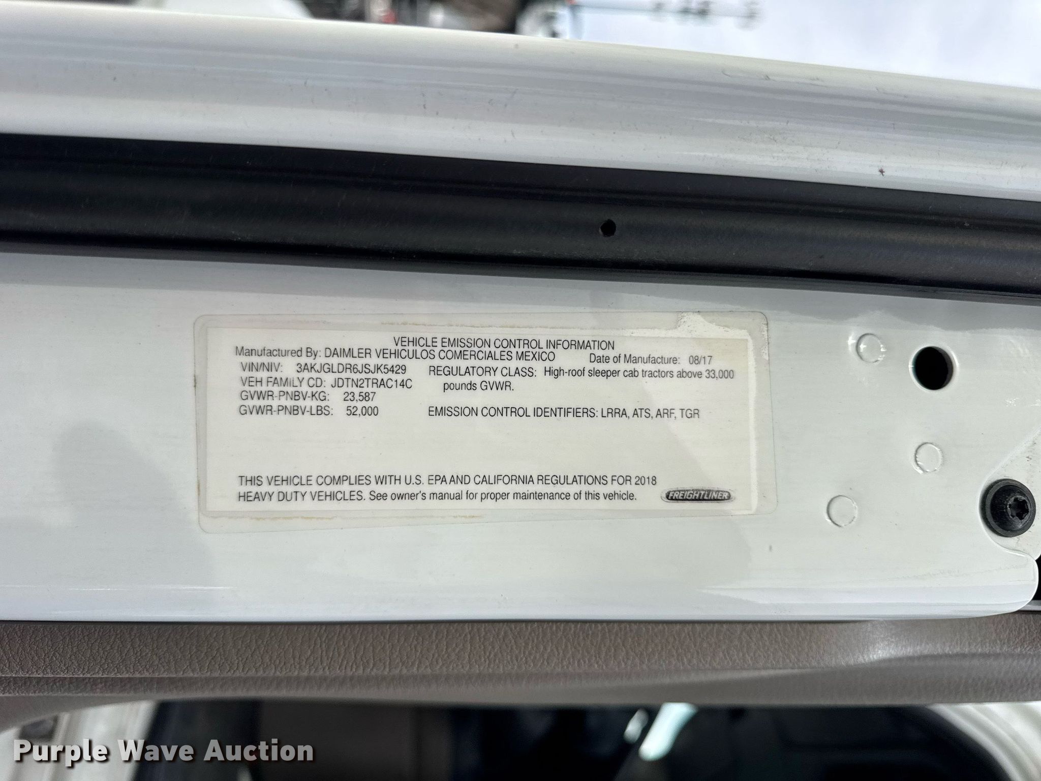 - VIN: 3AKJGLDR6JSJK5429