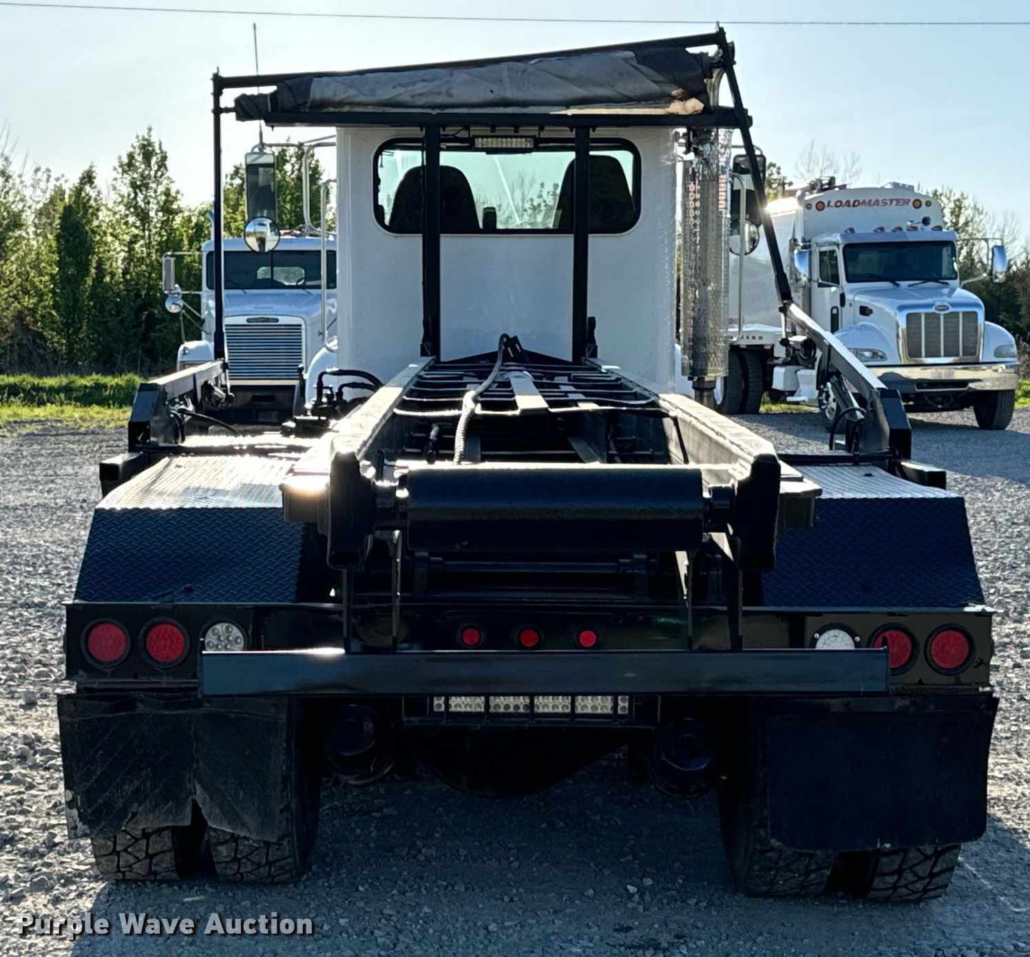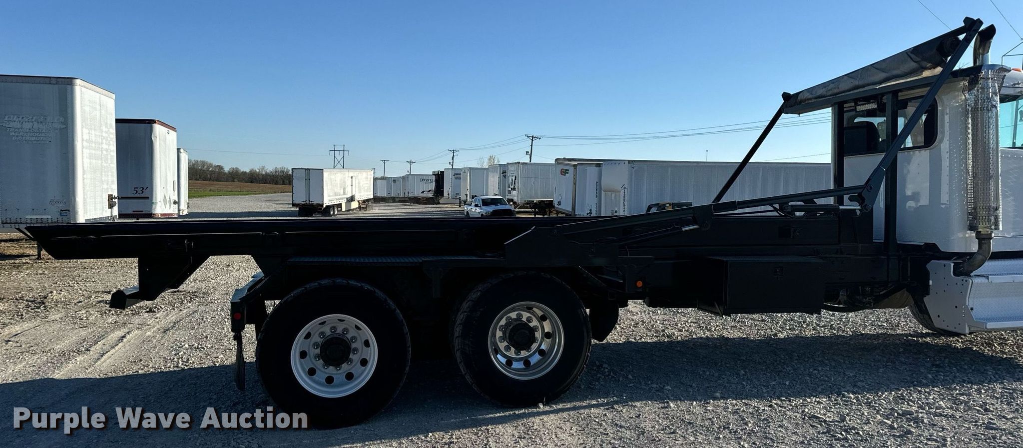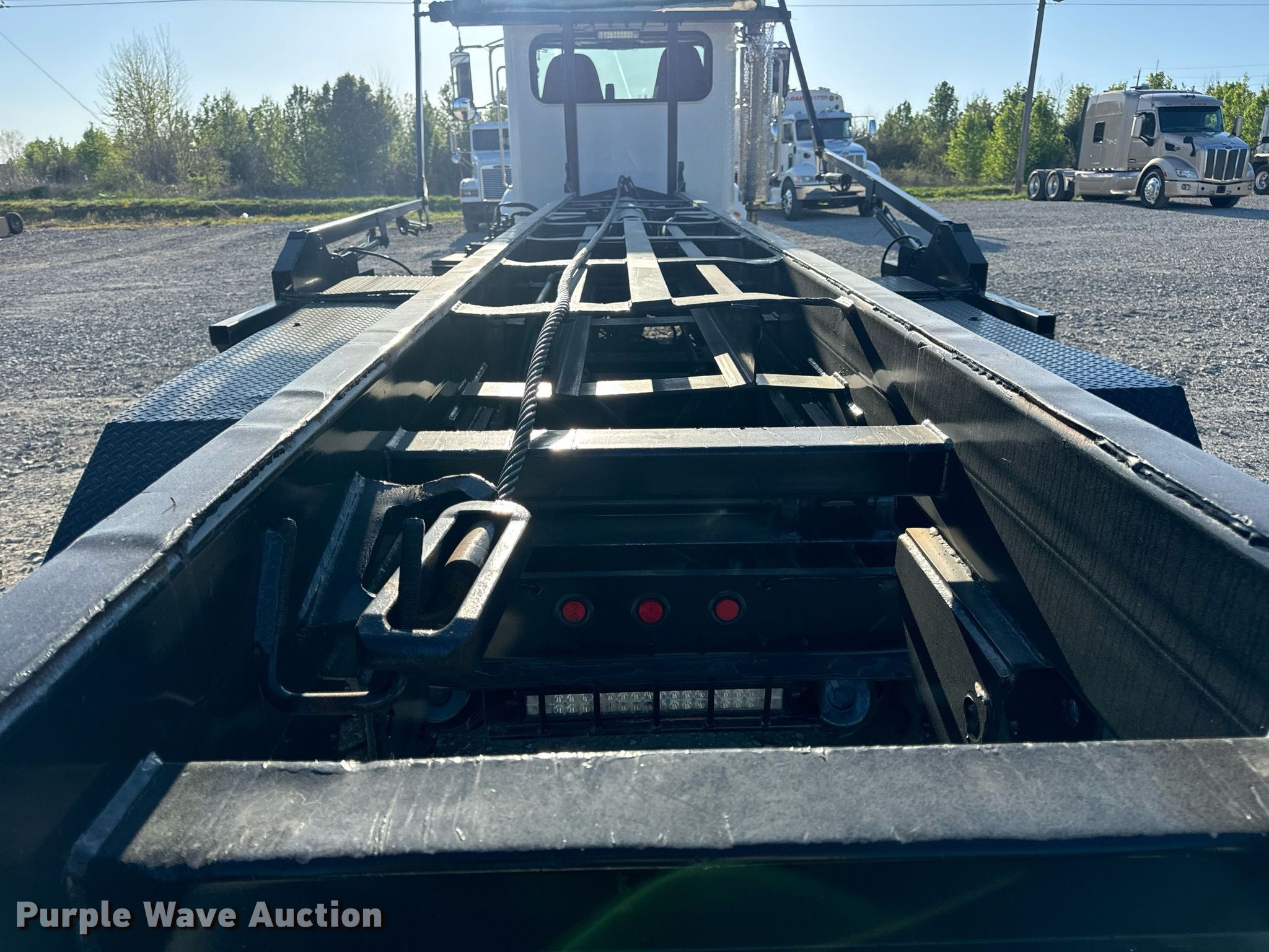 2015 Peterbilt 348 roll-off container truck. Miles: 257,765 on odometer, Hours: 17,000 on meter, VIN: 2NP3LJ0X2FM264249, Unit #: 5. Engine Paccar PX9, Displacement: 8.9L, Cylinders: 6, Fuel type: Diesel. Transmission Allison, Automatic. Chassis Axles: Tandem, Suspension: Spring over walking beam, Brakes: Air, PTO, GVWR: 62,000 lbs. Interior AC, Heat, Heated mirrors, Power windows, Power locks, Cruise control. Features Roll-off bed American Roll-Off V-16-8128, Serial: ARL-60-22176, 22' 4" L, Ram: Dual, Roll tarp. Tires Front: 315/80R22.5, Rear: 11R22.5. Notes Dash warning indicator: ABS, Windshield chipped or cracked. Missouri title. Title distribution may be delayed up to 14 days from verification of funds. Ditzfeld Transfer Inc. Sedalia, MO 65301