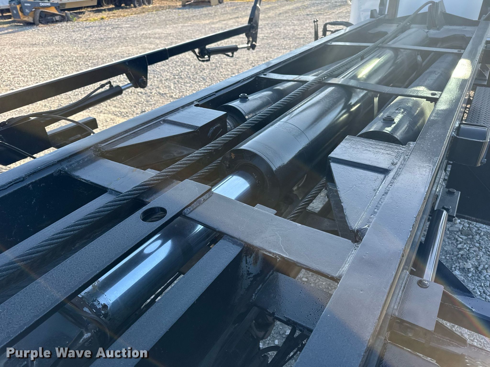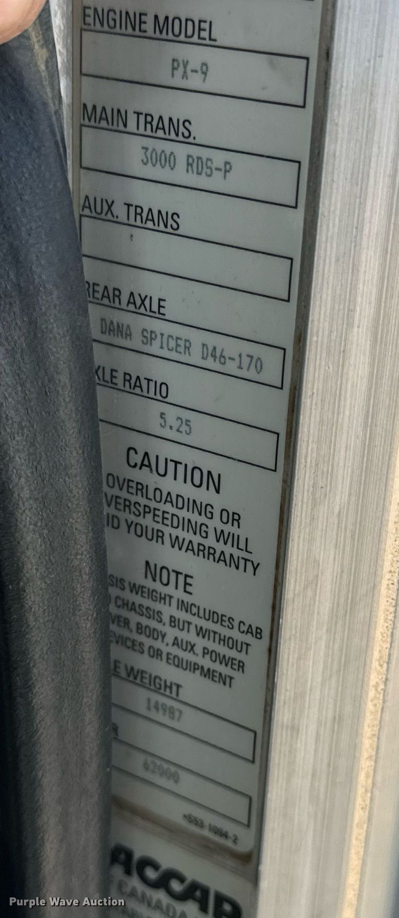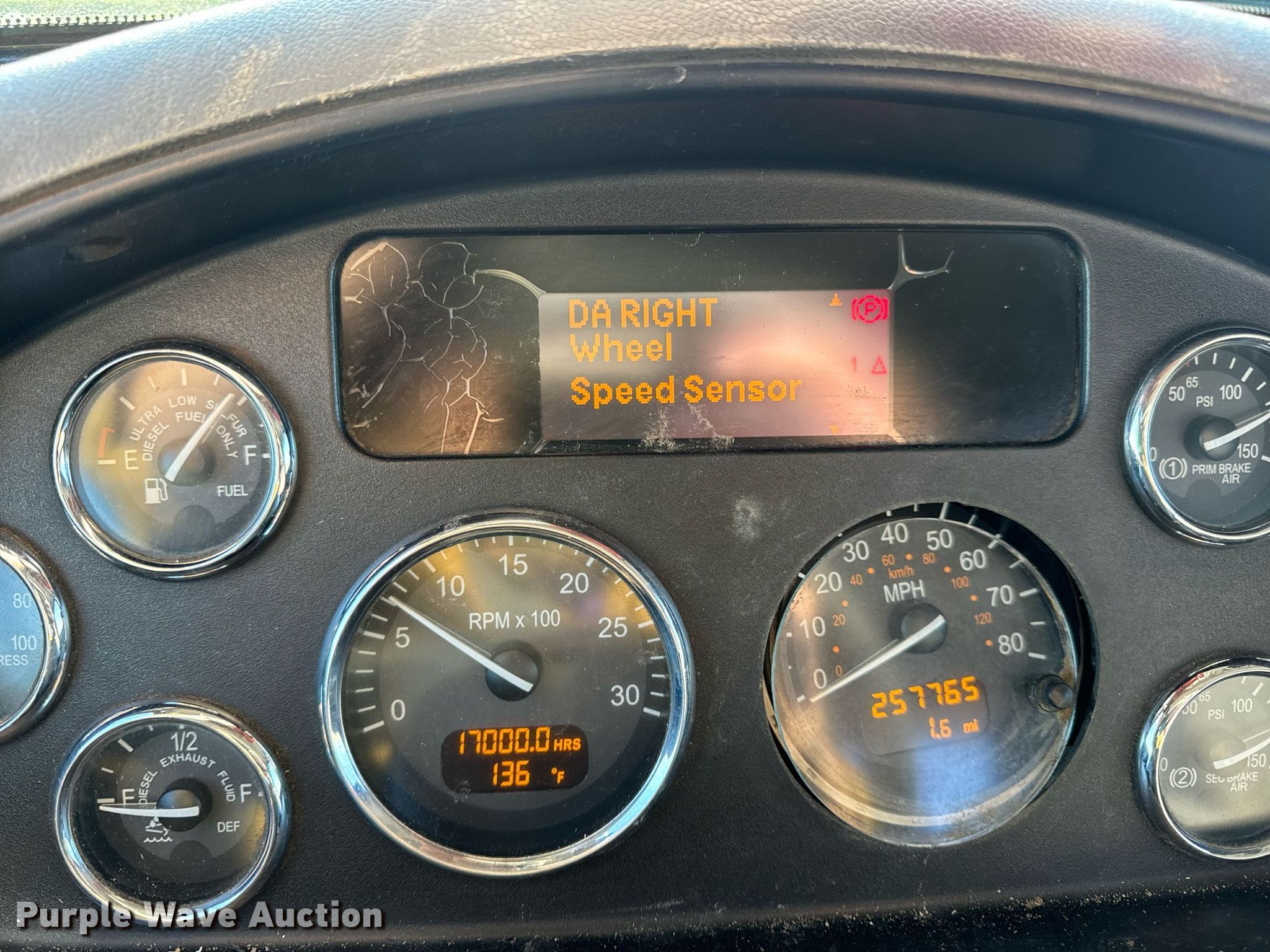2015 Peterbilt 348 roll-off container truck. Miles: 257,765 on odometer, Hours: 17,000 on meter, VIN: 2NP3LJ0X2FM264249, Unit #: 5. Engine Paccar PX9, Displacement: 8.9L, Cylinders: 6, Fuel type: Diesel. Transmission Allison, Automatic. Chassis Axles: Tandem, Suspension: Spring over walking beam, Brakes: Air, PTO, GVWR: 62,000 lbs. Interior AC, Heat, Heated mirrors, Power windows, Power locks, Cruise control. Features Roll-off bed American Roll-Off V-16-8128, Serial: ARL-60-22176, 22' 4" L, Ram: Dual, Roll tarp. Tires Front: 315/80R22.5, Rear: 11R22.5. Notes Dash warning indicator: ABS, Windshield chipped or cracked. Missouri title. Title distribution may be delayed up to 14 days from verification of funds. Ditzfeld Transfer Inc. Sedalia, MO 65301