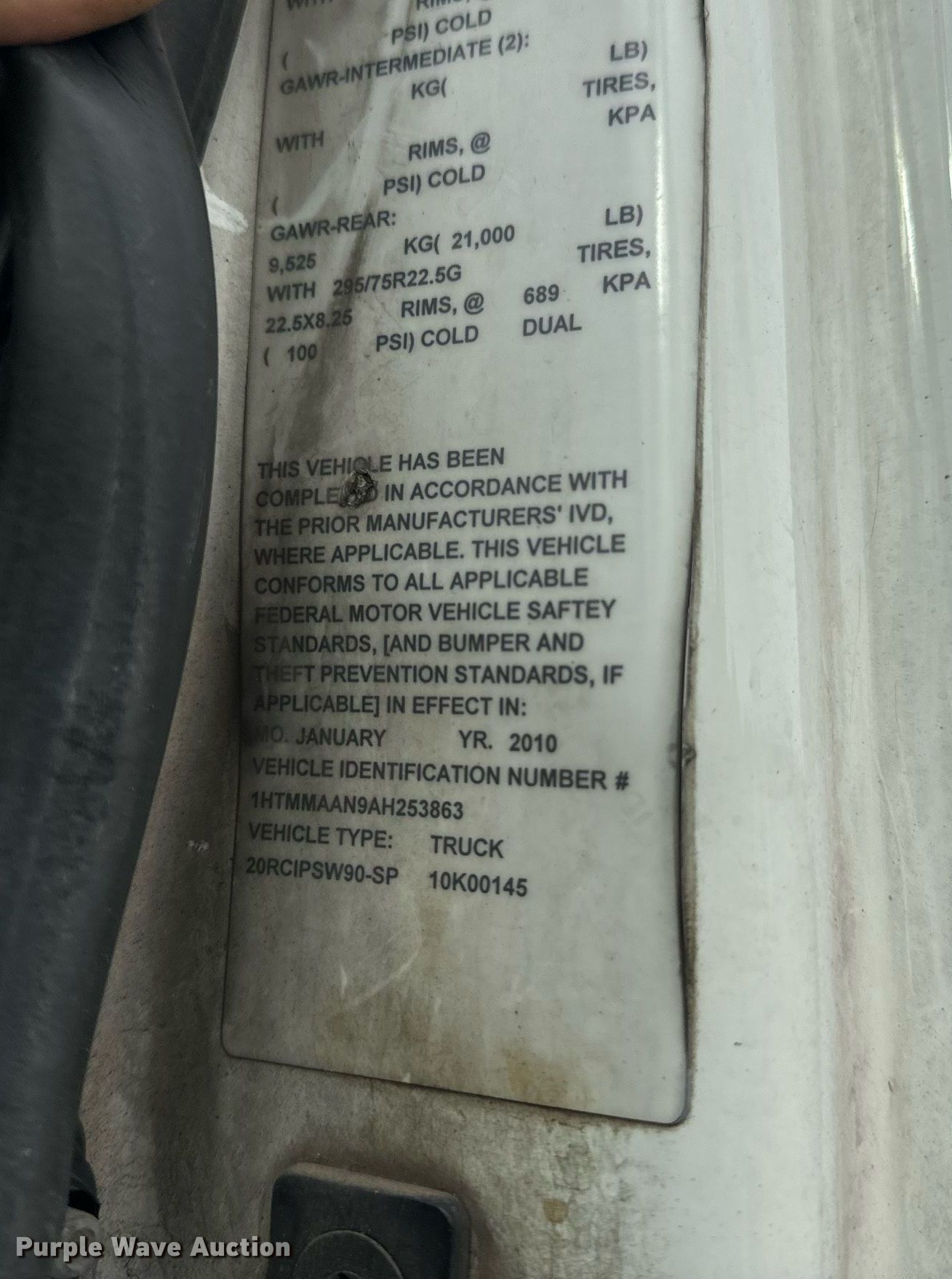 - VIN: 1HTMMAAN9AH253863
