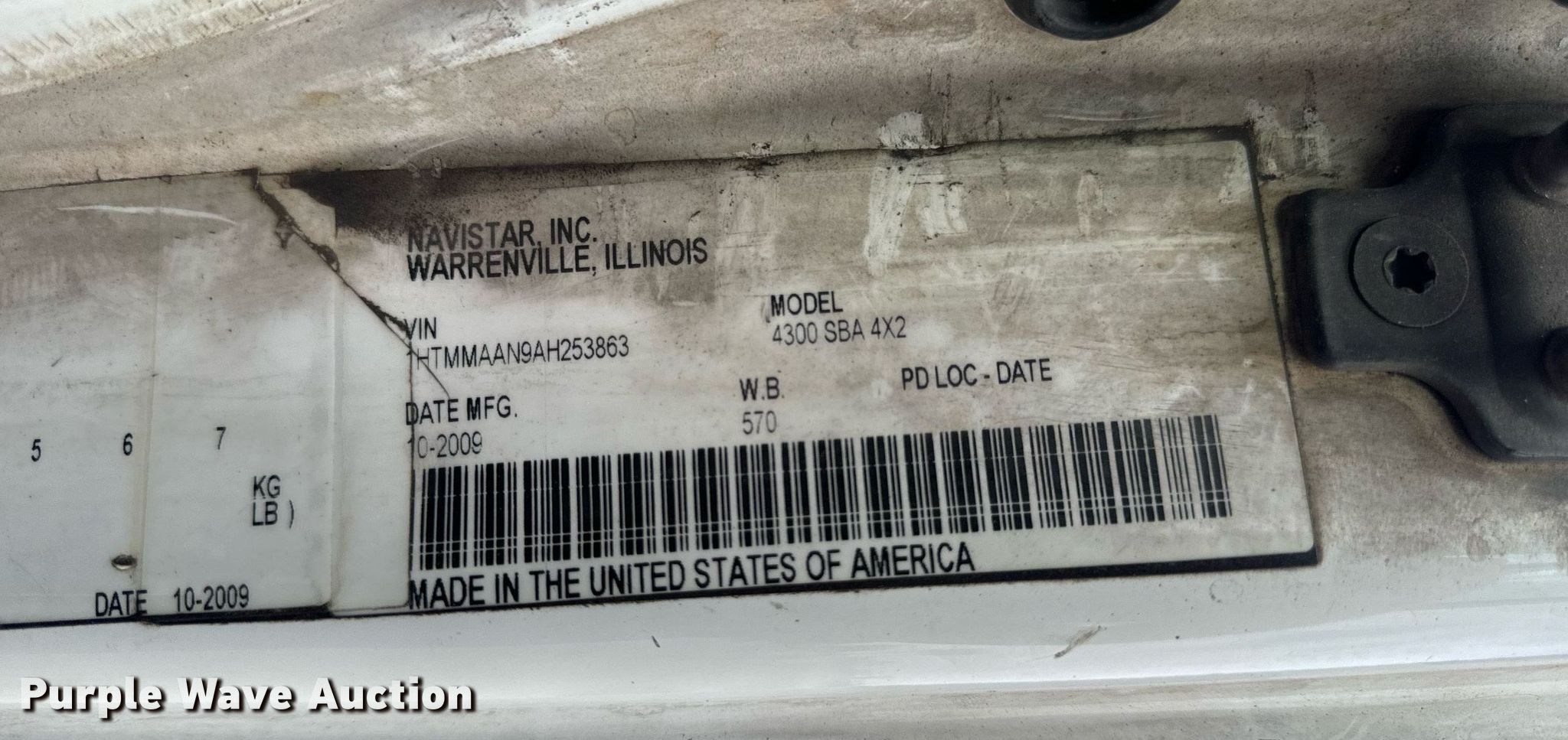 Purple Wave is selling a used Truck Chassis in Missouri. This item is a 2010 International DuraStar 4300 truck cab and chassis with the following: Miles: 223,532 on odometer, Hours: 10,892 on meter, VIN: 1HTMMAAN9AH253863, Unit #: 4645