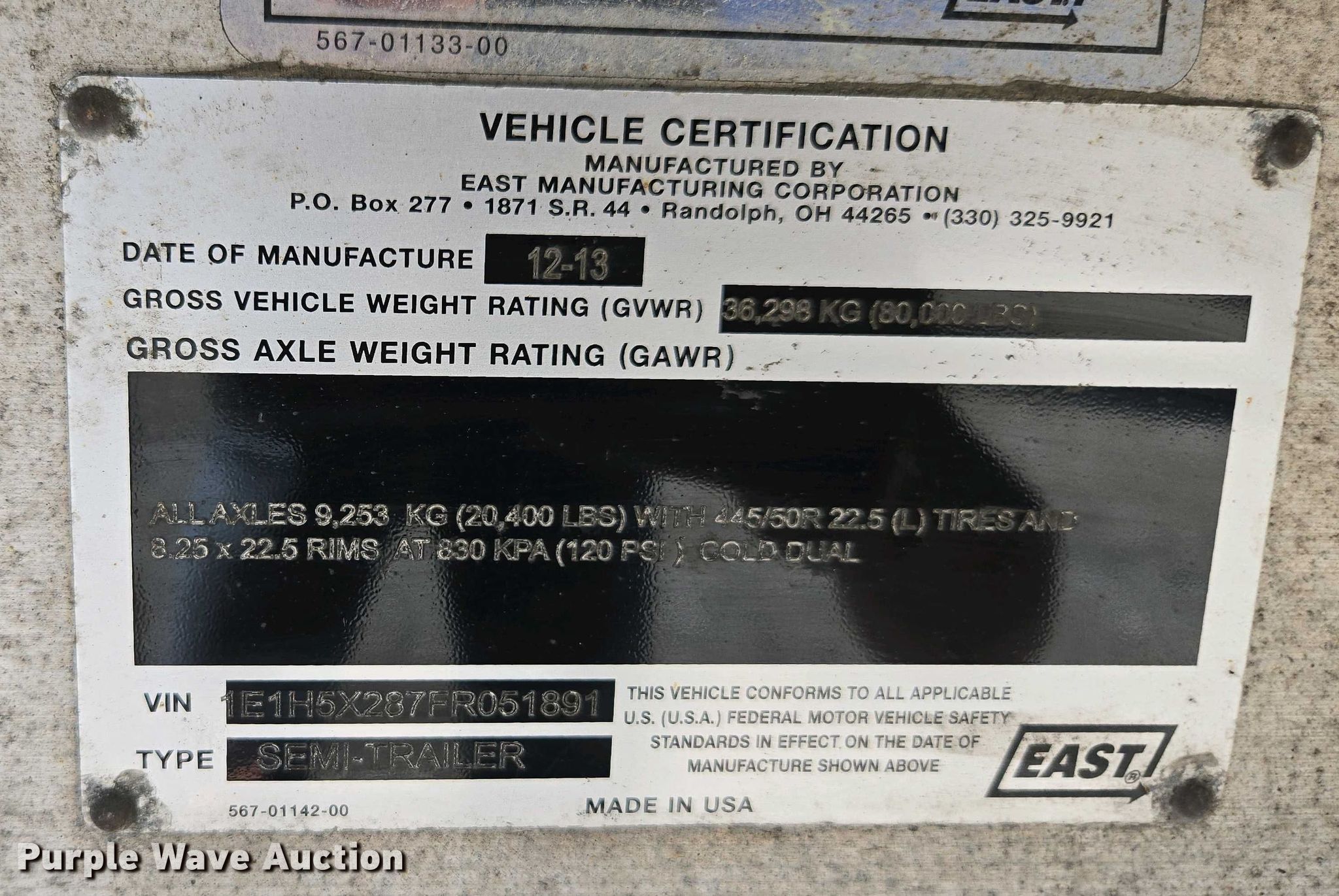 This 2015 East BST flatbed trailer will sell to the highest bidder regardless of price.