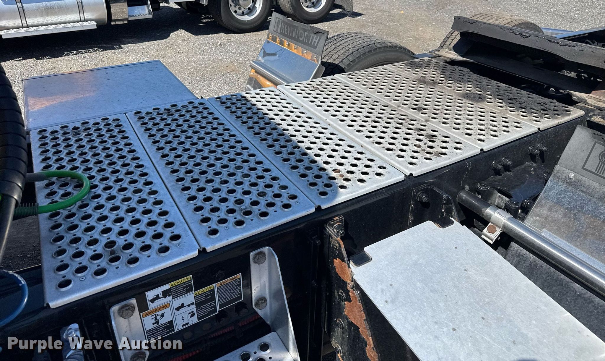 2022 Kenworth T680 semi truck. Miles: 535,349 on odometer, Hours: 11,264 on meter, VIN: 1XKYDP9X7NJ493469, Unit # : 22550. Engine Paccar MX-13, Displacement: 12.9L, Cylinders: 6, Fuel type: Diesel, Engine brake. Transmission Automated manual. Chassis Axles: Tandem, Differential lock: Inter-axle, Suspension: Air, Brakes: Air, GVWR: 50,500 lbs FAWR: 12,500 lbs, RAWR: 38,000 lbs. Interior AC, Heat, Heated mirrors, Power windows, Power locks, Cruise control, Air ride cab. Features Deck plate: Aluminum, Fifth wheel type: Fixed, Fuel tank: Single. Tires Front: 295/75R22.5, Rear: 445/50R22.5. Oklahoma title. Title distribution may be delayed up to 30 days from verification of funds. Gemini Motor Transport. 4333 East Lee Highway. Max Meadows, VA 24360