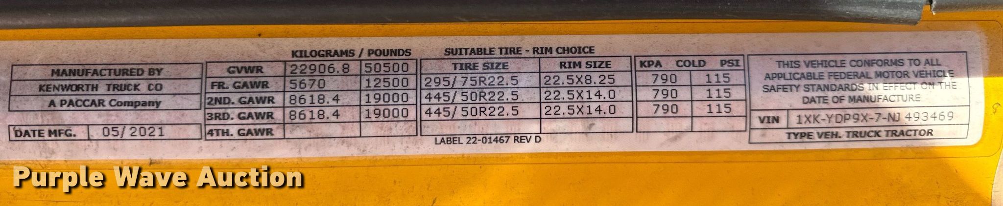 Purple Wave is selling a used Truck Tractor in Virginia. This item is a 2022 Kenworth T680 semi truck with the following: Miles: 535,349 on odometer, Hours: 11,264 on meter, VIN: 1XKYDP9X7NJ493469, Unit # : 22550
