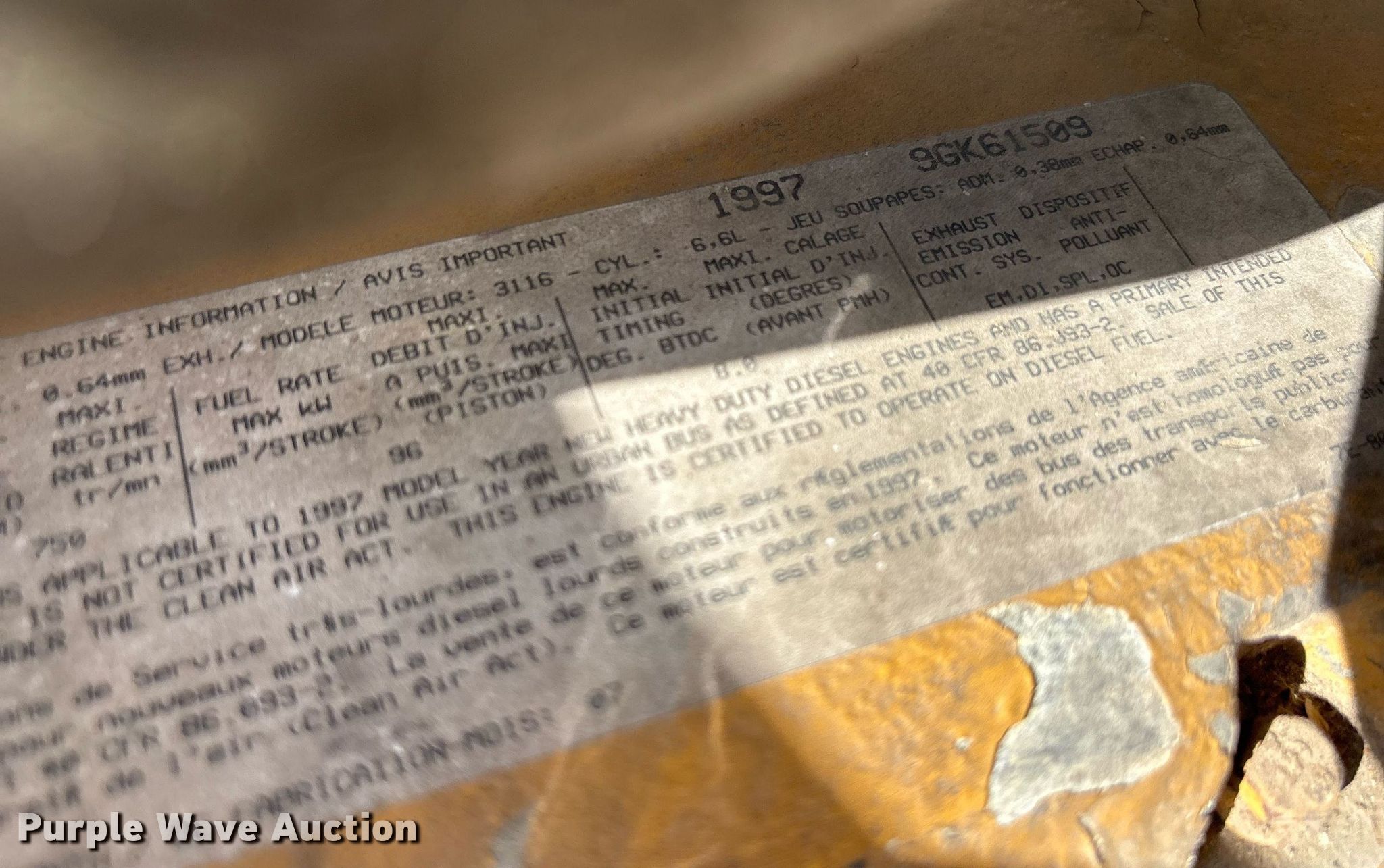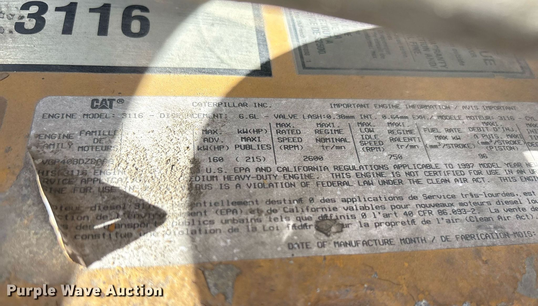1997 GMC C7500 box truck. Miles: 217,744 on odometer, VIN: 1GDM7H1J3VJ519754. Engine Caterpillar 3116, Serial: 9GK61509, Displacement: 6.6L, Cylinders: 6, Fuel type: Diesel, HP: 215. Transmission Manual, Speed: 6. Chassis Axles: Single, Suspension: Spring, Brakes: Air, Wheelbase: 264". Interior AC, Heat. Features Box bed Mickey VB26107, Serial: 3723V98, 26' L x 8' W x 9' H, E-track rail system, Floor: Wood, End gate lift Maxon RC-4BAB, Capacity: 4,000 lbs.. Tires Size: 11R22.5. Notes Dead battery. Texas title. Title distribution may be delayed up to 30 days from verification of funds. Fort Worth, TX 76179