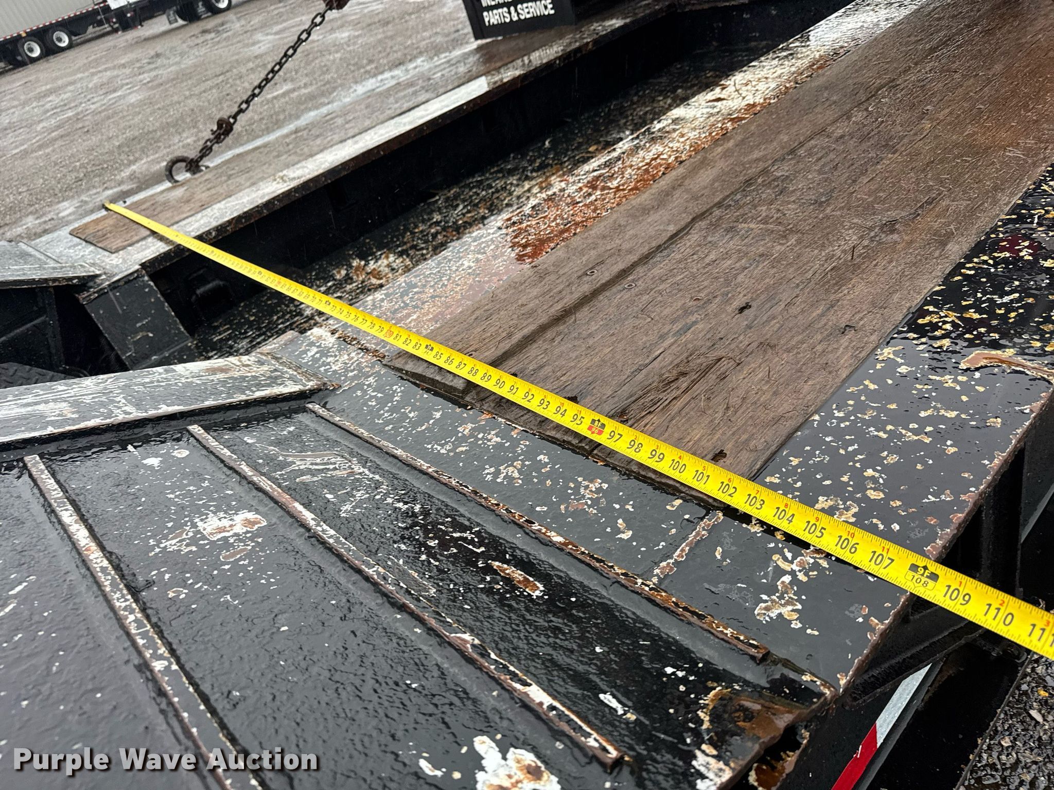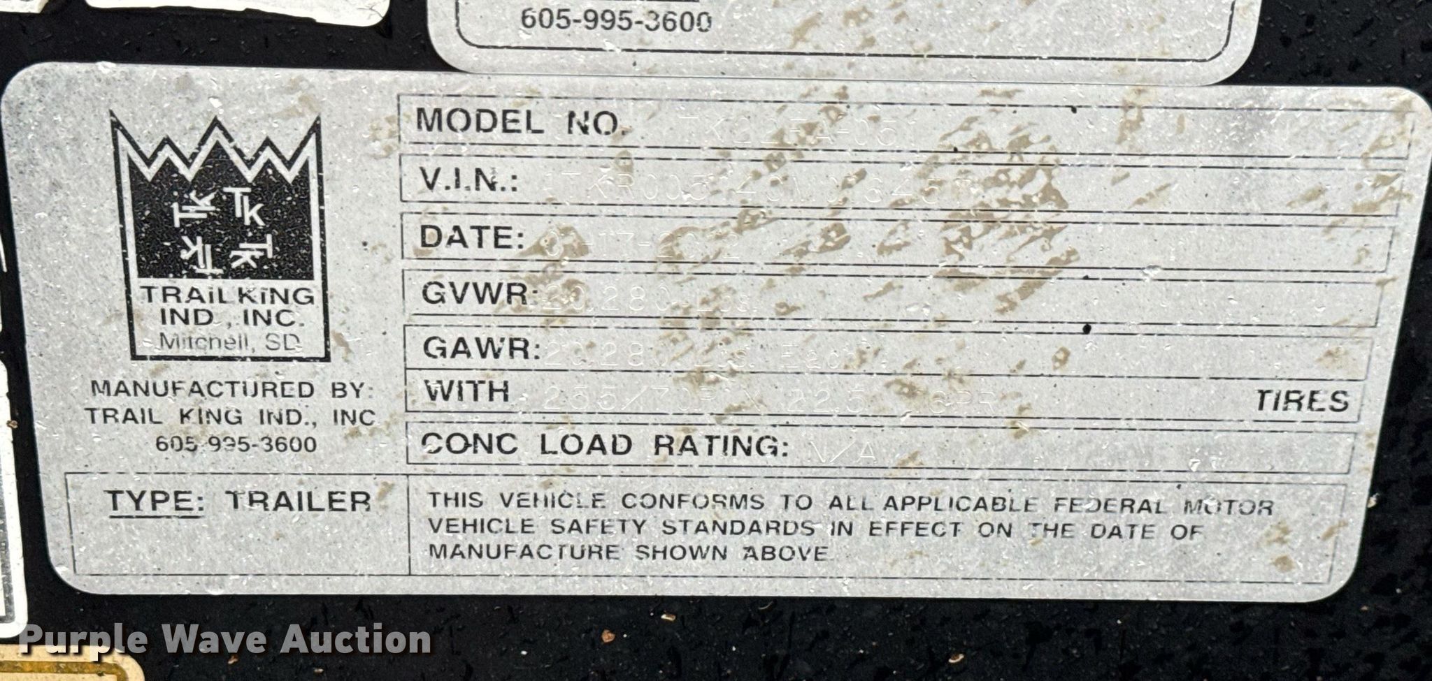 2011 Trail King TK110HDG-533 lowboy equipment trailer. VIN: 1TKJ05330BM033124. Dimensions Overall: 53' L x 108" W, Deck: 25' L x 108" W, Rear deck length: 11' 8". Features Deck type: Wood, Outriggers: Swing-out, Neck type: Detachable, Self-contained hydraulics. Chassis Suspension: Air, Brakes: Air, Axles: Triple, GVWR: 133,380 lbs, GAWR: 20,280 lbs. Tires Aluminum wheels, Size: 255/70R22.5. 2012 Trail King TK22FA-051 stinger VIN: 1TKR00514CMC16457. Dimensions Overall: 14' L x 108" W. Chassis Suspension: Air, Brakes: Air, GVWR: 20,280 lbs. Tires Aluminum wheels, Size: 255/70R22.5. Oklahoma title. Seller is an Oklahoma licensed motor vehicle dealer. Title will be assigned and distributed by the dealer. Please contact the seller for distribution questions. Title distribution may be delayed up to 30 days from verification of funds. 15107 North 137th East Avenue. Collinsville, OK 74021