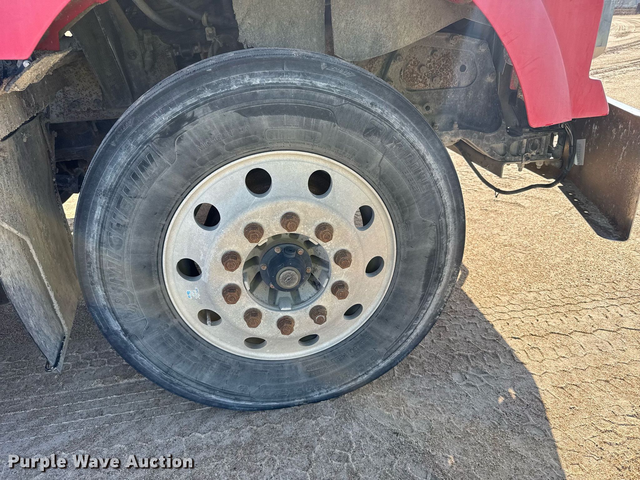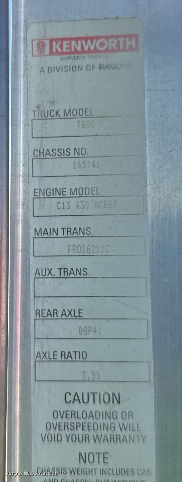 2007 Kenworth T800 semi truck. Miles: 1,143,681 on odometer, Hours: 30,300 on meter, VIN: 1XKDDU8XX7J165741. Engine Caterpillar C13 Acert, Displacement: 12.0L, Cylinders: 6, Fuel type: Diesel. Transmission Eaton Fuller, Manual, Speed: 10. Chassis Axles: Tandem, Differential lock: Inter-axle, Suspension: Air Dump valves, Brakes: Air, PTO, Wet kit, GVWR: 46,000 lbs. Interior AC, Heat, Heated mirrors, Power locks, Cruise control. Features Deck plate: Aluminum, Fifth wheel type: Air operated, Sliding, Fuel tank: Dual. Tires Front: 275/80R22.5, Rear: 455/55R22.5. Kansas title. Title distribution may be delayed up to 14 days from verification of funds. Midwest Concrete Materials, Inc.. Manhattan, KS 66502