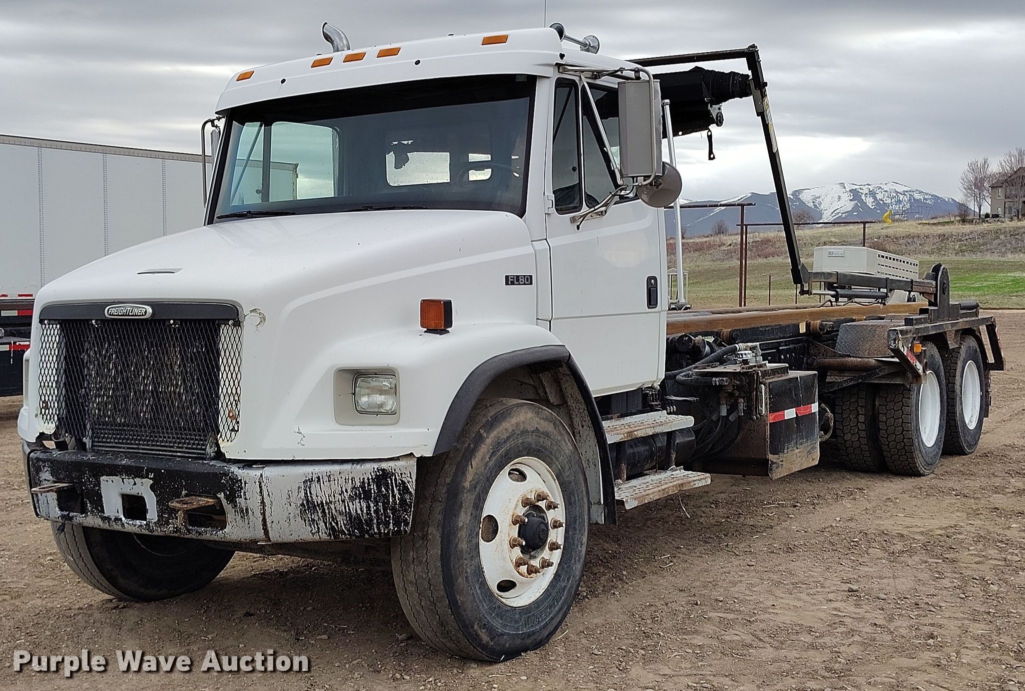 Purple Wave is selling a used Rollback or Tow Truck in Utah. This item is a 2000 Freightliner FL80 roll-off container truck with the following: Miles: 40,000 on odometer, Actual miles unknown, Hours: 20,296 on meter, VIN: 1FVXJJBB3YHF78162