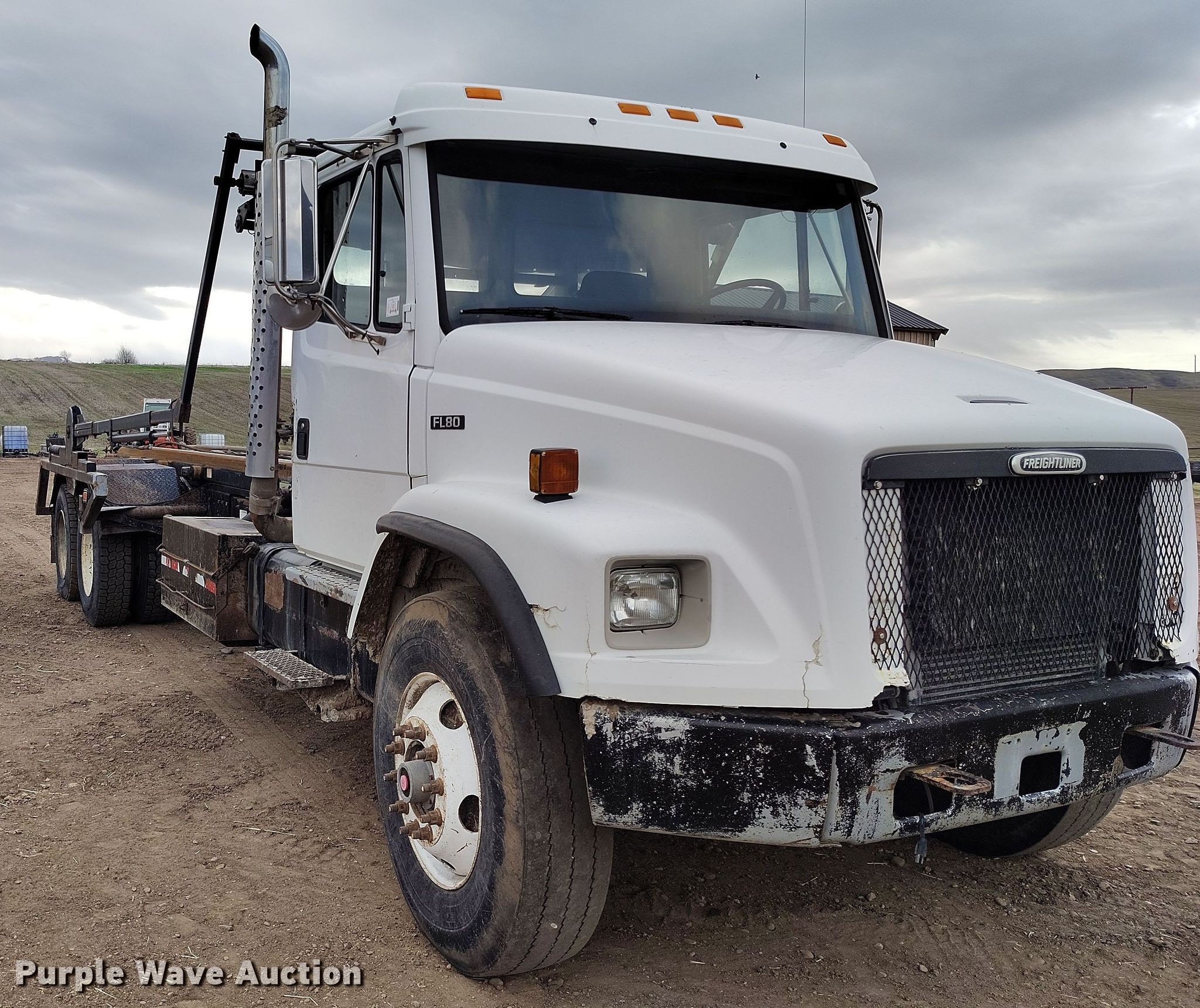 This 2000 Freightliner FL80 roll-off container truck will sell to the highest bidder regardless of price.