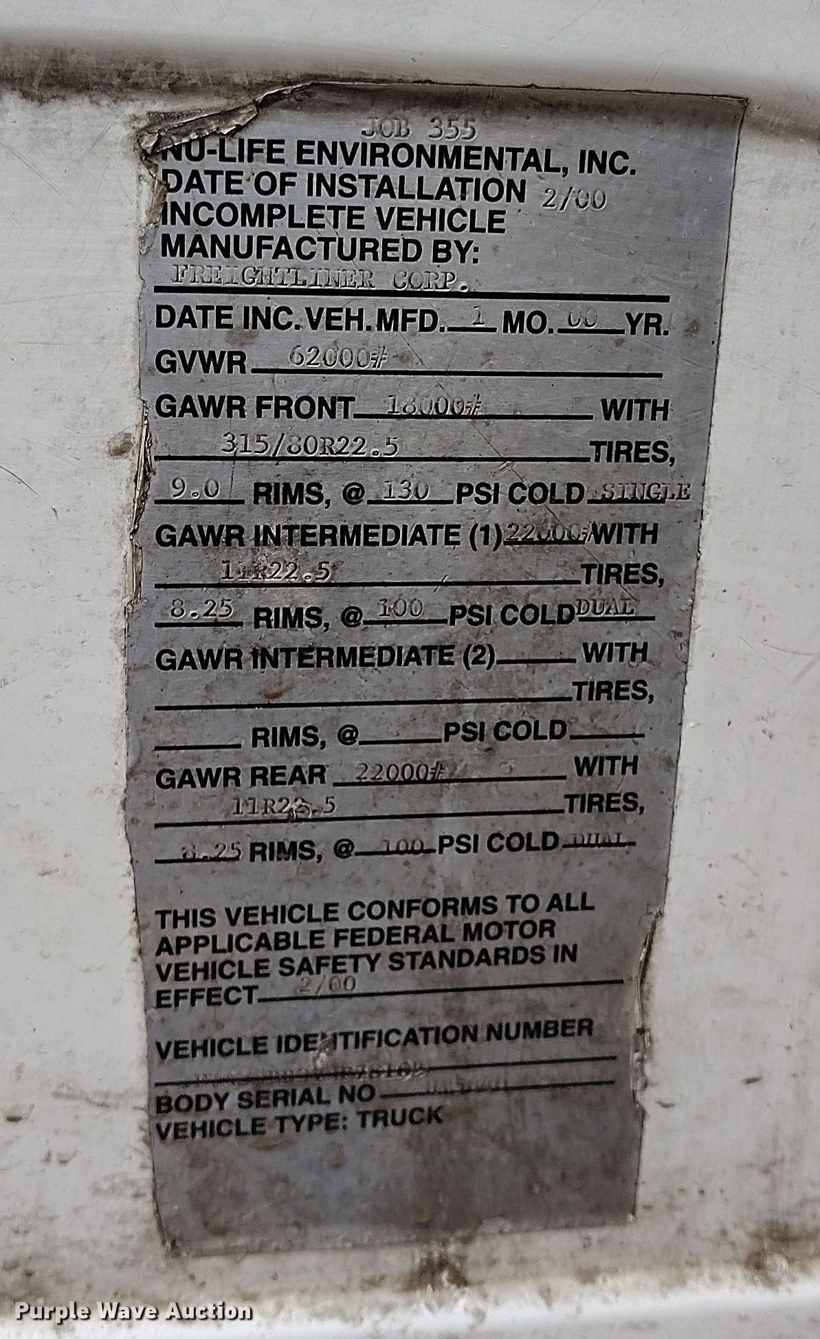 - GVWR: 62,000 lbs