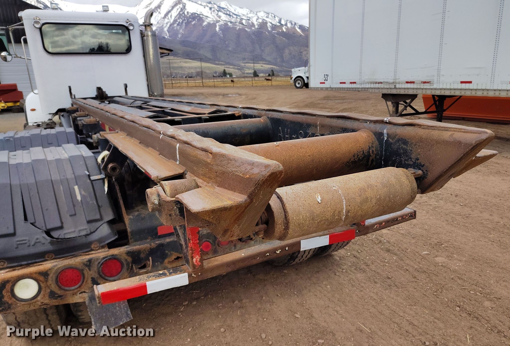 2005 Peterbilt 335 roll-off container truck. Miles: 541,848 on odometer, Hours: 23,987 on meter, VIN: 2NPLLZ0X25M858904, Unit #: 3. Engine Cummins ISC, Displacement: 8.3L, Cylinders: 6, Fuel type: Diesel, HP: 315. Transmission Eaton Fuller, Manual, Speed: 10. Chassis Axles: Tandem, Suspension: Spring over walking beam, Brakes: Air, PTO, GVWR: 64,000 lbs. Interior AC, Heat, Heated mirrors, Cruise control. Features Roll-off bed Galbreath, 23' 2" L x 96" W, Ram: Dual. Tires Size: 315/80R22.5. Notes Windshield chipped or cracked, Winch cable needs replaced. Utah title. Title distribution may be delayed up to 14 days from verification of funds. Clean Slate Services LLC. Wellsville, UT 84339