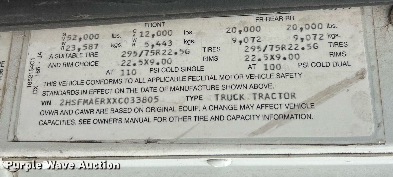 - VIN: 2HSFMAERXXC033805