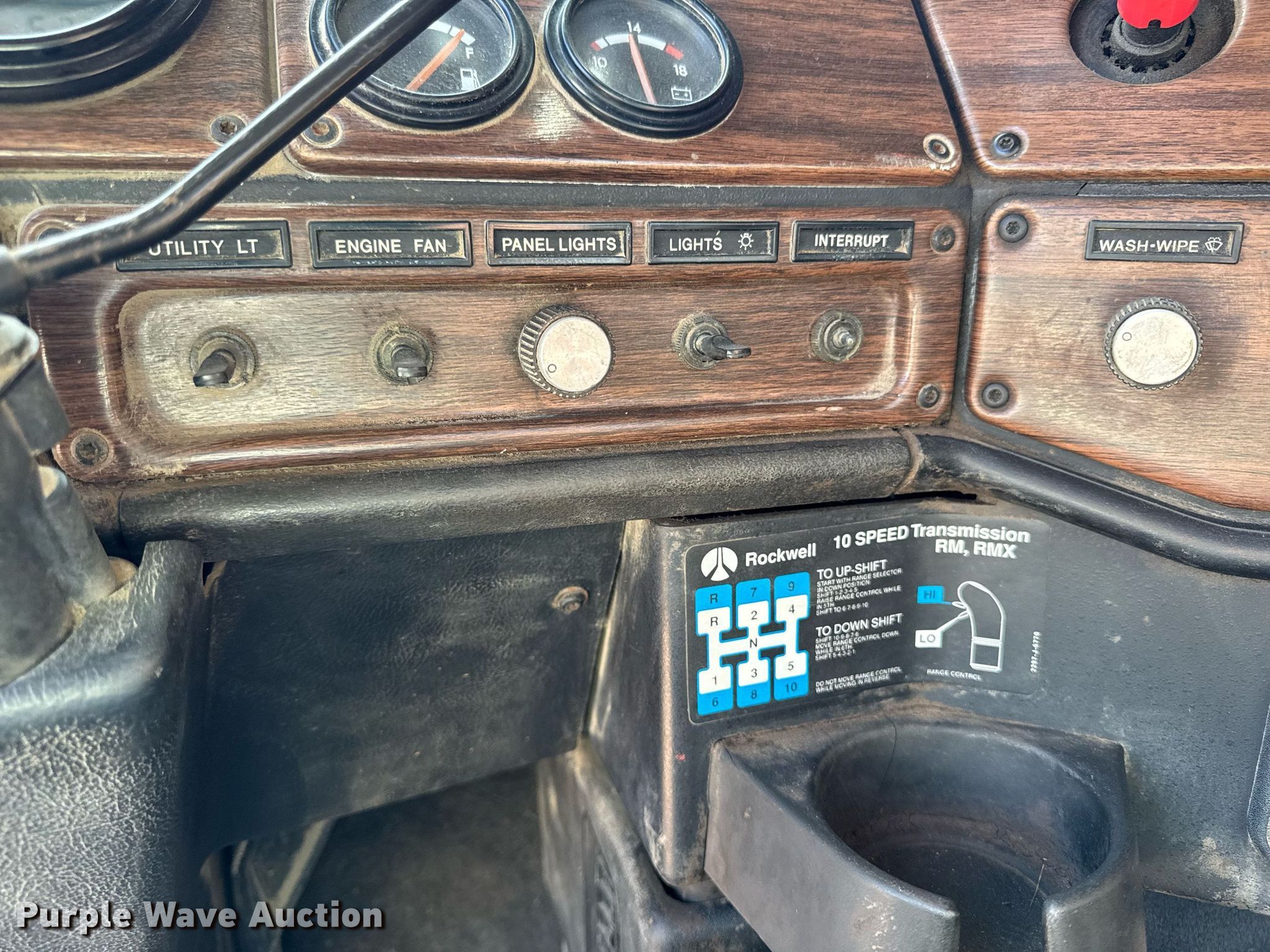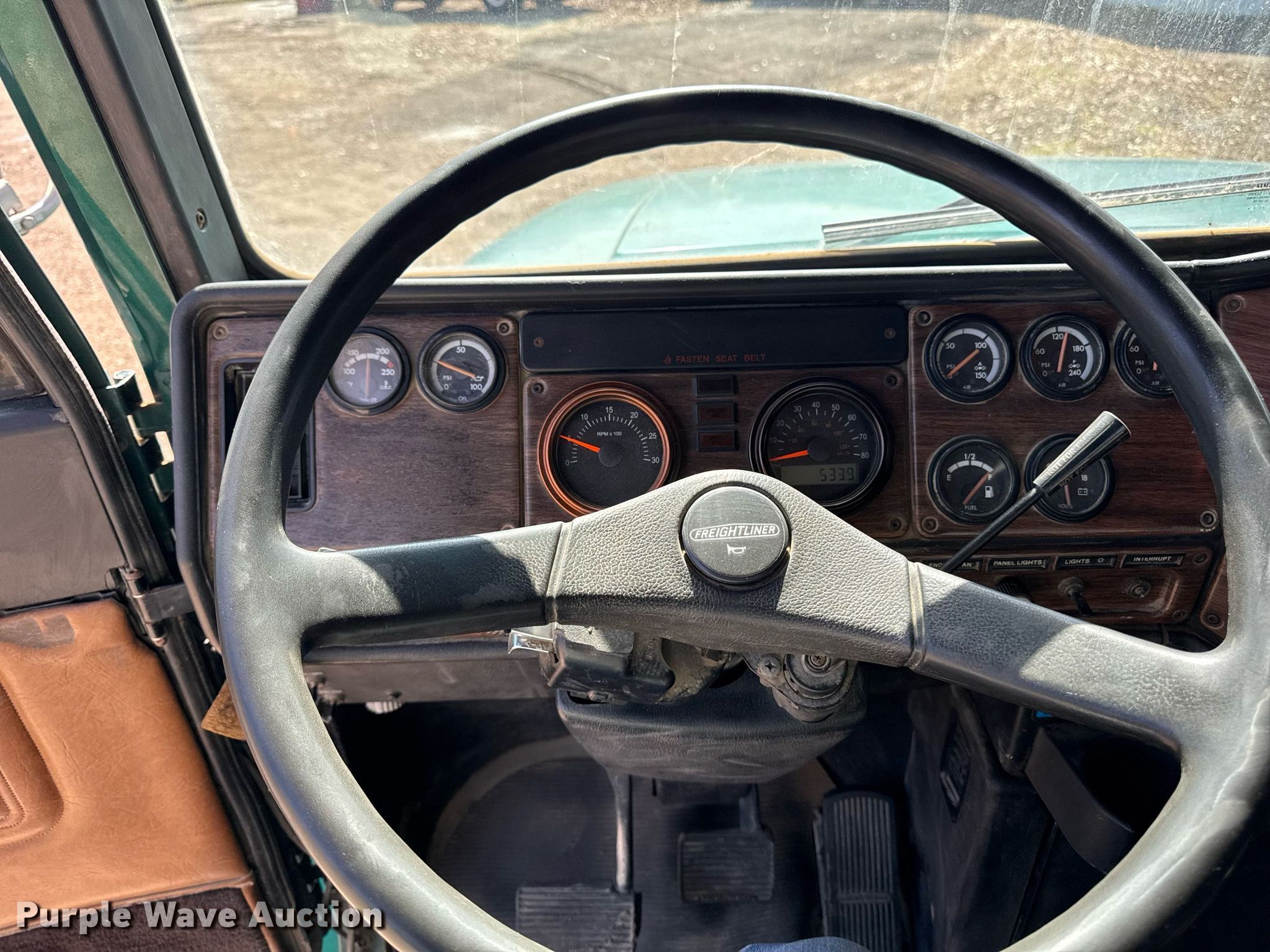 1996 Freightliner Conventional semi truck. Miles: 534 on odometer Actual miles unknown, VIN: 1FUY3MDB4TP546723, Unit #: B93. Engine Cummins M-11, Displacement: 10.8L, Cylinders: 6, Fuel type: Diesel, HP: 336, Engine brake. Transmission Rockwell, Manual, Speed: 10. Chassis Axles: Tandem, Differential lock: Inter-axle, Suspension: Air, Brakes: Air, PTO, Wet kit, Truck chassis: 15' 3", GVWR: 52,000 lbs FAWR: 12,000 lbs, IAWR: 20,000 lbs, RAWR: 20,000 lbs. Interior AC, Heat, Heated mirrors, Cruise control, Air ride cab. Features Fifth wheel type: Air operated, Sliding, Fuel tank: Dual. Tires Size: 295/75R22.5. Notes Odometer has been replaced, Engine oil leak, Windshield chipped or cracked, Dead battery. Iowa title. Mileage has not been verified. Exempt will be written in the odometer disclosure on the title. Title distribution may be delayed up to 14 days from verification of funds. Benton's Sand & Gravel Inc. Cedar Falls, IA 50613
