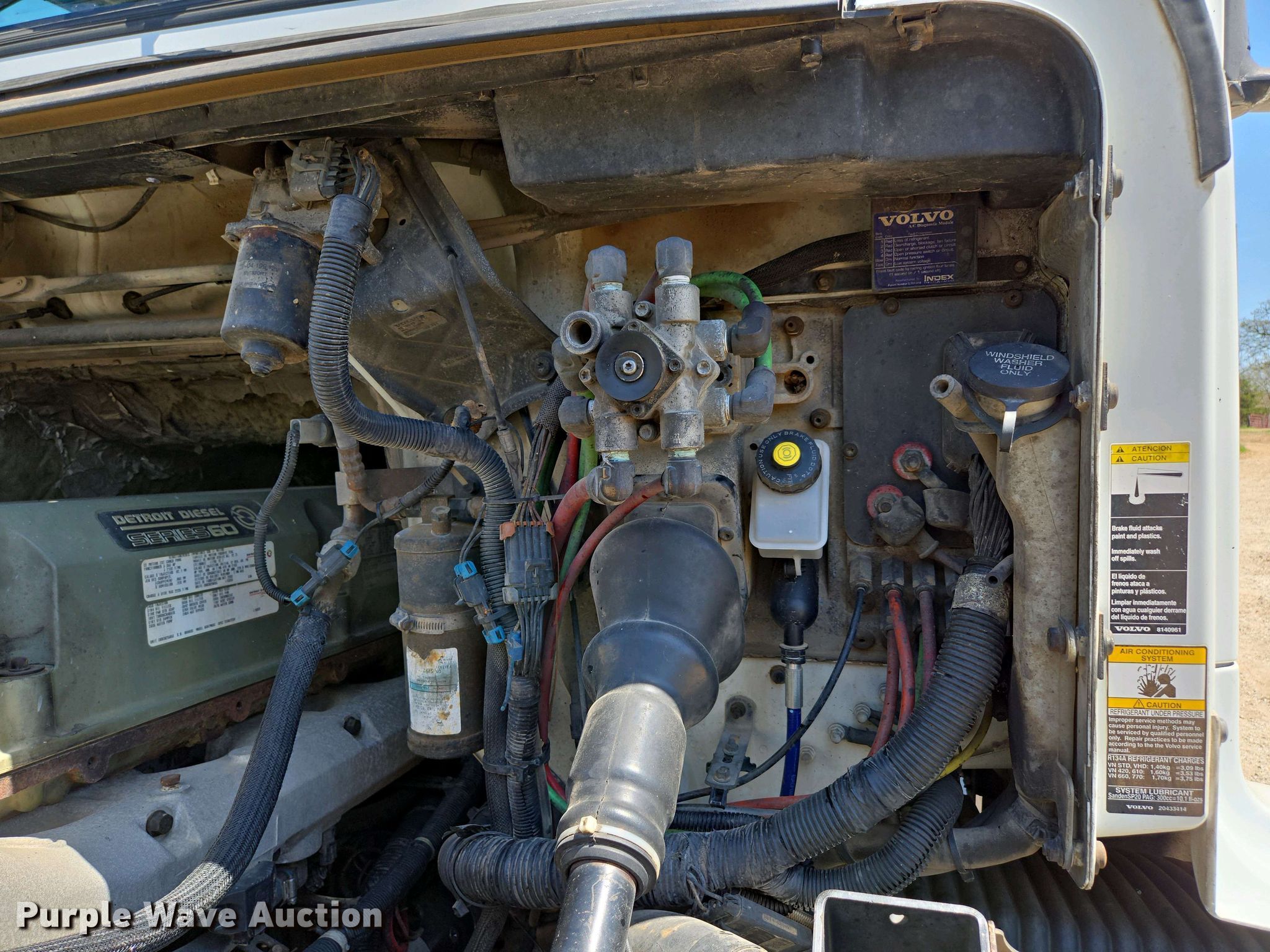 2001 Volvo VNM semi truck. Miles: Unknown, VIN: 4V4MC9RF61N321232. Engine Detroit Diesel Series 60, Serial: 06R0625650, Displacement: 12.7L, Cylinders: 6, Fuel type: Diesel, HP: 470. Transmission Meritor, Manual, Speed: 10. Chassis Axles: Tandem, Differential lock: Inter-axle, Suspension: Air Dump valves, Brakes: Air, GVWR: 50,000 lbs. Interior AC, Heat, Heated mirrors, Power passenger window, Cruise control, Air ride cab. Features Fifth wheel type: Air operated, Sliding, Fuel tank: Dual. Tires Size: 11R22.5. Notes Dash warning indicator: Info, Hood damage, Odometer illumination issues, Overhead storage door hinge issues. Missouri title. Mileage has not been verified. Exempt will be written in the odometer disclosure on the title. Title distribution may be delayed up to 14 days from verification of funds. Mast Excavating. Sarcoxie, MO 64862