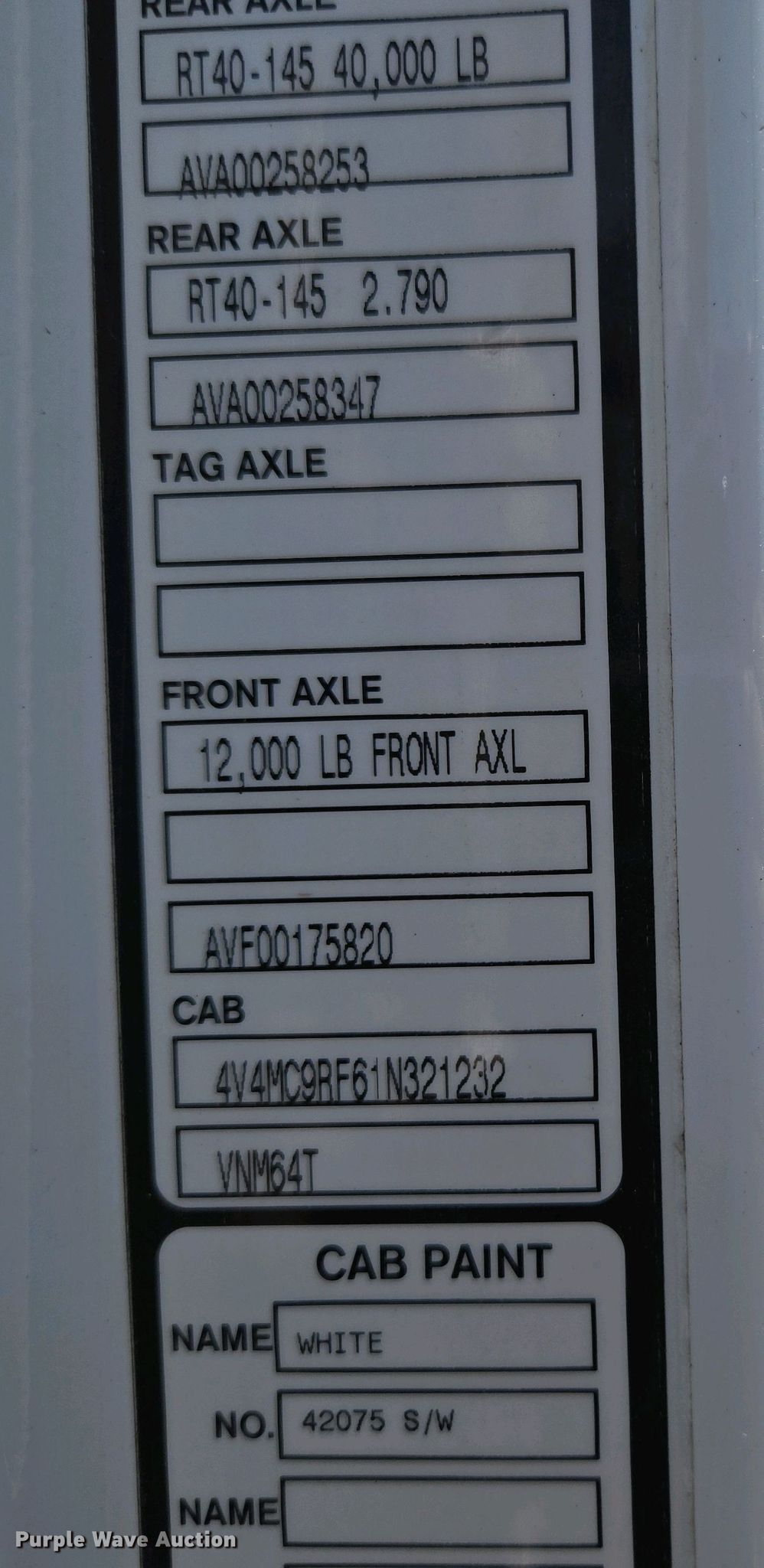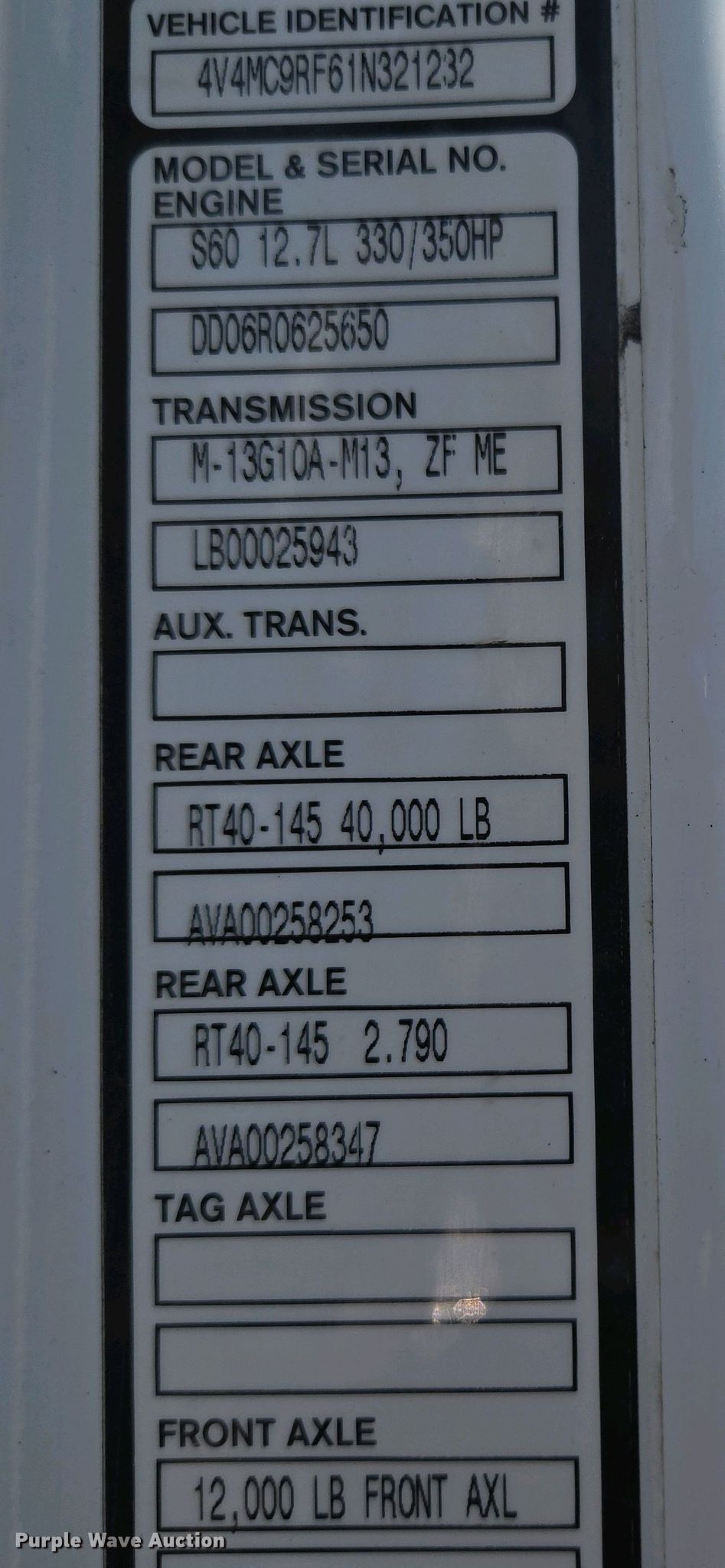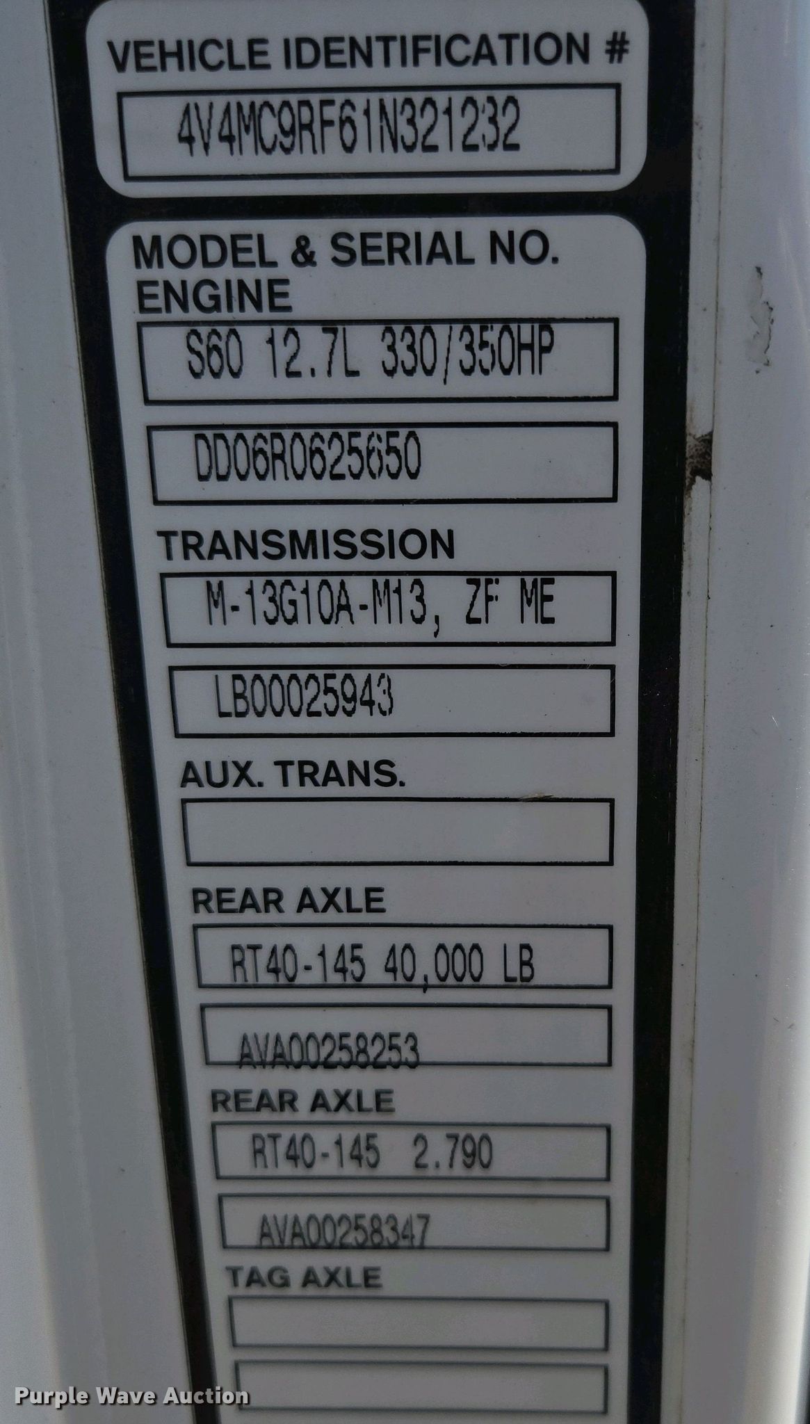 - VIN: 4V4MC9RF61N321232