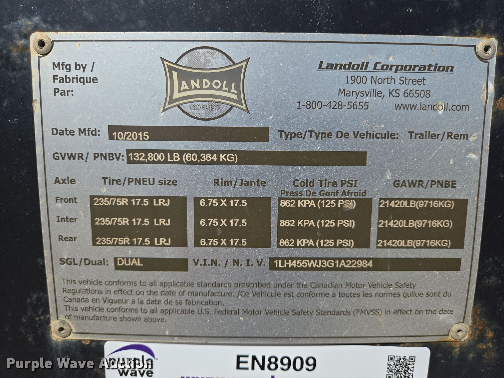 Purple Wave is selling a used Equip. Trailer in Kansas. This item is a 2016 Landoll drop deck equipment trailer with the following: VIN: 1LH455WJ3G1A22984