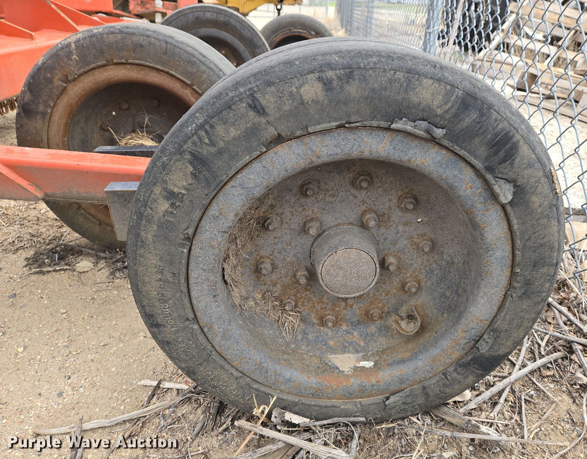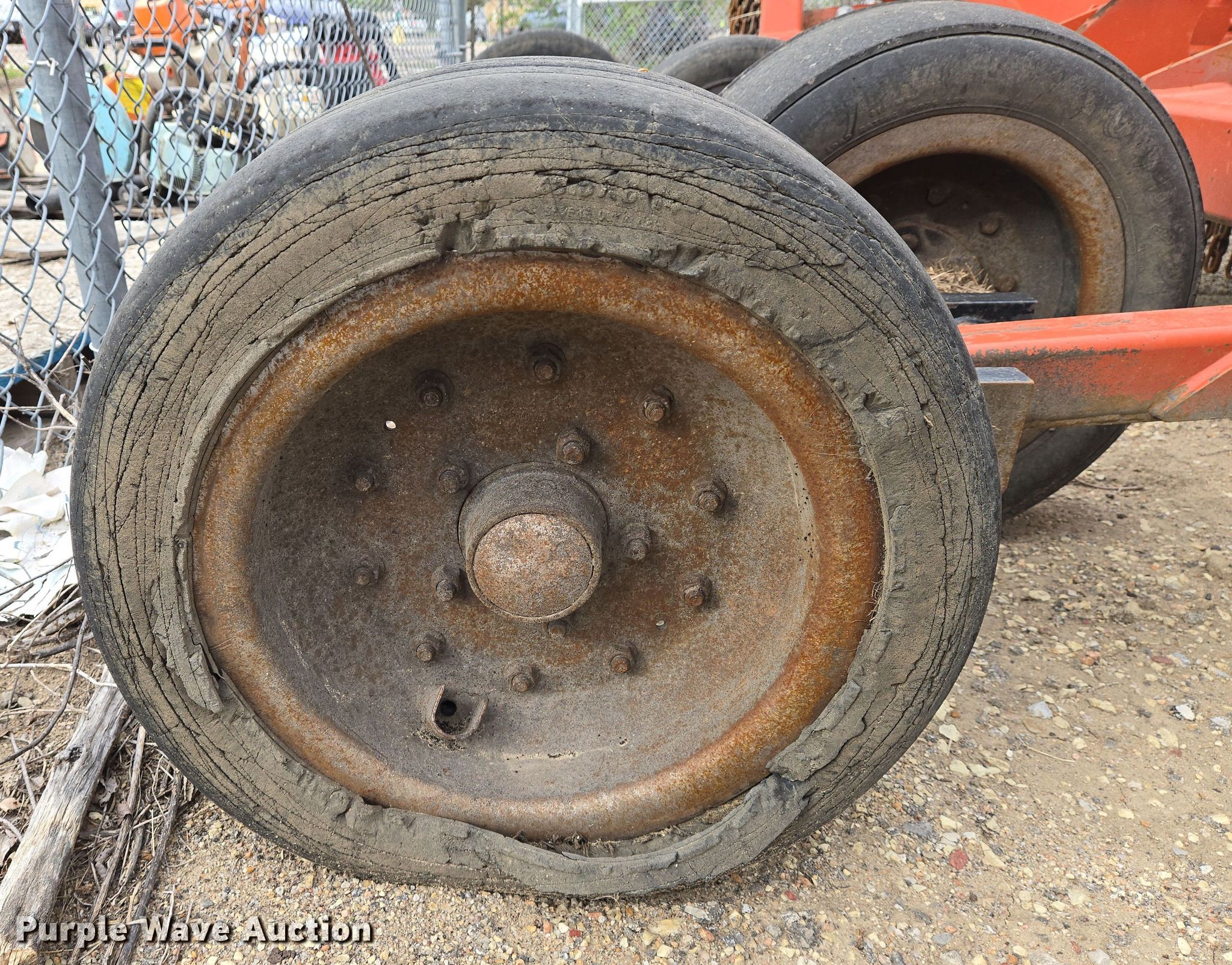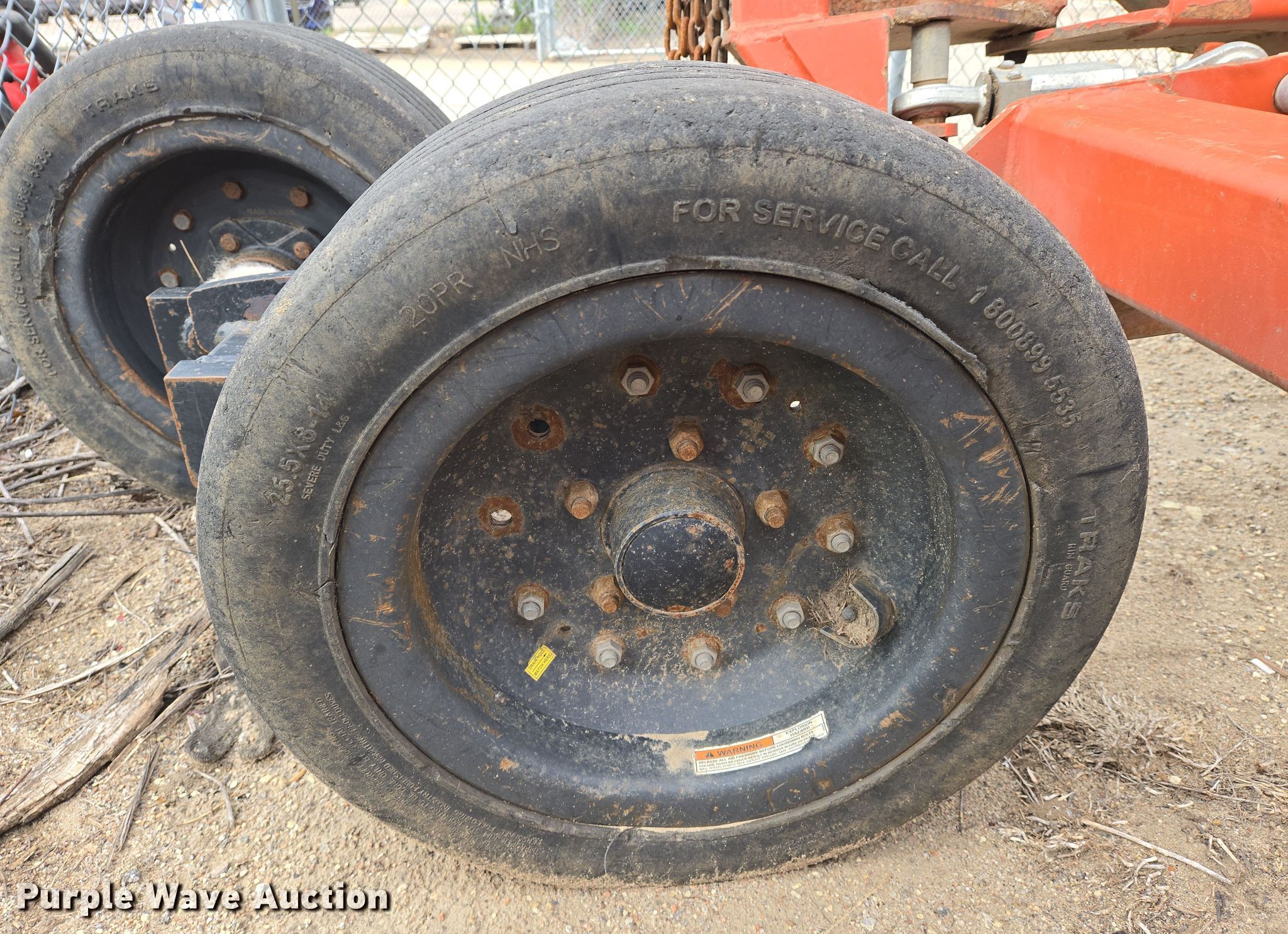 Rhino batwing rotary mower. Unit #: 003670. Features Width: 20', Hydraulic lift, Hydraulic fold, PTO: 540. Tires Size: 25.5X8-14. Notes Frame bent. City of Wichita Central Maintenance Facility. 1801 South McLean Boulevard. Wichita, KS 67213