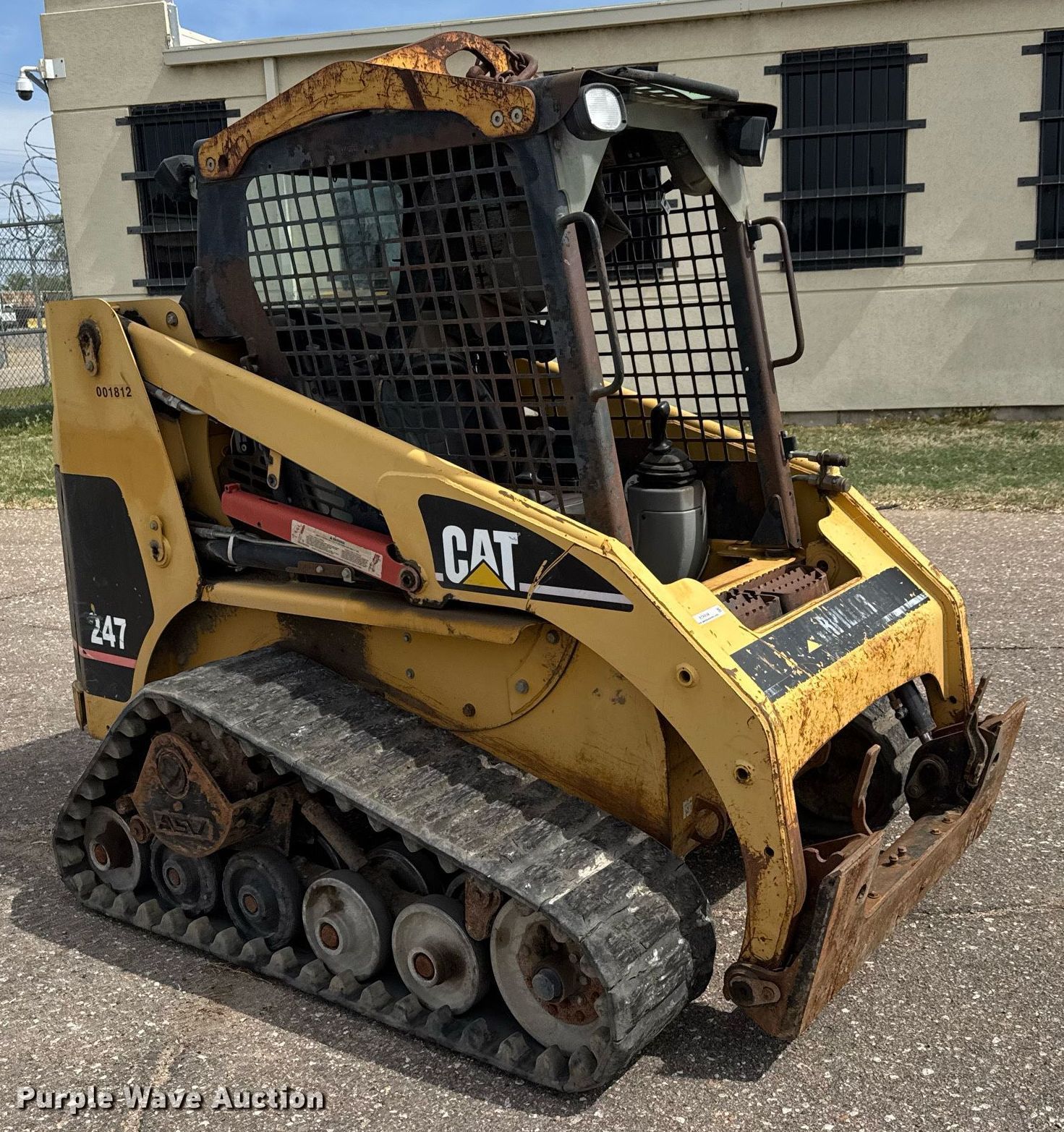 Purple Wave is selling a used Tracked Skid Steer Loader in Kansas. This item is a 2002 Caterpillar 247 tracked skid steer loader with the following: Hours: 2269 on meter, Serial: CAT00247ACML00207, Unit #: 001812
