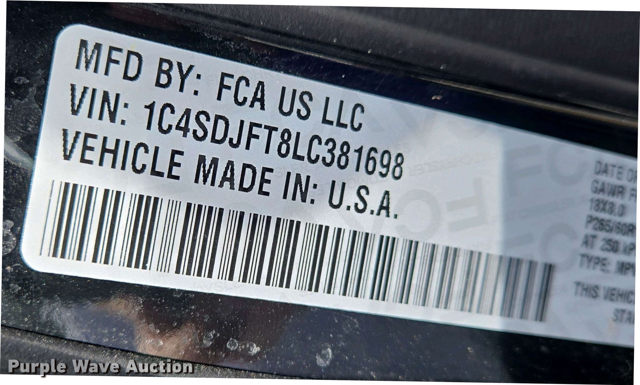 Purple Wave is selling a used Passenger Vehicle in Kansas. This item is a 2020 Dodge Durango SSV SUV with the following: Miles: Unknown, VIN: 1C4SDJFT8LC381698, Unit #: 003923