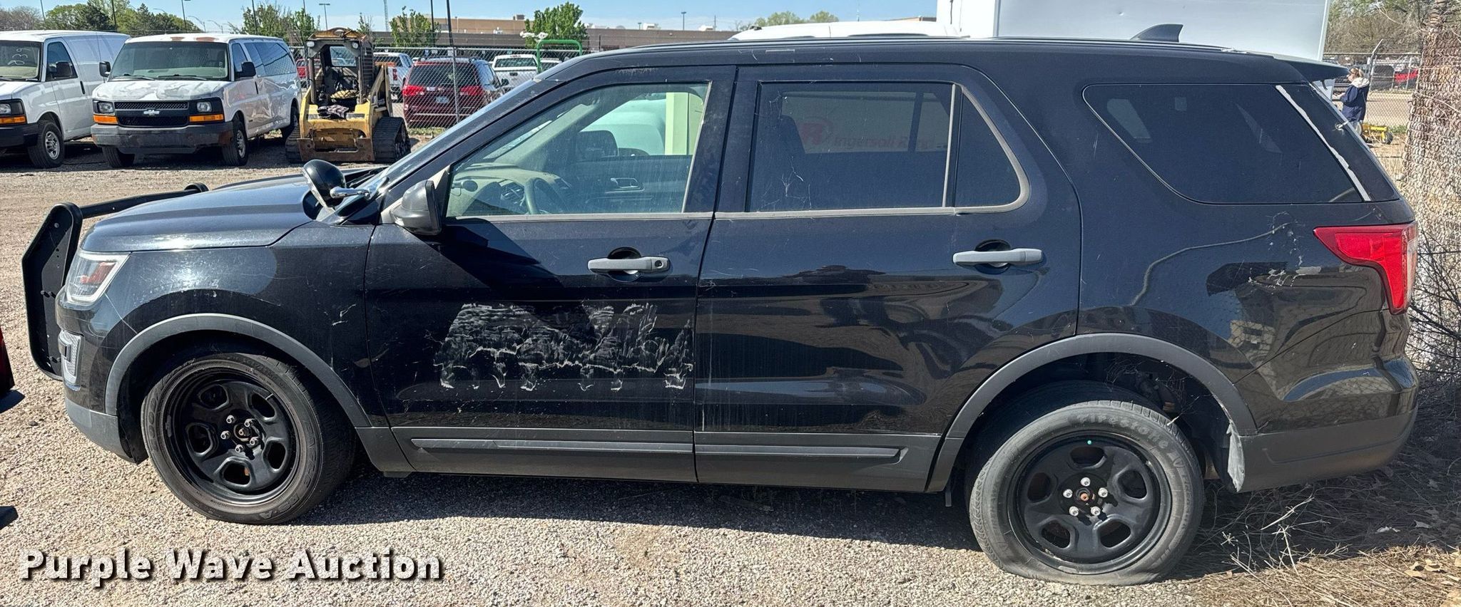 2019 Ford Explorer Police Interceptor SUV. Miles: 93,168 on odometer, VIN: 1FM5K8AR9KGA17431, Unit #: 3679. Engine Displacement: 3.7L V6 DOHC, Cylinders: 6, Fuel type: Gas, HP: 304. Transmission Automatic, All wheel drive. Interior Heat, AC, Power windows, Power locks, Cruise control, Backup camera. Tires Size: P245/55R18. Notes Dash warning indicator: TPMS, ABS, Dead battery, Collision damage, Parts missing, Non-operational unit Unit must be towed or hauled. Kansas title. City of Wichita Central Maintenance Facility. 1801 South McLean Boulevard. Wichita, KS 67213