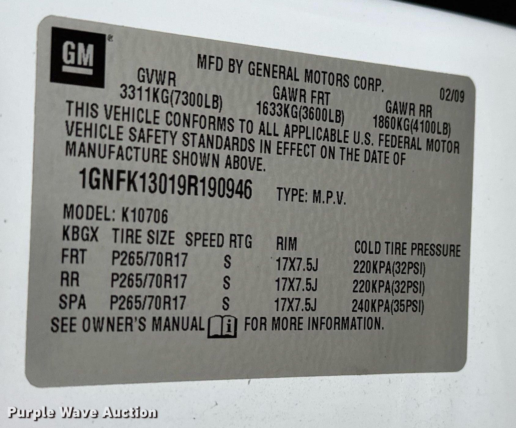 Purple Wave is selling a used Passenger Vehicle in Kansas. This item is a 2009 Chevrolet Tahoe LS SUV with the following: Miles: 122,707 on odometer, VIN: 1GNFK13019R190946, Unit #: 001927