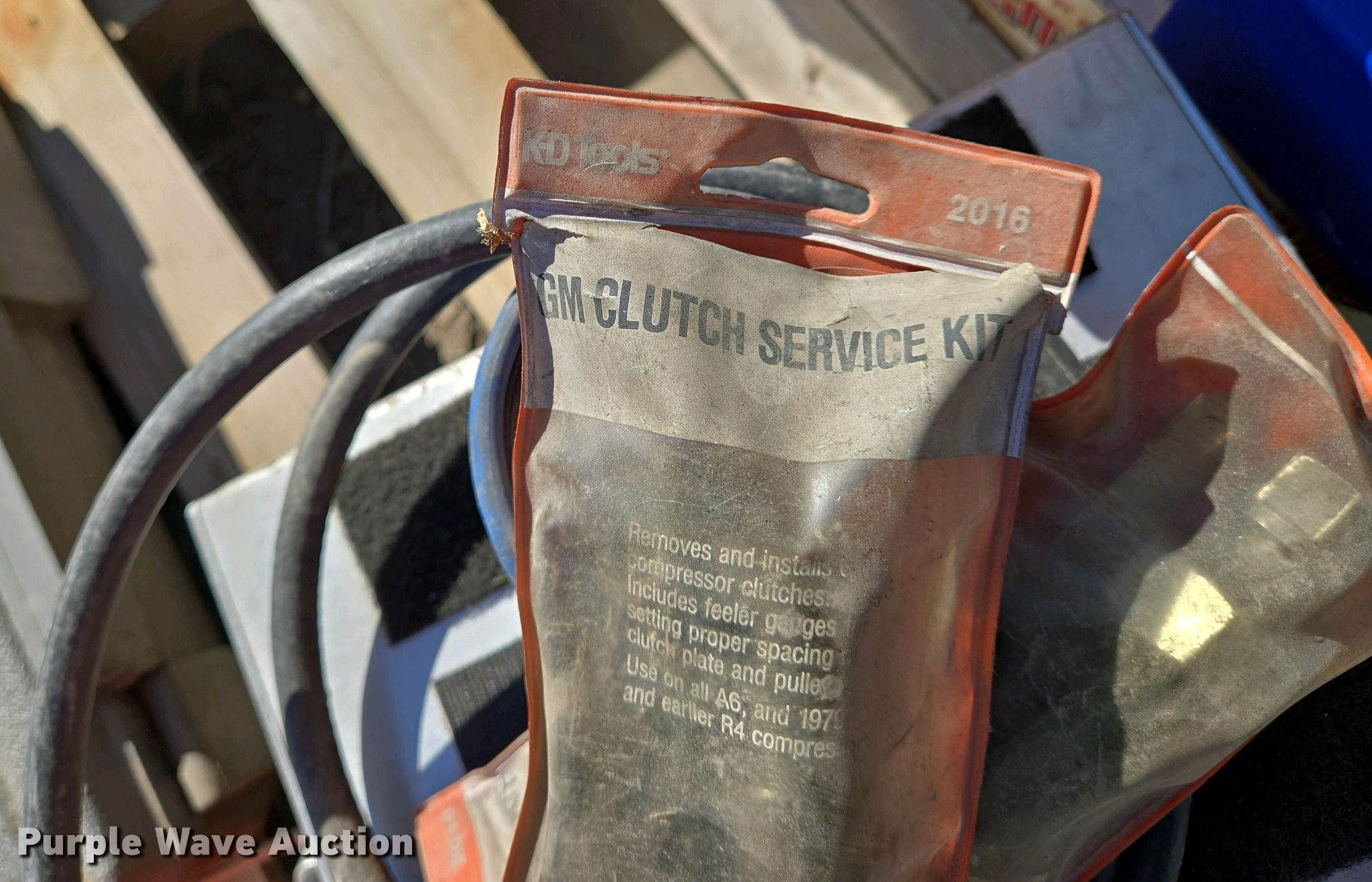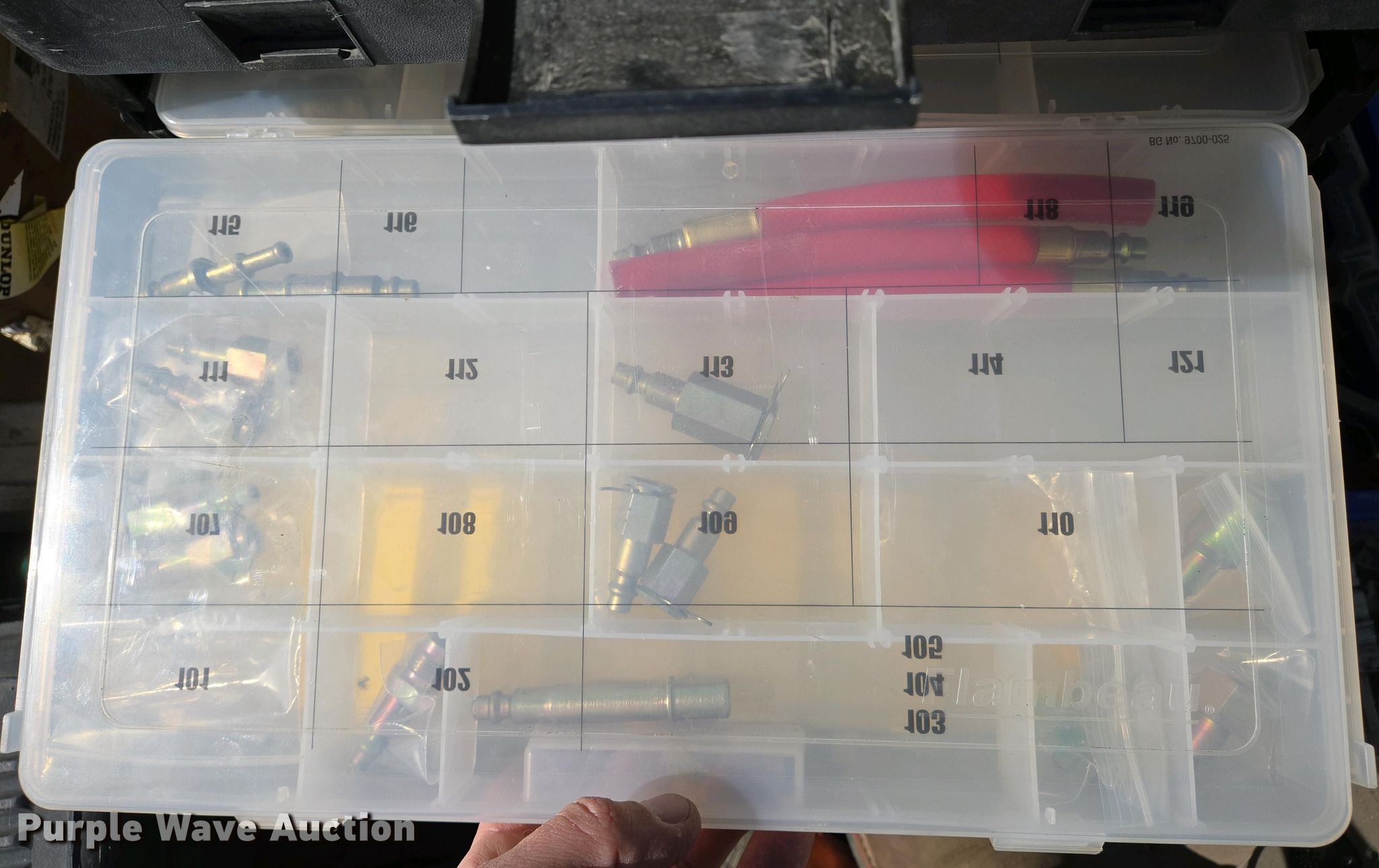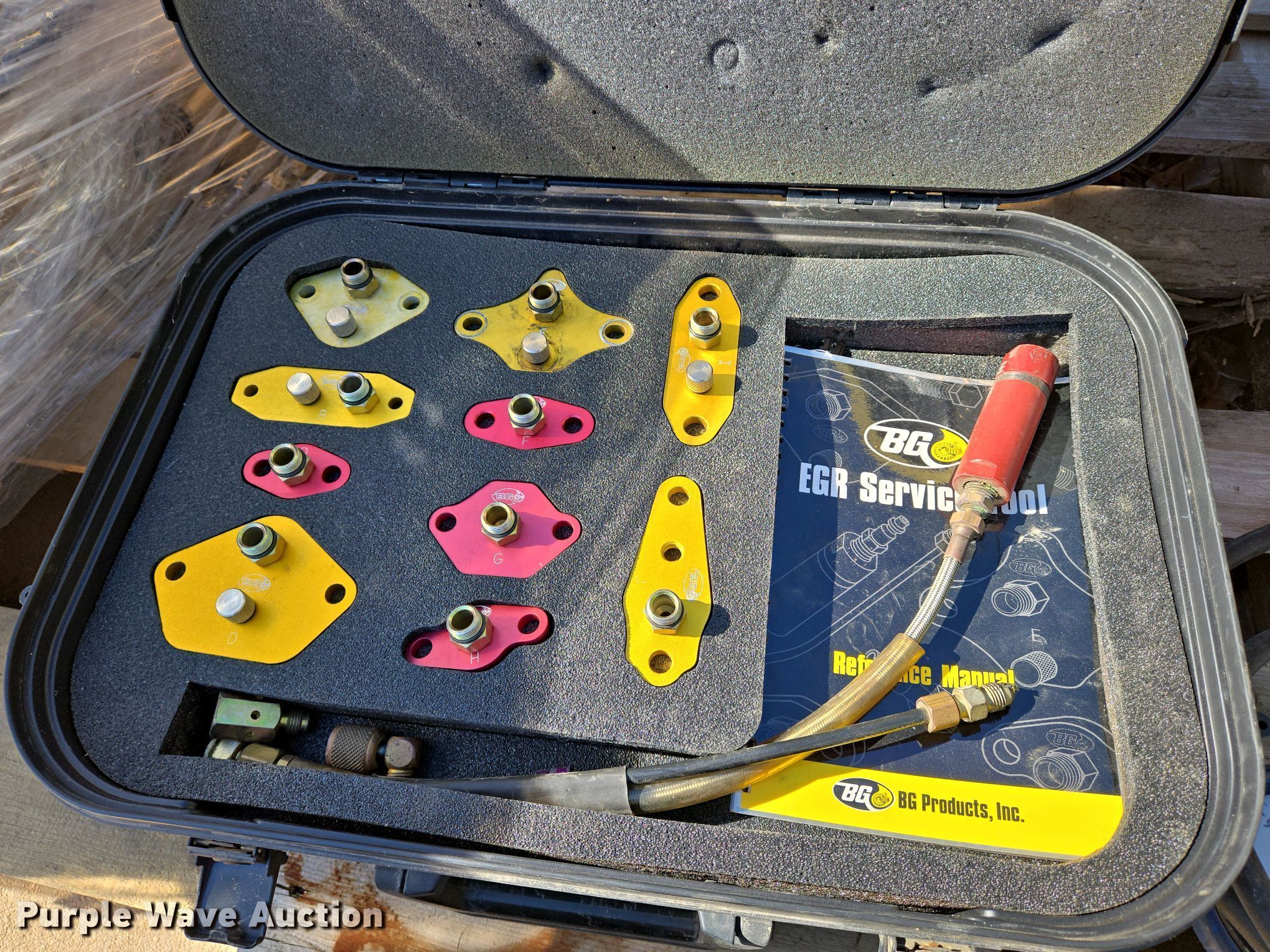 Purple Wave is selling a used Tools in Kansas. This item is a Tools with the following: Automotive parts, Napa Balkamp 700-1625 intelligent break out box, BG EGR service tool, Kent-Moore fuel quality hoses, Air conditioning tool, Various fittings