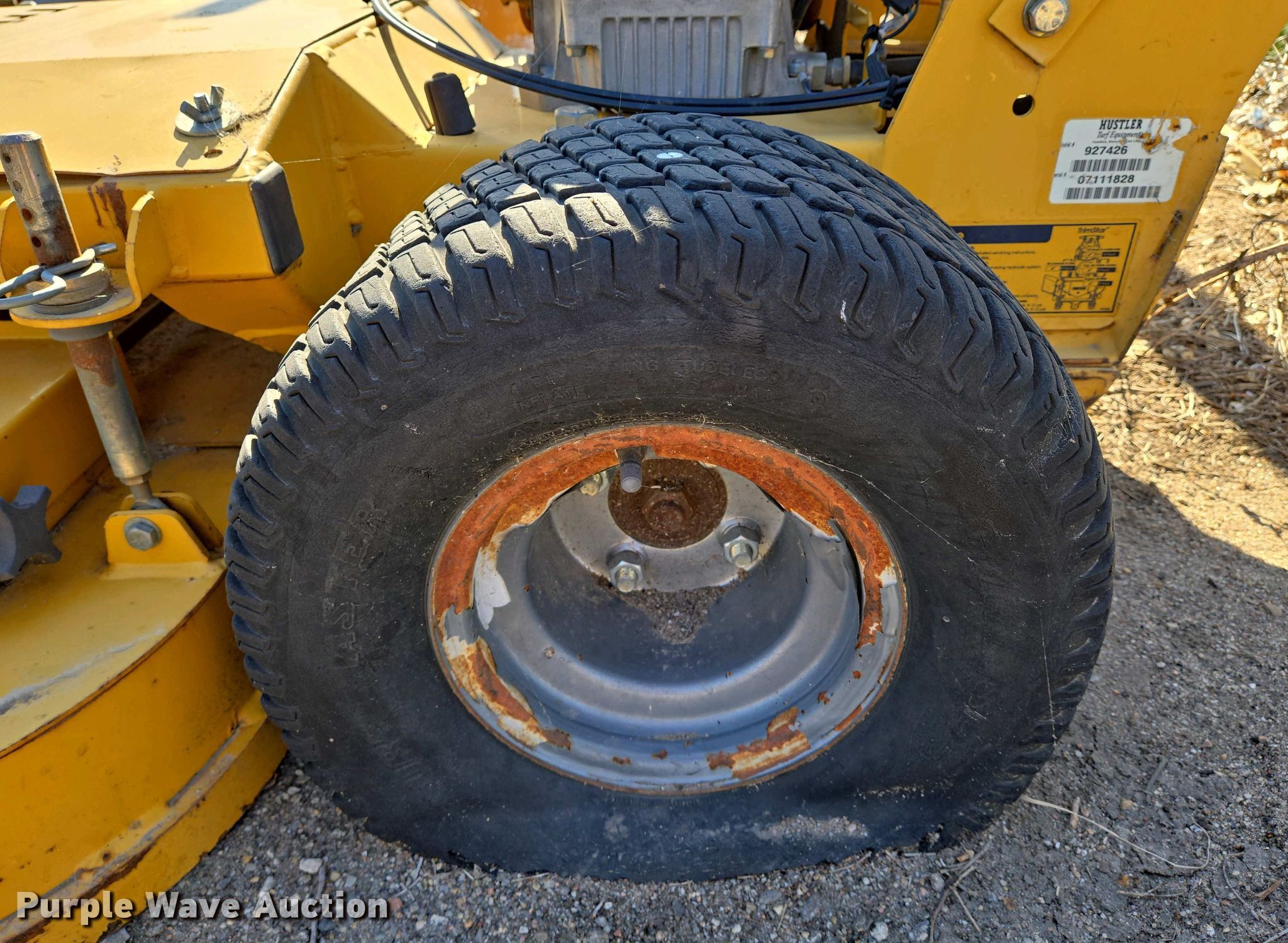 Hustler Trimstar lawn mower. Hours: 75 on meter, Cutting width: 48". Engine Kawasaki, Fuel type: Gas. Transmission Hydrostatic. Tires Front: 11x4.00-3.25, Rear: 18x9.50-8. Notes Flat tires, Non-operational unit. City of Wichita Central Maintenance Facility. 1801 South McLean Boulevard. Wichita, KS 67213