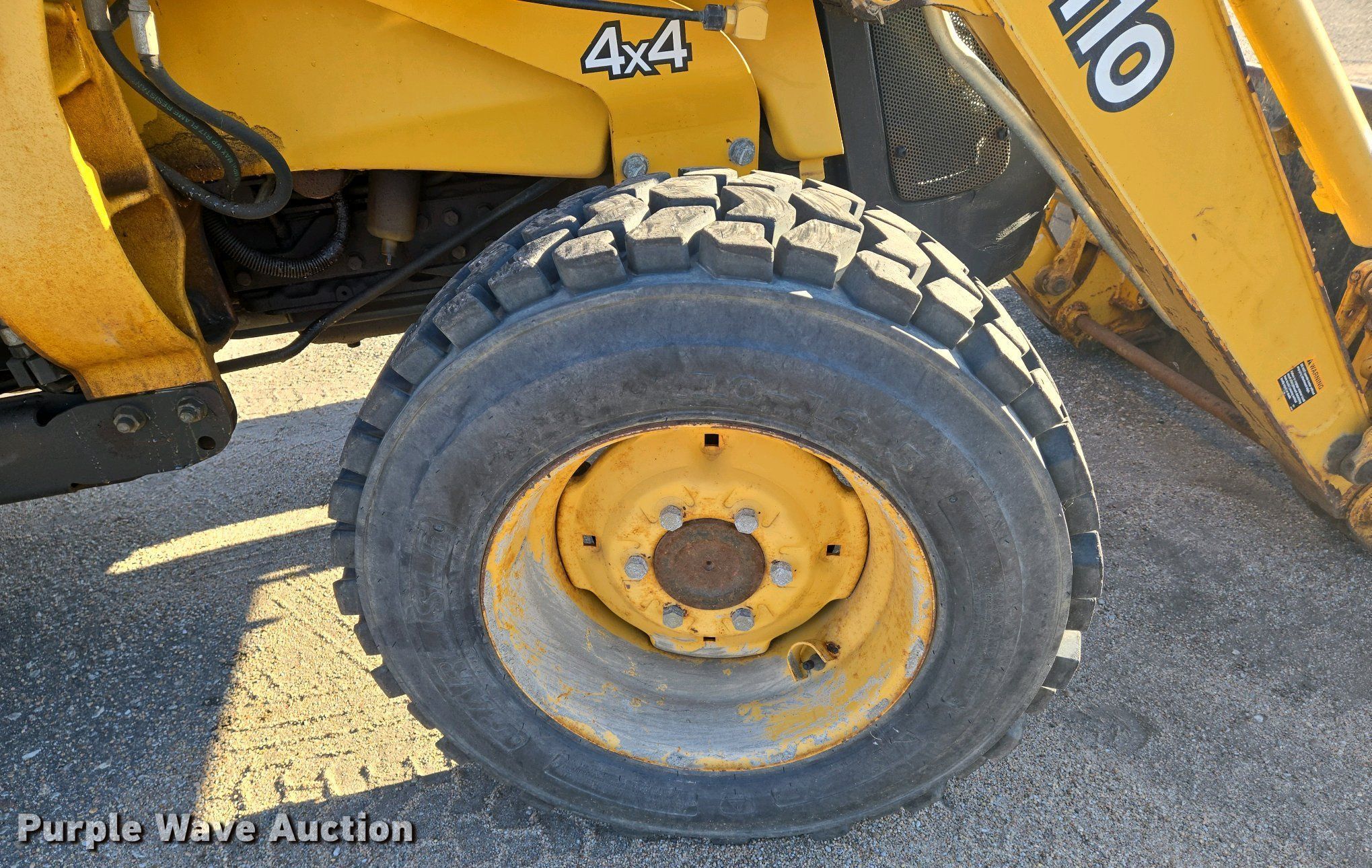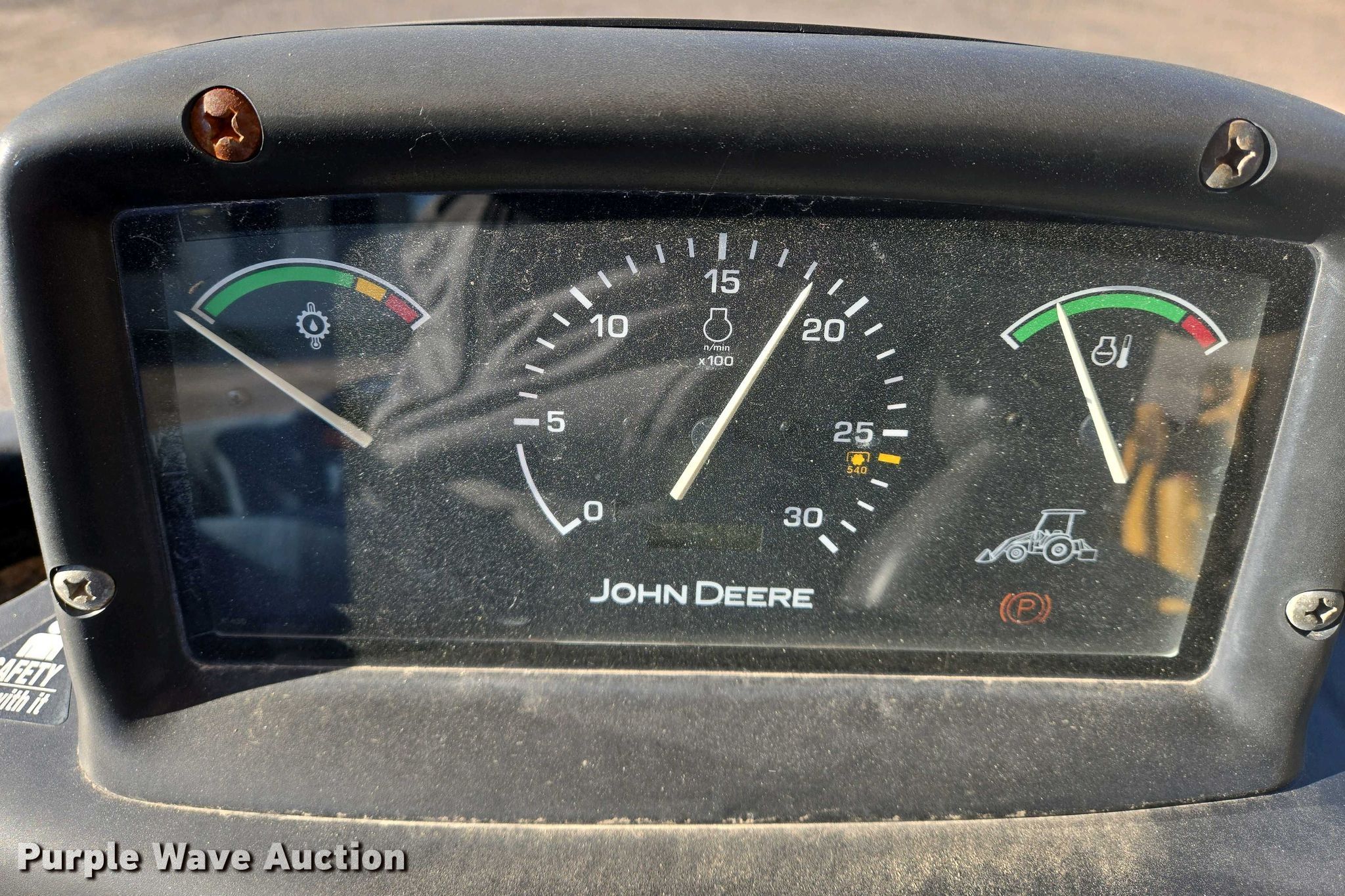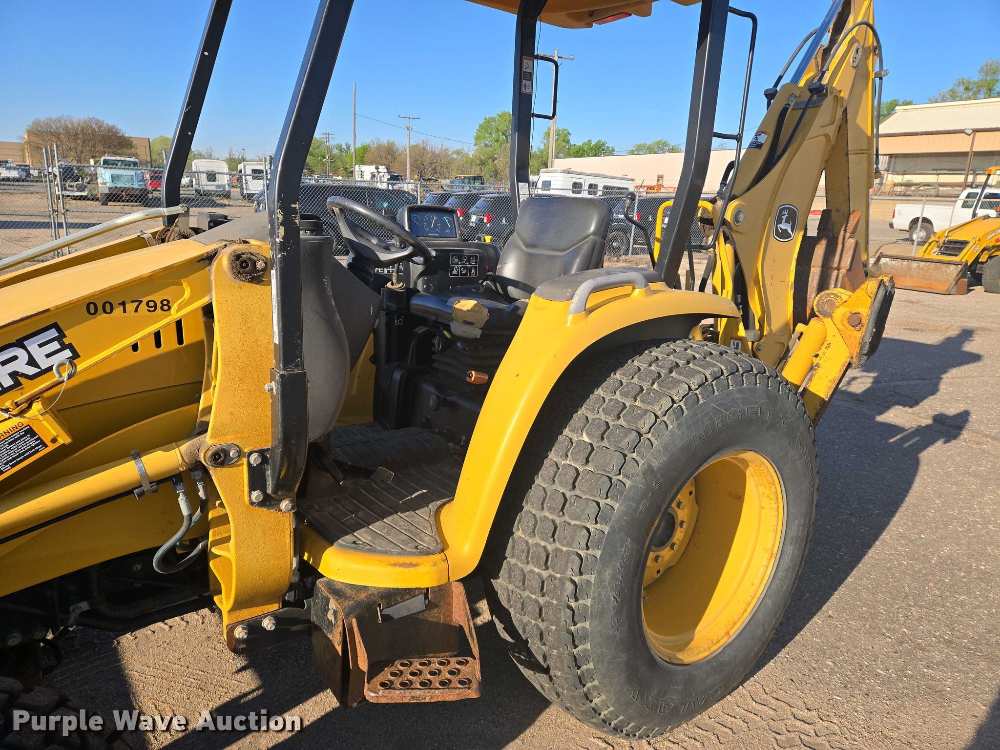 John Deere 110 backhoe. Hours: 1,248 on meter, Unit #: 001798. Engine Cylinders: 3, Fuel type: Diesel. Transmission Hydrostatic. Chassis Four wheel drive. Operators station OROPS, Backhoe controls: Wobble stick / two stick. Features Loader Bucket Width: 72", Cutting edge: Bolt-on, Backhoe Bucket Width: 18", Teeth: 4.. Tires Front: 10-16.5, Rear: 17.5L-24. City of Wichita Central Maintenance Facility. 1801 South McLean Boulevard. Wichita, KS 67213