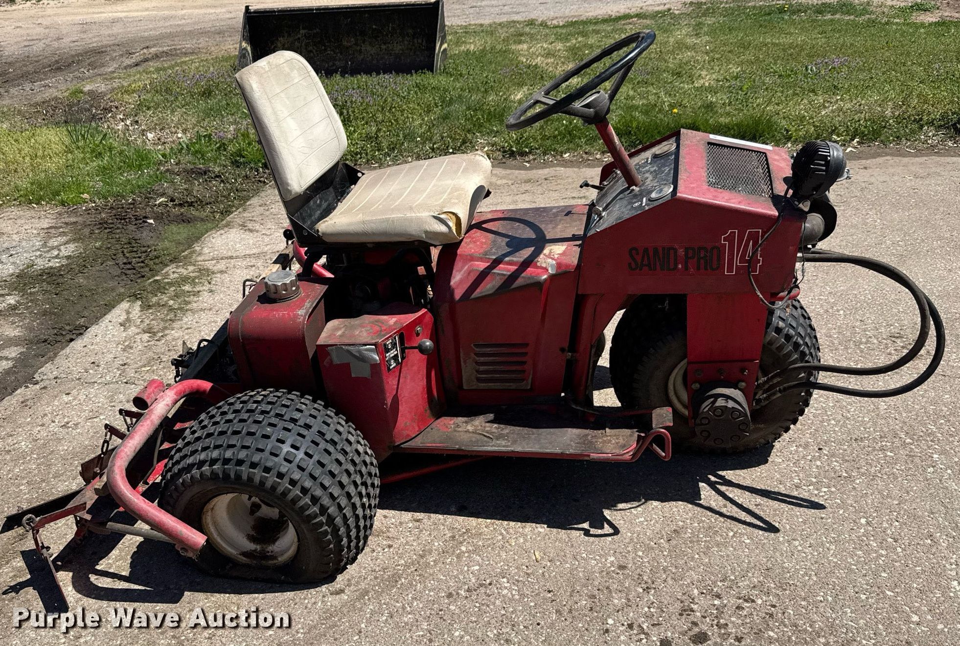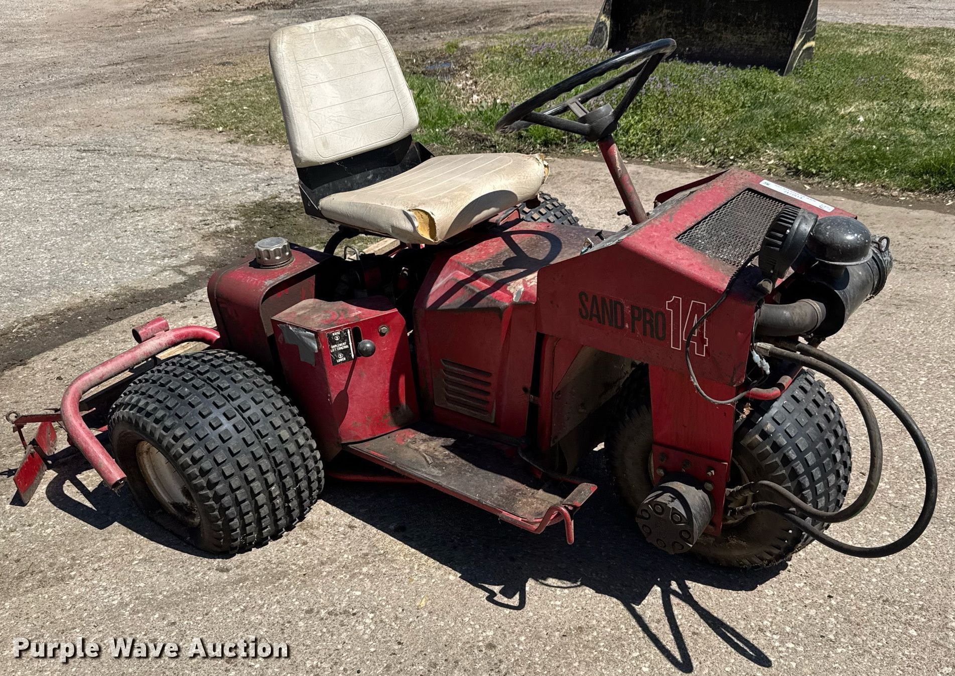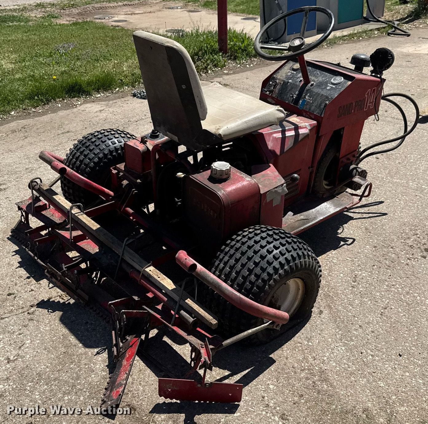 Purple Wave is selling a used Lawn and Garden in Kansas. This item is a Toro Sand Pro 14 bunker rake with the following: Hours: Unknown, Serial: 20349