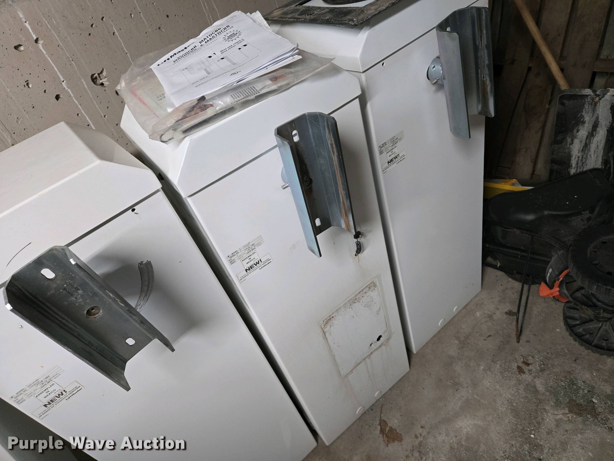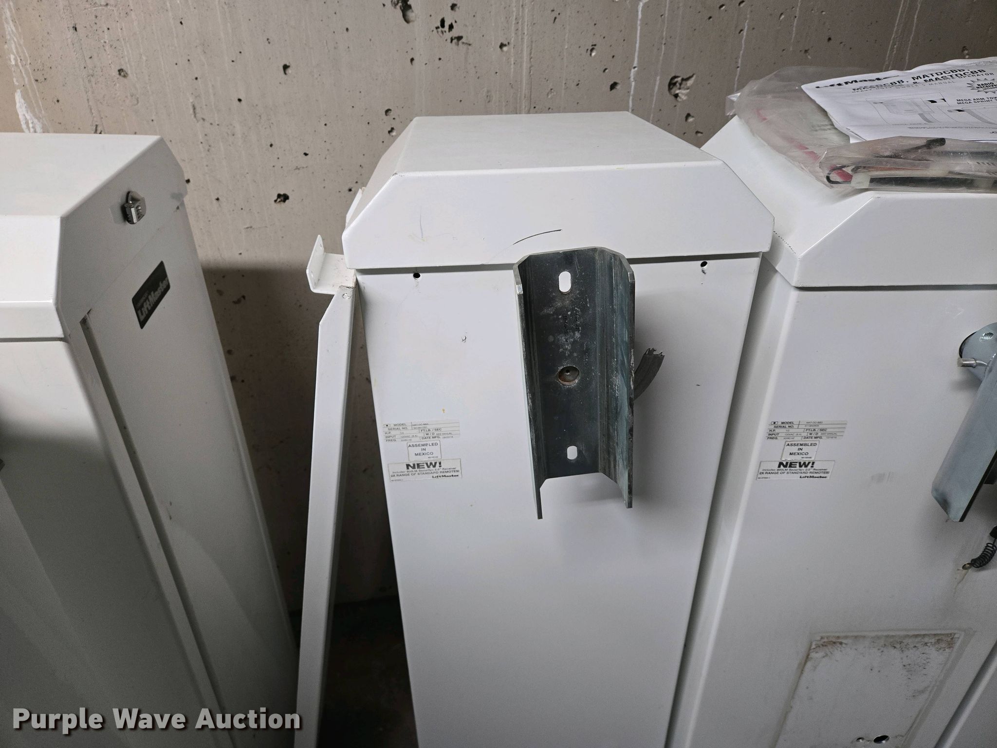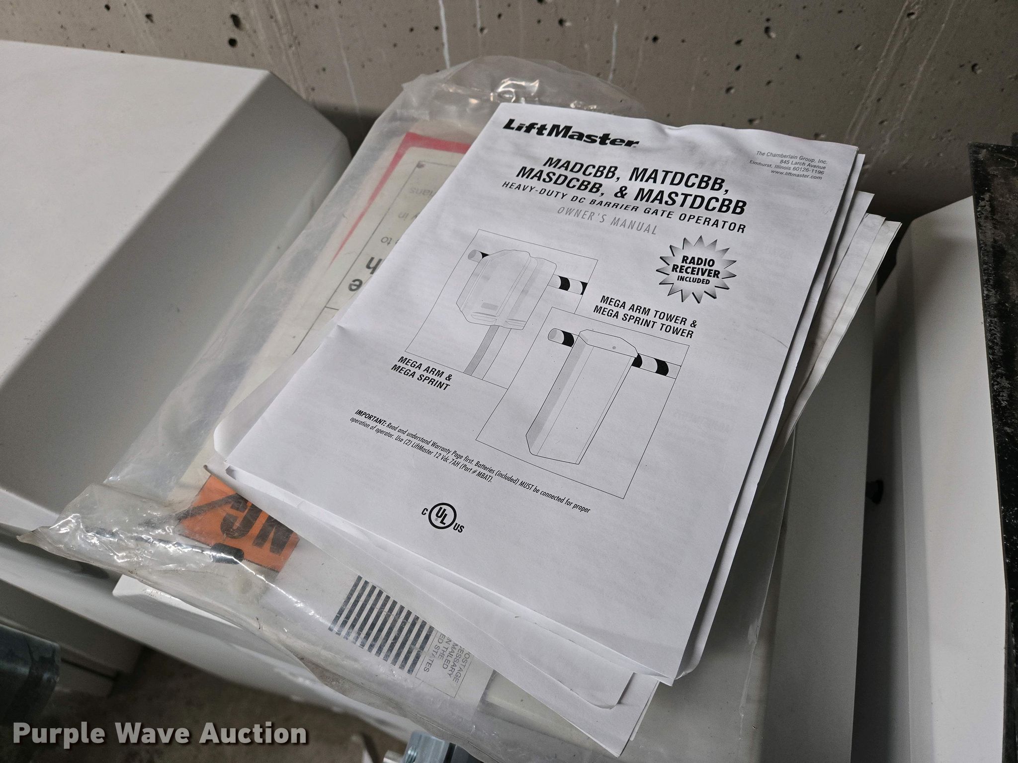 Purple Wave is selling a used Building Materials in Kansas. This item is a (5) Liftmaster MAT-DC-BB3 barrier gates with the following: HP: 1/2, Volts: 120, (4) arms, (2) additional motors, Additional parts