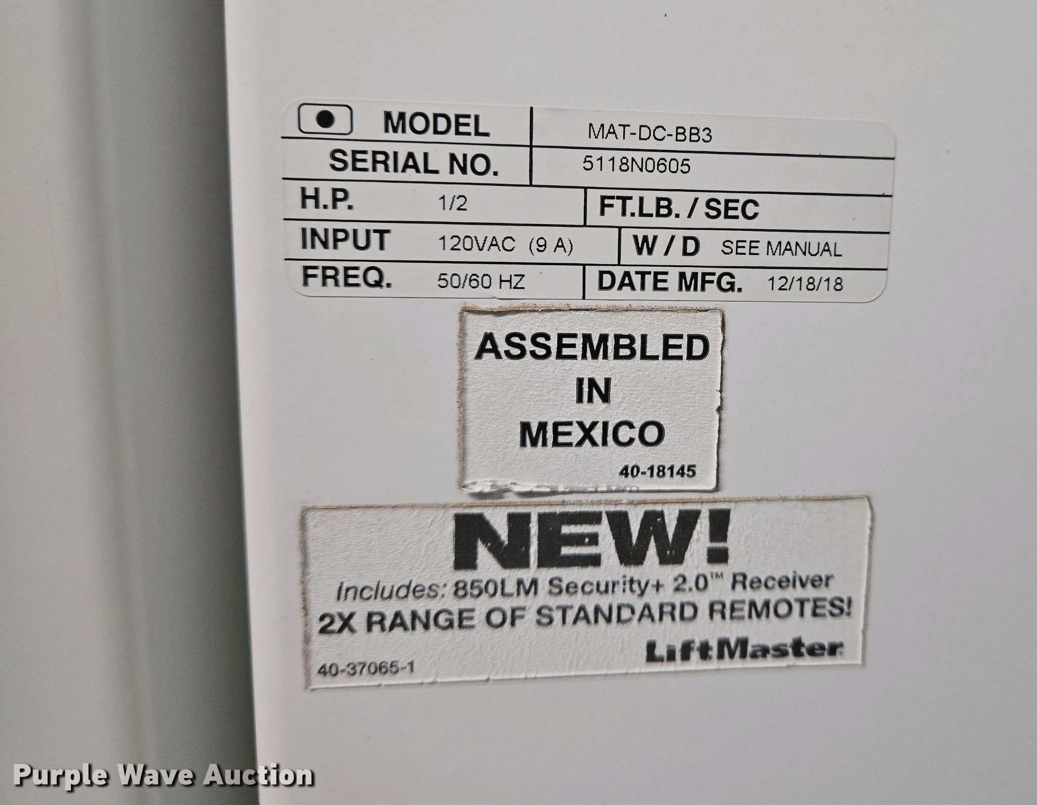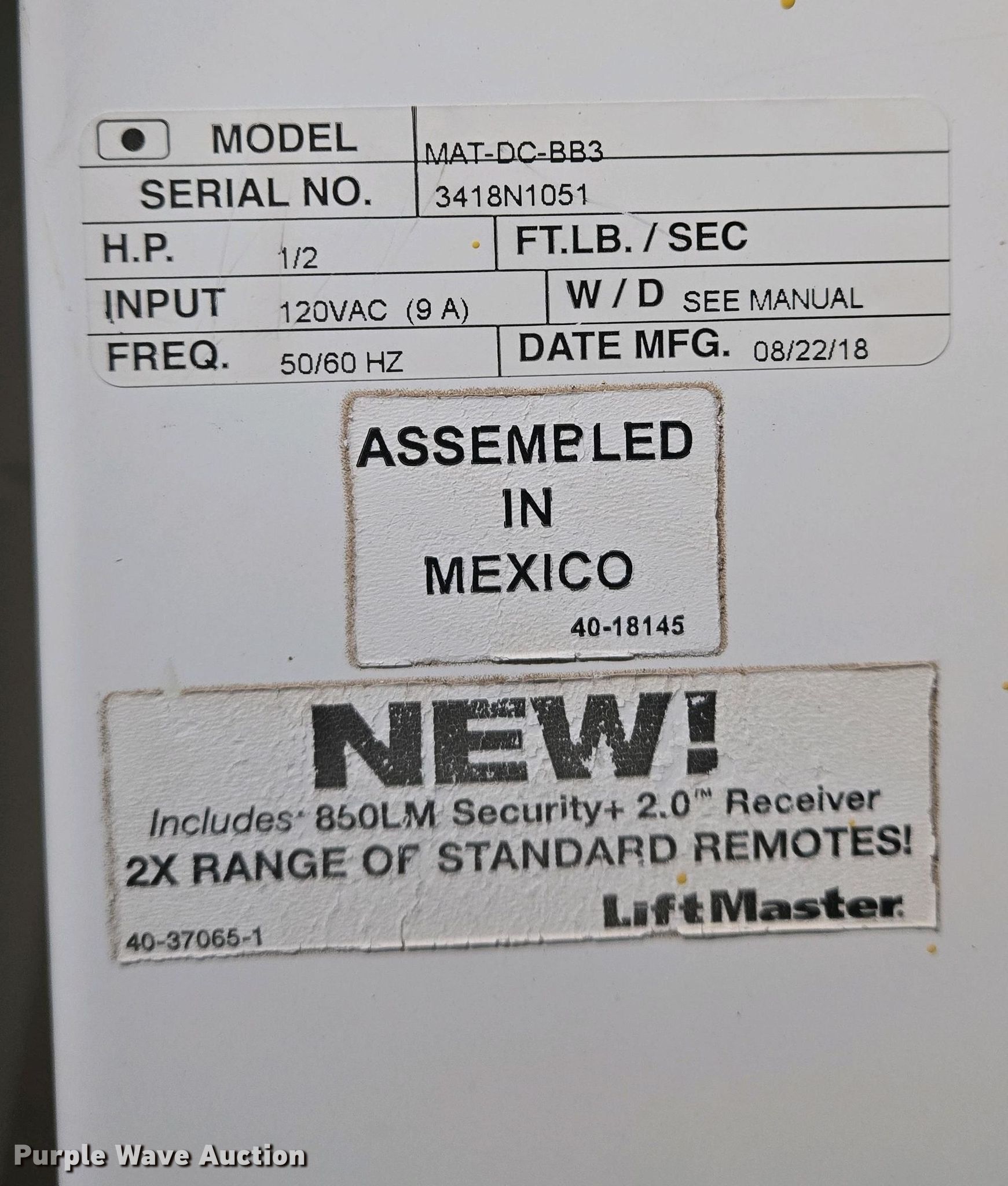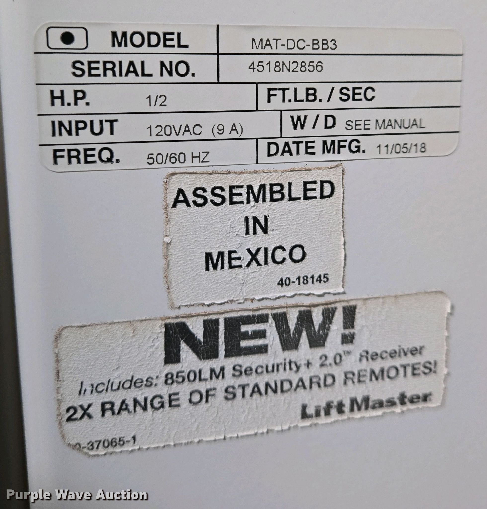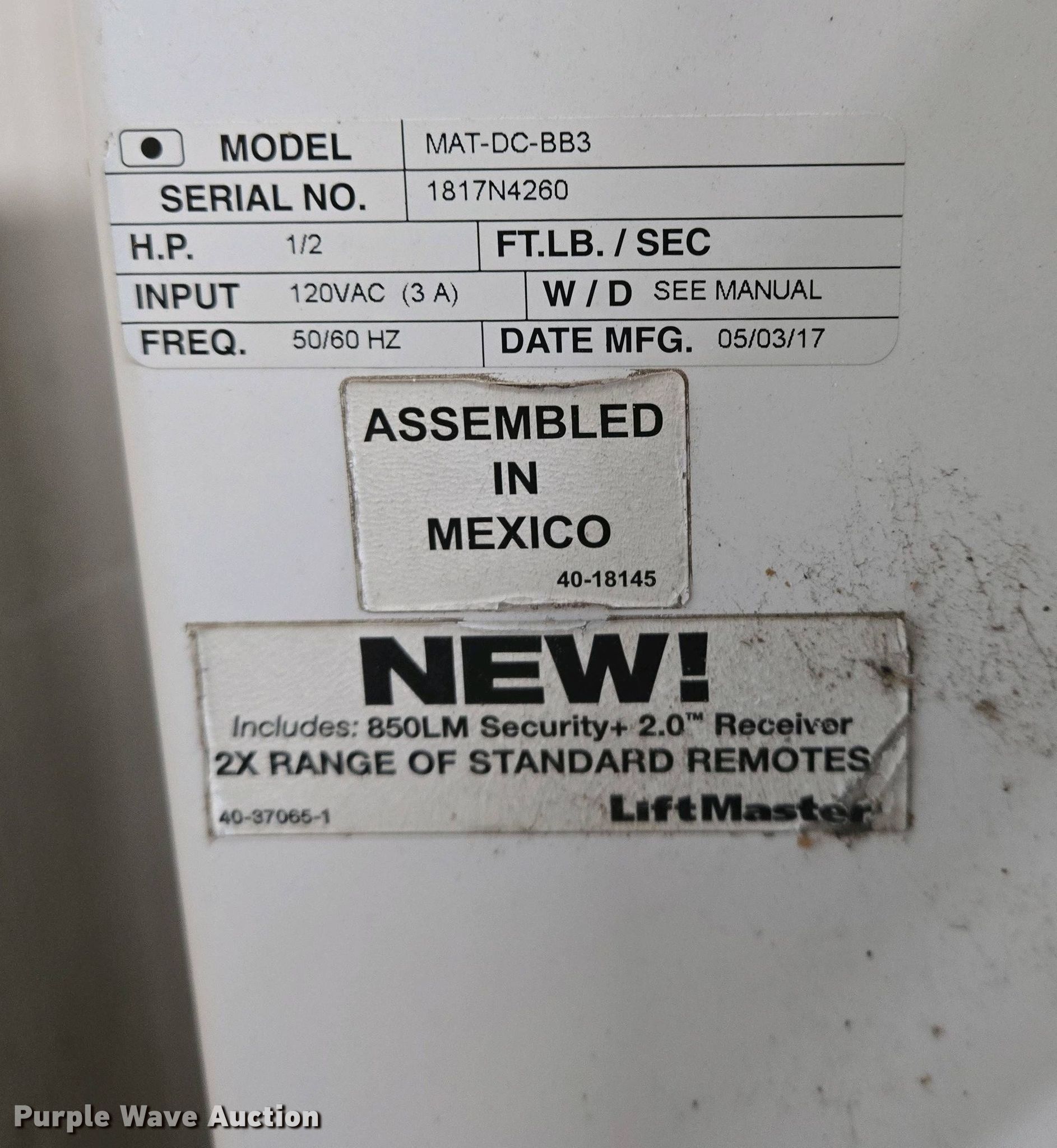 (5) Liftmaster MAT-DC-BB3 barrier gates has sold in Wichita, Kansas for $357.50. Item EO0760 sold on May 20th, 2025.