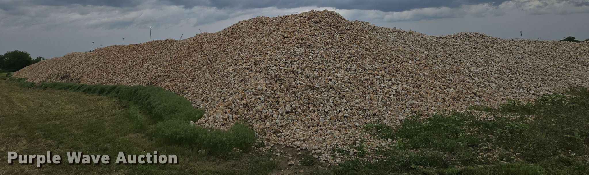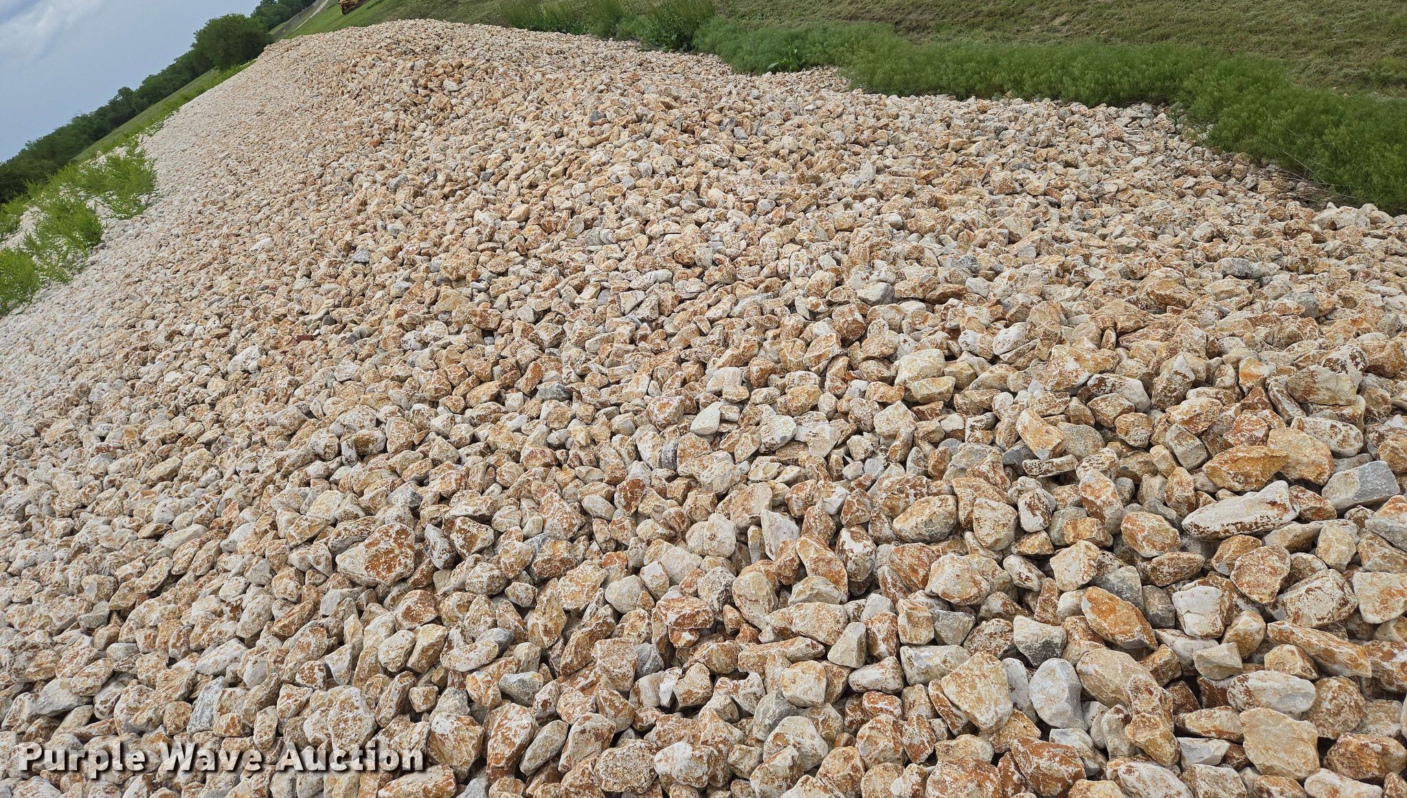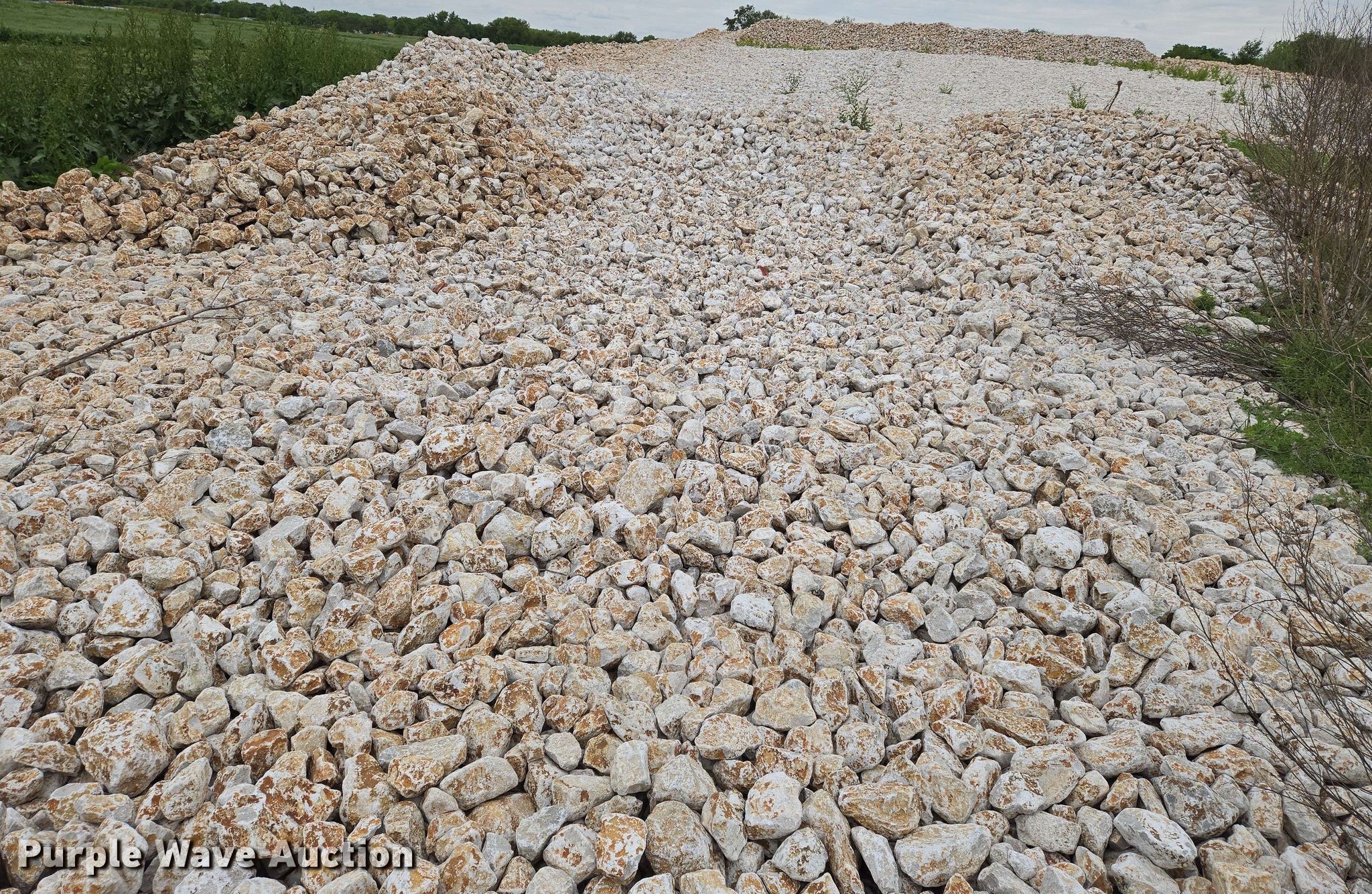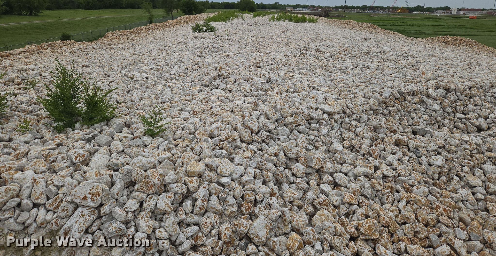 Purple Wave is selling a used Building Materials in Kansas. This item is a Ditch liner stone with the following: Approx. 20,032 tons, Approx. 14,132 cu.yd., Weight: Approx. 2,835 lbs/cu.yd, Multiple sizes