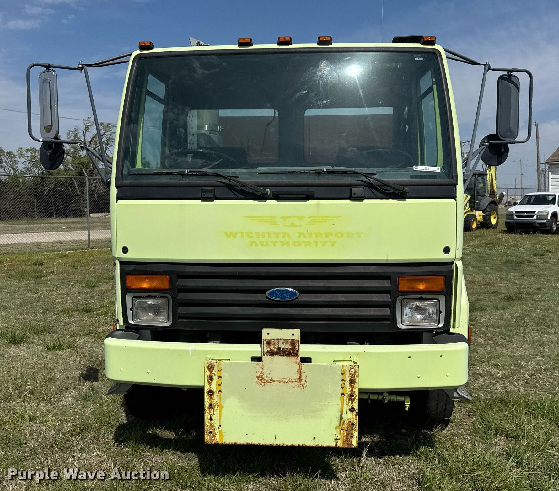 1995 Ford CF7000 dump flatbed truck. Miles: 31,601 on odometer, Hours: 4,792 on meter, VIN: 1FDXH70C8SVA14286, Unit #: WAA286. Engine Cummins FD-1060, Displacement: 5.9L, Cylinders: 6, Fuel type: Diesel, HP: 160. Transmission Automatic. Chassis Axles: Single, Suspension: Spring, Brakes: Air, PTO, GVWR: 32,000 lbs. Interior Heat. Features Dump flatbed 12' 1" L x 101" W, Ram: Single. Tires Size: 11R22.5. Notes Dead battery. Kansas title. City of Wichita Airport Authority Yard. 7710 West Southwest Boulevard. Wichita, KS 67215