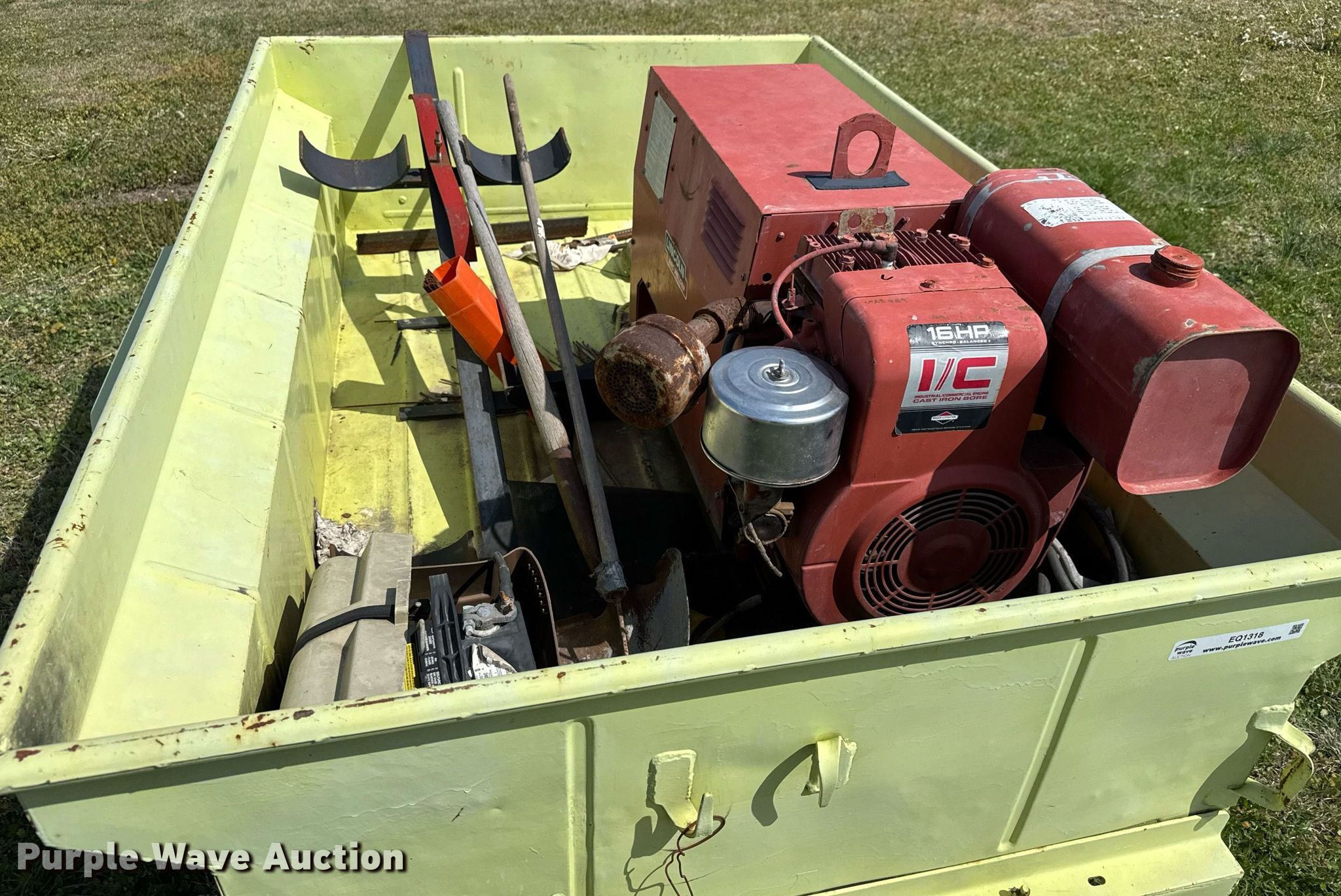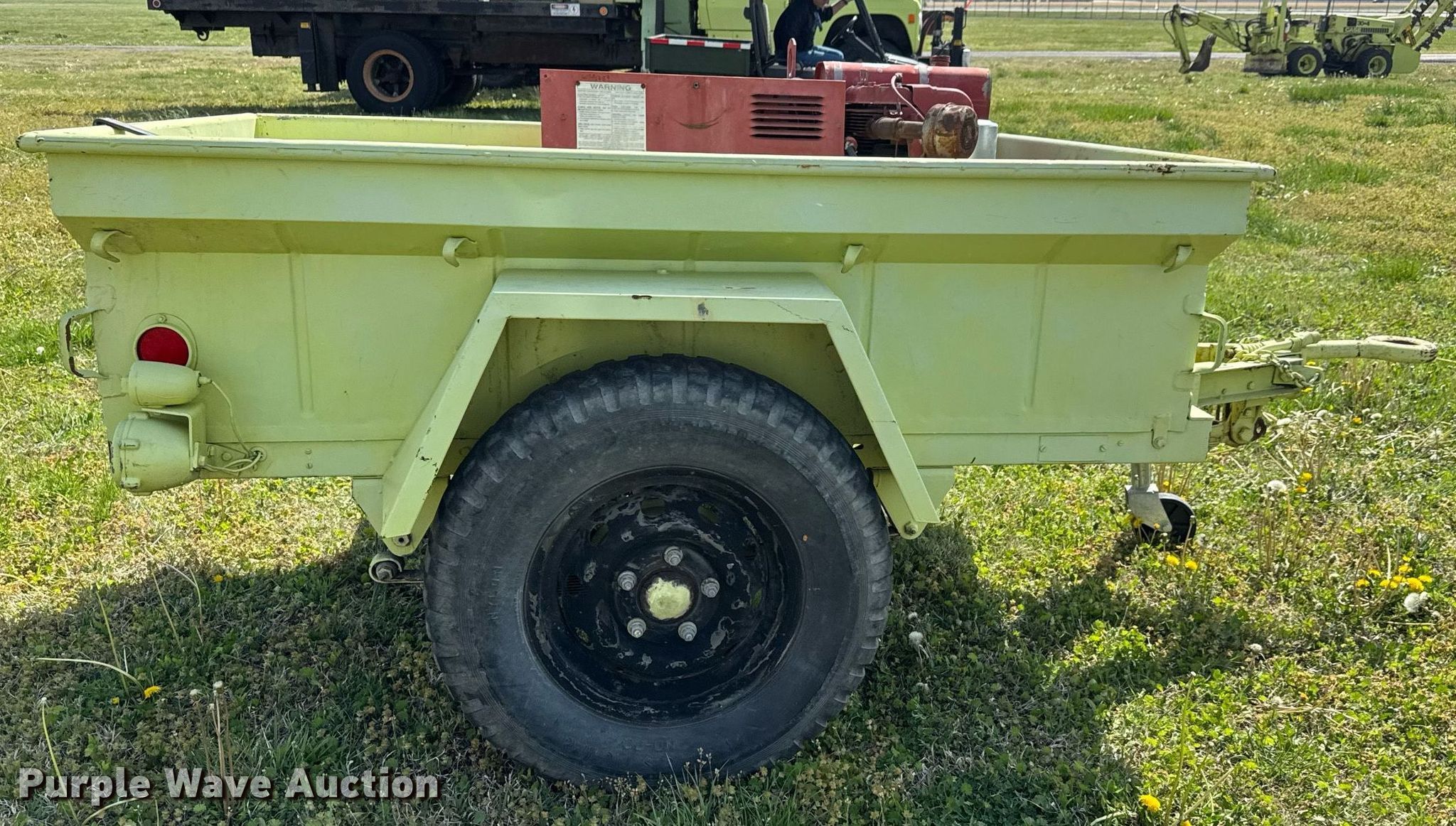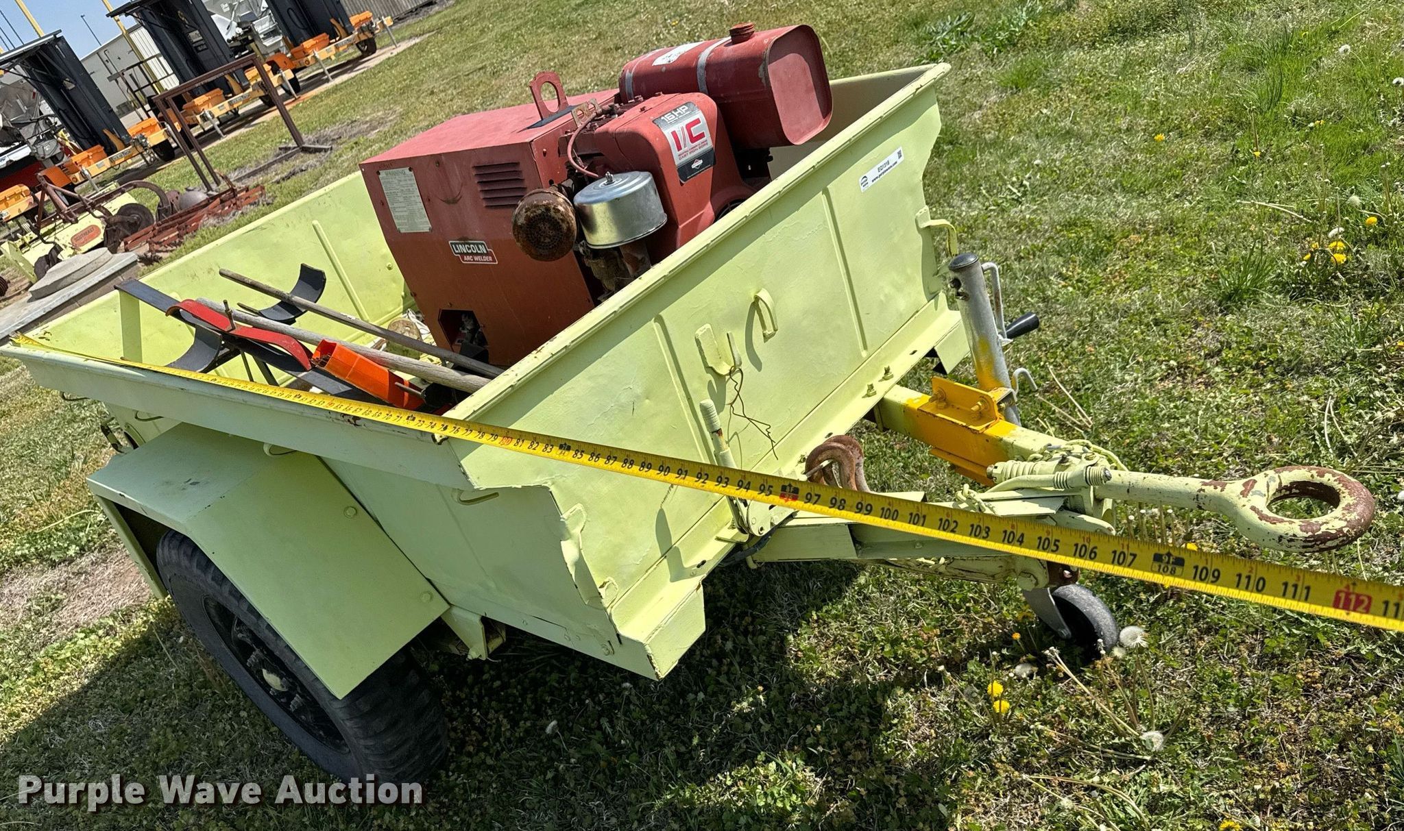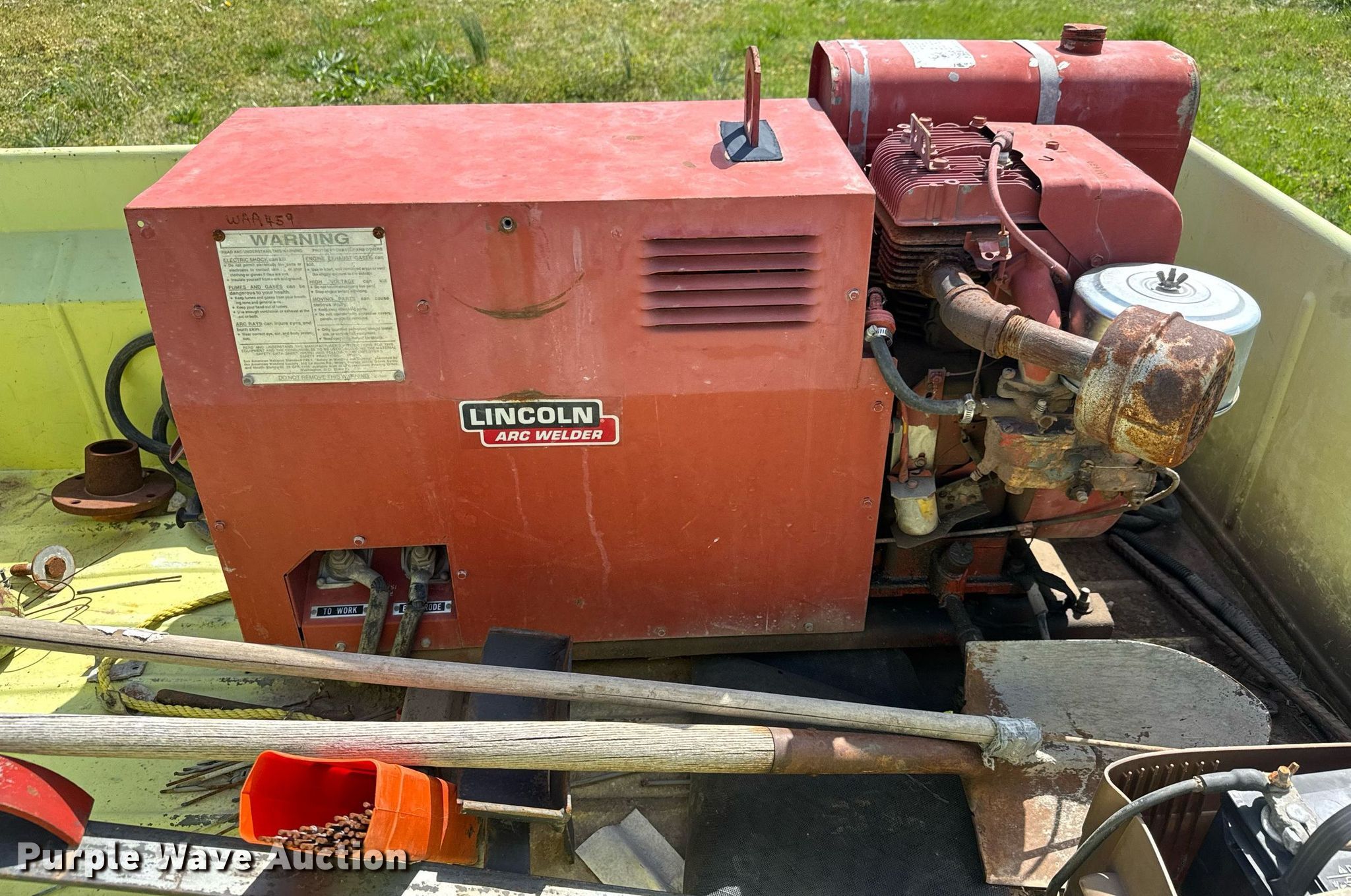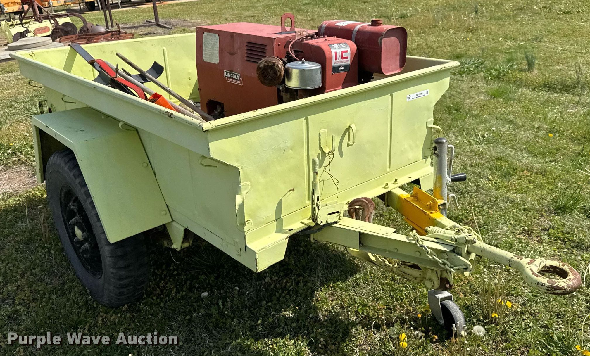 Lincoln Electric Weldanpower welder/generator. Serial: A1102780R. Engine Briggs & Stratton, Cylinders: 1, Fuel type: Gas. Features Welder Capabilities: DC, AC, Trailer mounted, Generator Phase: Single, 115V outlets: 4. Trailer 1967 Cemsco M416, Serial: 1930, Dimensions Overall: 9' L x 62" W, Deck: 6' 2" L x 51" W, Side height: 18", Hitch: Pintle, Suspension: Spring, Axles: Single, Tire size: 7.00-16. Notes Dead battery, Unknown operating condition of engine. Transfer of ownership documentation will be a bill of sale. City of Wichita Airport Authority Yard. 7710 West Southwest Boulevard. Wichita, KS 67215