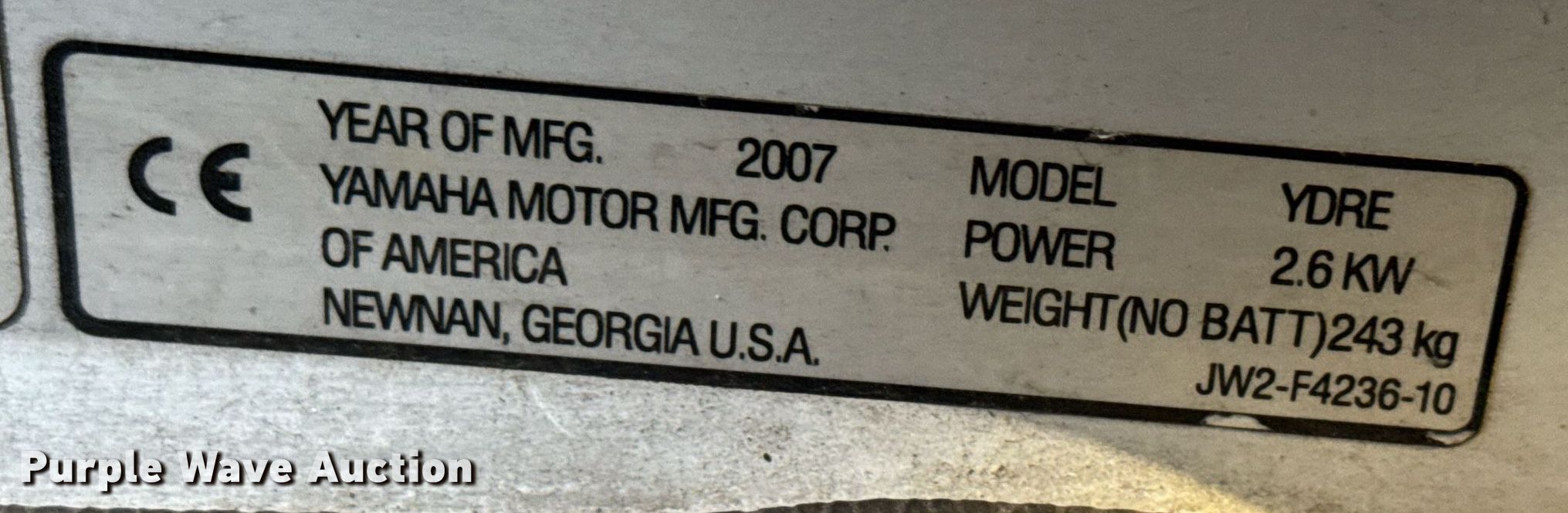 Purple Wave is selling a used Golf Cart in Kansas. This item is a 2007 Yamaha YDRE golf cart with the following: Serial: JW2-111382, Unit #: WAA PO 701351B