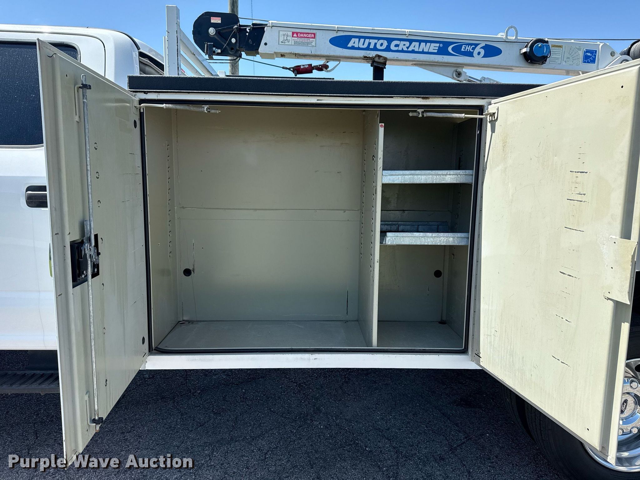 2019 Ford F550 Super Duty Crew Cab utility / service truck. Miles: 54,164 on odometer, VIN: 1FD0W5HTXKEF25367. Engine Ford, Displacement: 6.7L, Cylinders: 8, Fuel type: Diesel. Transmission Automatic. Chassis Four wheel drive, Axles: Single, Suspension: Spring, Brakes: Hydraulic, PTO, GVWR: 19,500 lbs, Wheelbase: 203". Interior AC, Heat, Heated mirrors, Power windows, Power locks, Cruise control, Auxiliary controls, Brake controller. Features Bed Knapheide, 11' 1" L x 94" W, Oil/lube system, Crane Auto Crane EHC6, Maximum boom length: 22' Maximum lift capacity: 6,000 lbs, Hydraulic outriggers, Auxiliary fuel tank. Tires Size: 225/70R19.5. Texas title. Seller is an Oklahoma licensed motor vehicle dealer. Title will be assigned and distributed by the dealer. Please contact the seller for distribution questions. Title distribution may be delayed up to 14 days from verification of funds. The Truck Shop. Okemah, OK 74859