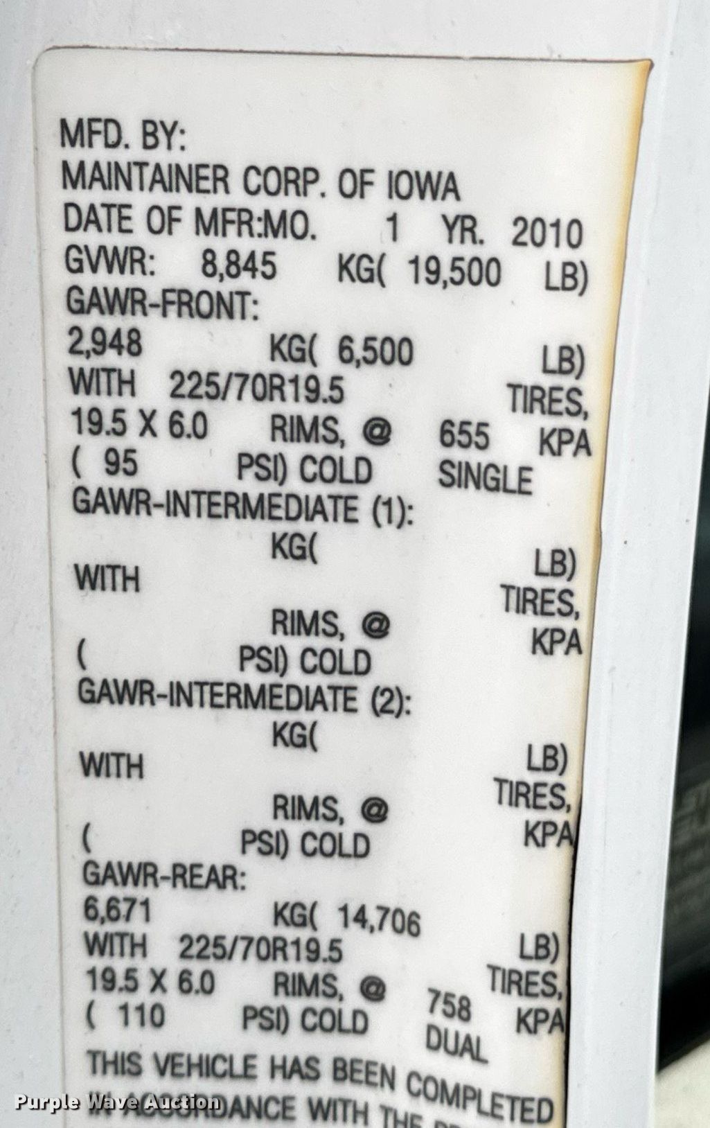 2010 Ford F550 Super Duty utility / service truck. Miles: 182,711 on odometer, PTO hours: 790 on meter, VIN: 1FDAF5GRXAEA66527. Engine Displacement: 6.4L, Cylinders: 8, Fuel type: Diesel. Transmission Automatic. Chassis Axles: Single, Suspension: Spring, Brakes: Hydraulic, PTO, GVWR: 19,500 lbs, Wheelbase: 165". Interior AC, Heat, Cruise control, Auxiliary controls. Features Bed 12' 6" L x 96" W, Air compressor Quincy QTS-5, Crane Maintainer 1115ST, Maximum boom length: 16' Maximum lift capacity: 3,500 lbs.. Tires Size: 225/70R19.5. Oklahoma title. Seller is an Oklahoma licensed motor vehicle dealer. Title will be assigned and distributed by the dealer. Please contact the seller for distribution questions. Collinsville, OK 74021