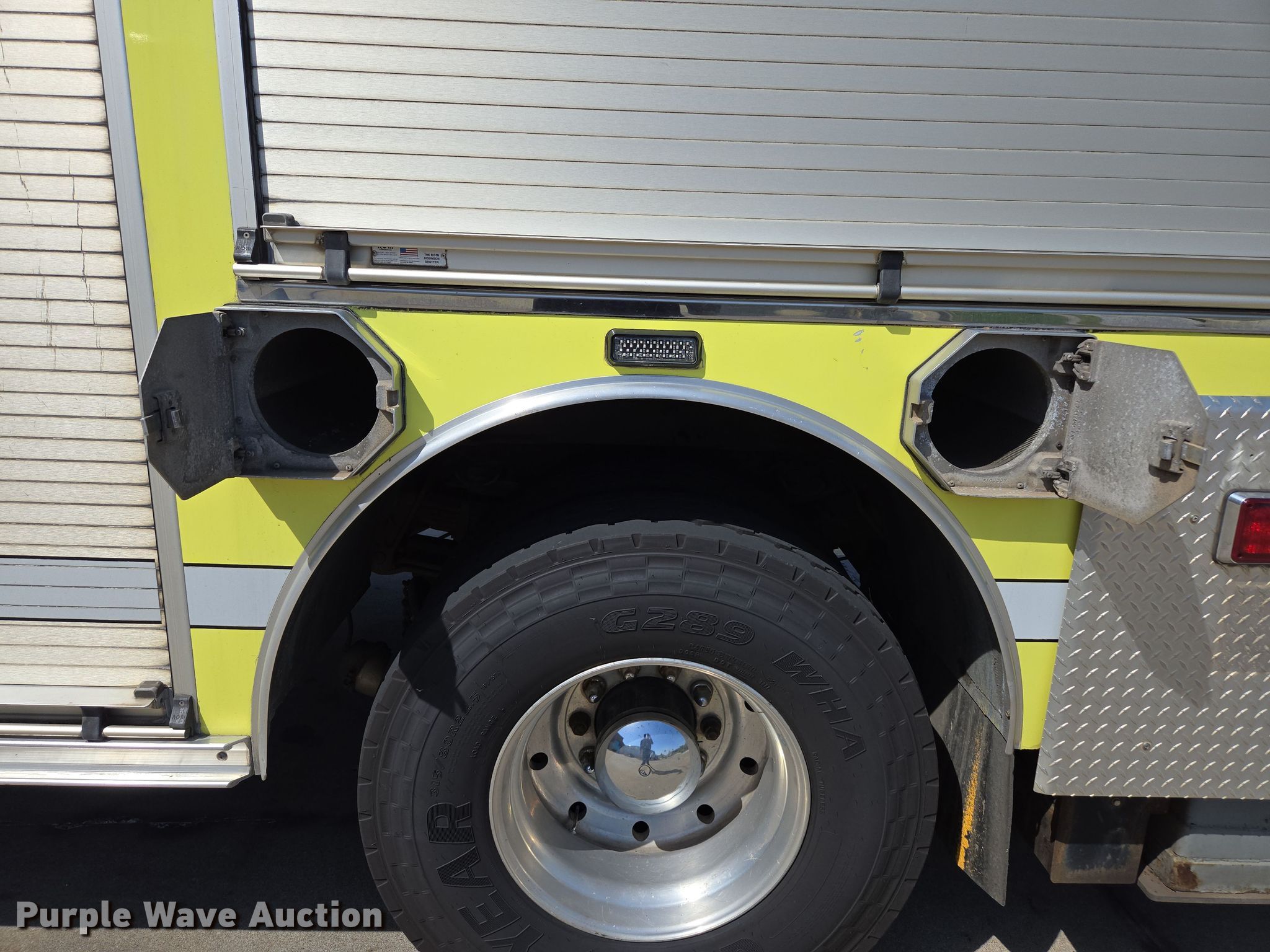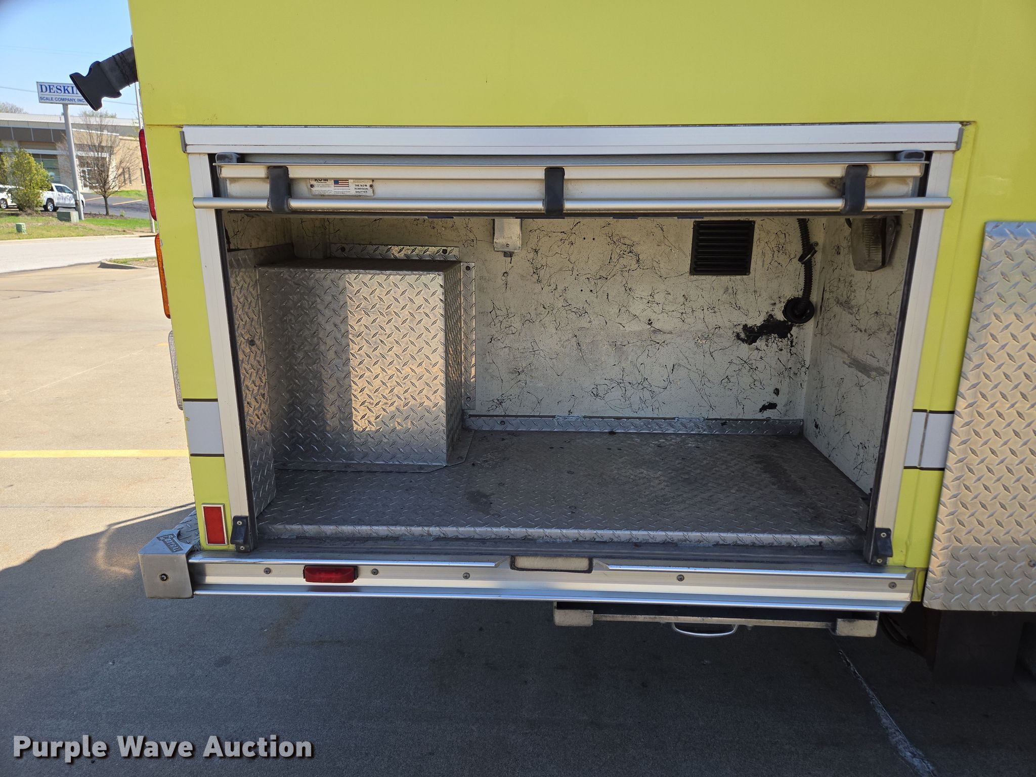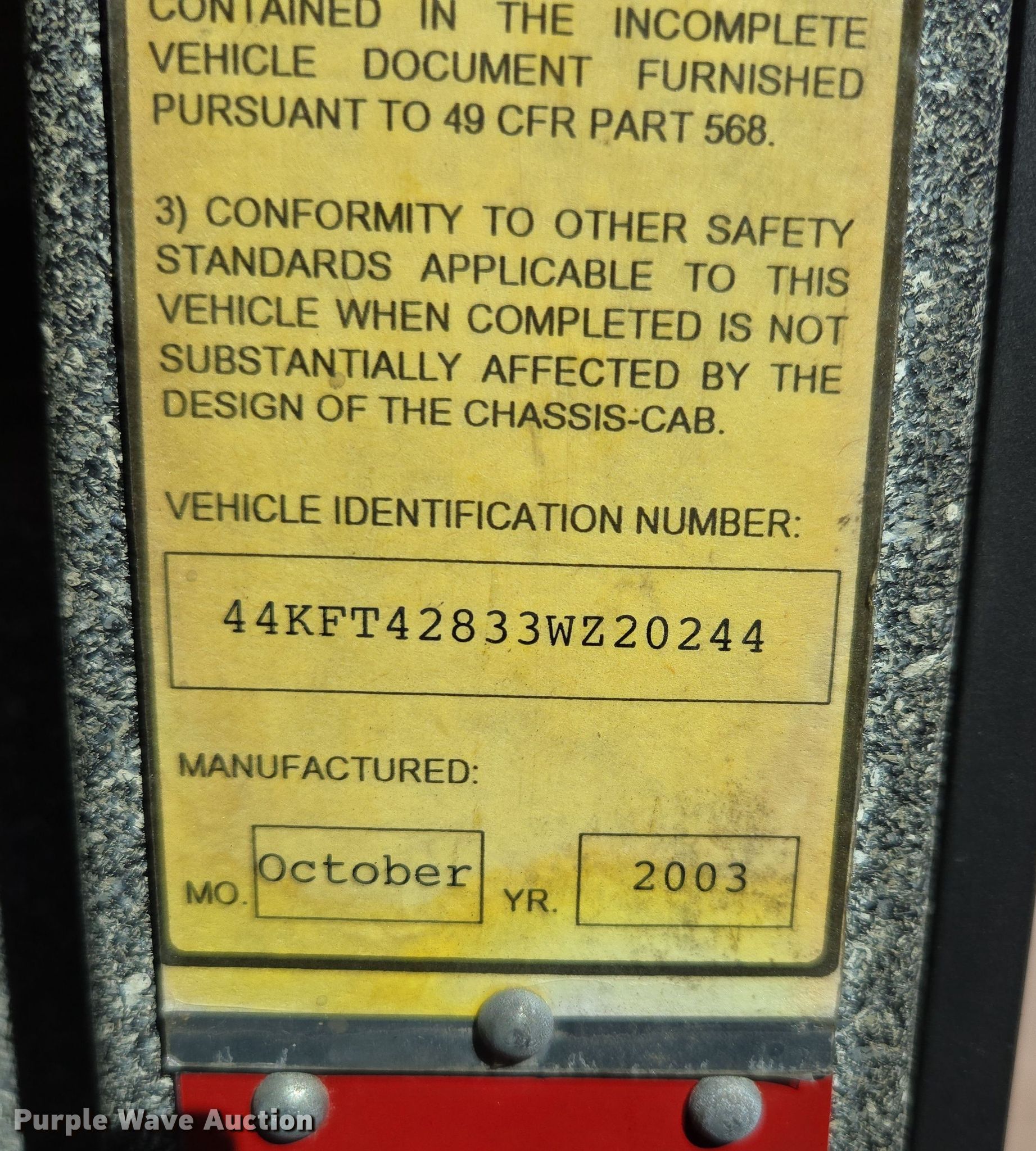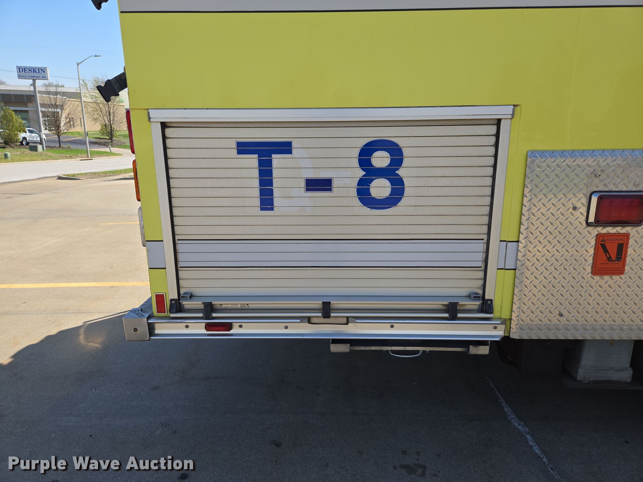 2003 HME Central States Fire Apparatus ladder fire truck. Miles: 132,194 on odometer, Hours: 11,130 on meter, VIN: 44KFT42833WZ20244, Unit #: 8. Engine Detroit Diesel 60 Series, Serial: 06R0743406, Displacement: 14.0L, Cylinders: 6, Fuel type: Diesel, HP: 500. Transmission Automatic. Chassis Axles: Single, Suspension: Spring, Brakes: Air, GVWR: 52,500 lbs. Interior AC, Heat, Auxiliary controls. Features Fire truck body Aerial RK Aerials LLC 75T143, Hours: 1,377 on meter, Maximum height: 75', Maximum lift capacity: 500 lbs, Stabilizers Quantity: 2, Elevated deck gun, Tank, Pump 2,000 gpm, Ground ladder, PA/ siren controls, Foam system Foam cell capacity: 30 gallons, 3000 Watt Heavy Duty inverter. Tires Front: 425/65R22.5, Rear: 315/80R22.5. Notes Possible ladder hydraulic valve issues, Contents included, Rust damage. Missouri title. Seller is a Missouri licensed motor vehicle dealer. Title will be assigned and distributed by the dealer. Please contact the seller for distribution questions. Precision Fire Apparatus. Springfield, MO 65807