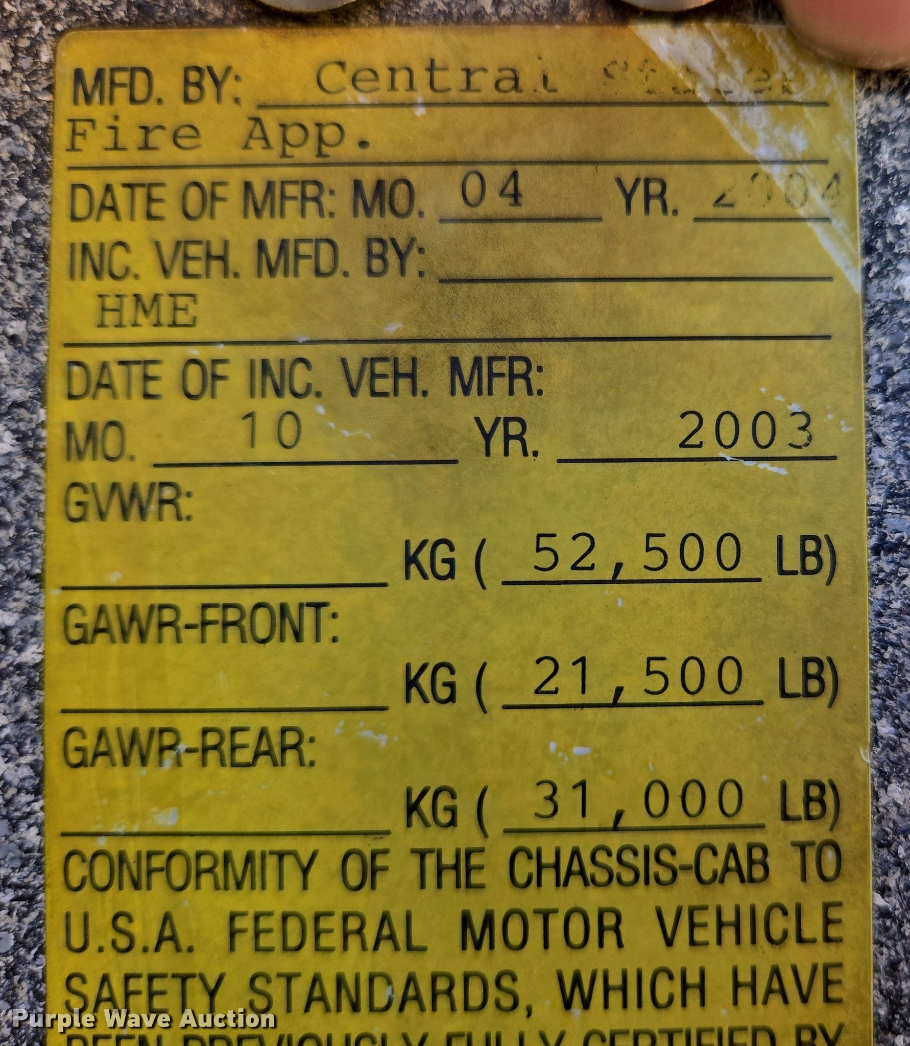 2003 HME Central States Fire Apparatus ladder fire truck | SOLD! May 21 Vehicles and Equipment Auction