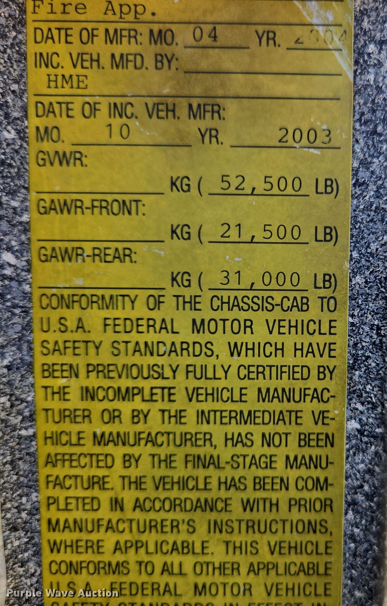This 2003 HME Central States Fire Apparatus ladder fire truck will sell to the highest bidder regardless of price.