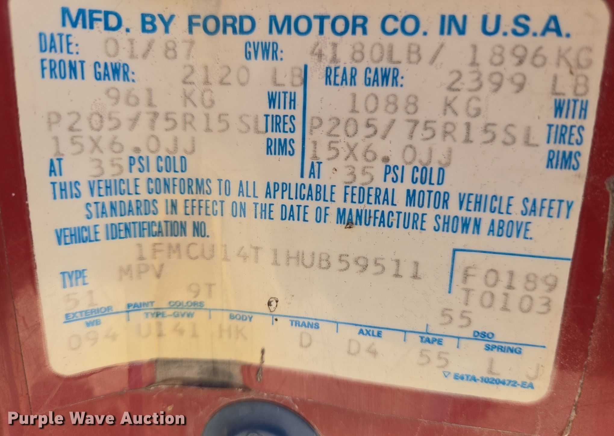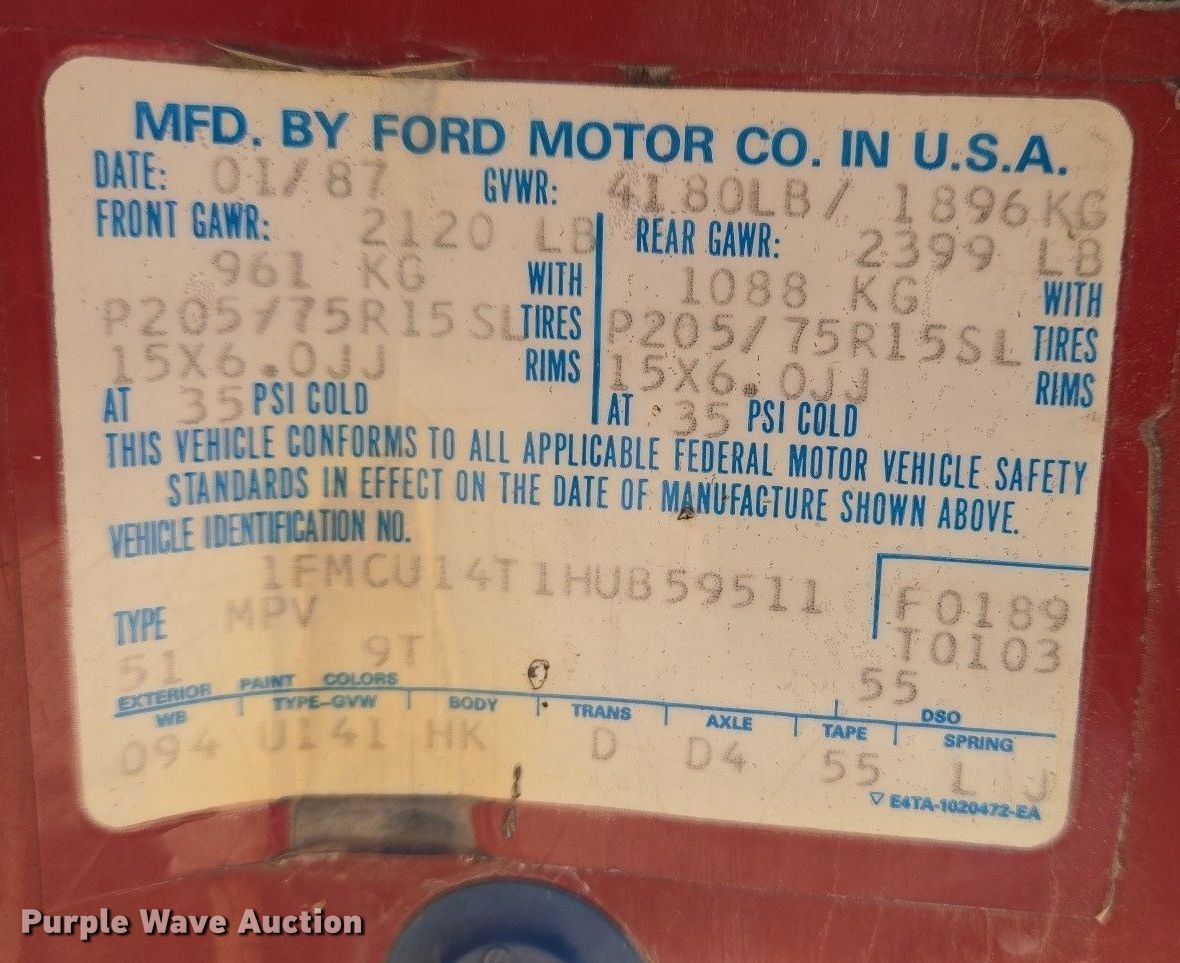Purple Wave is selling a used Passenger Vehicle in Missouri. This item is a 1987 Ford Bronco II SUV with the following: Miles: 6,417 on odometer, VIN: 1FMCU14T1HUB59511
